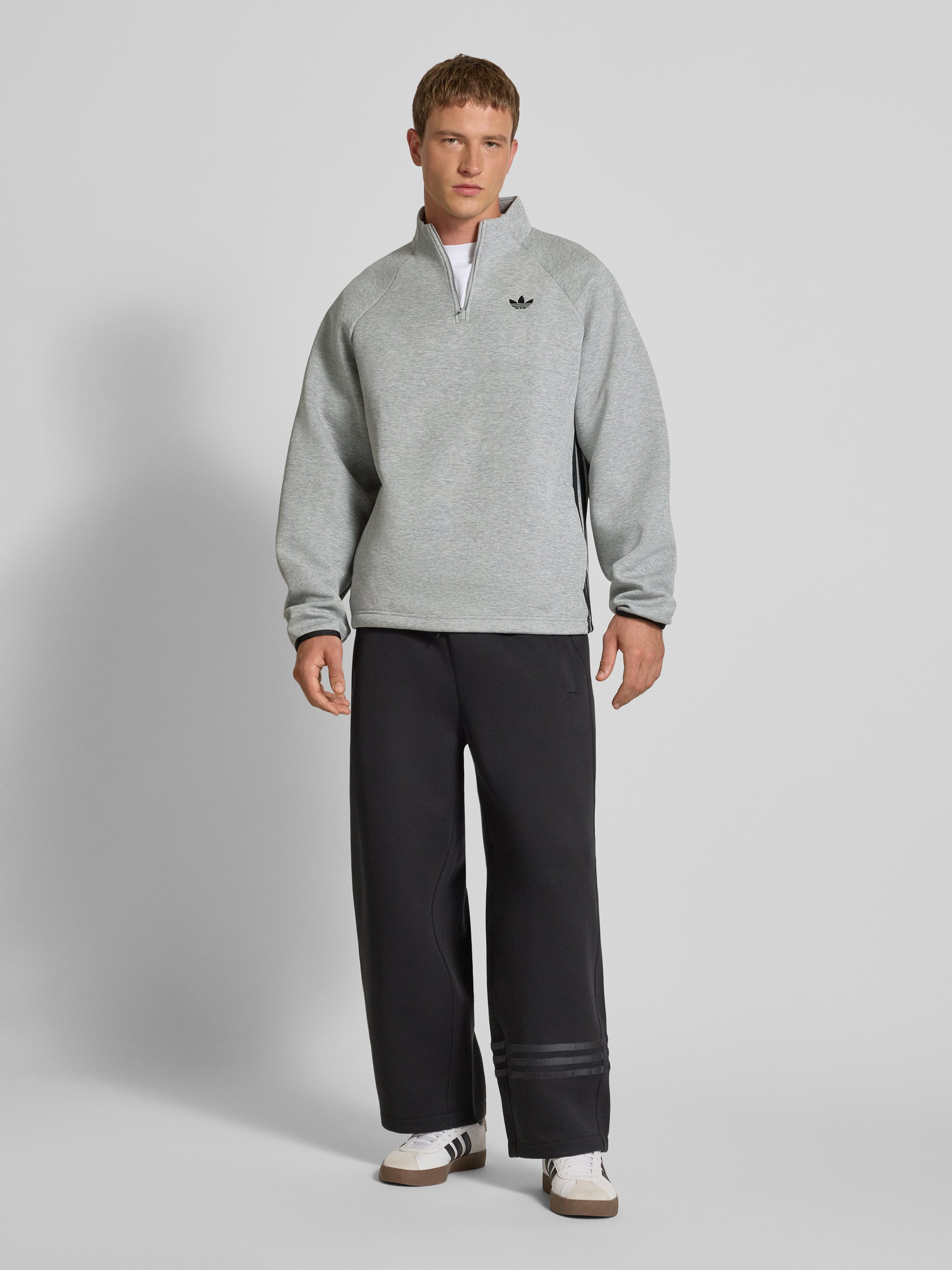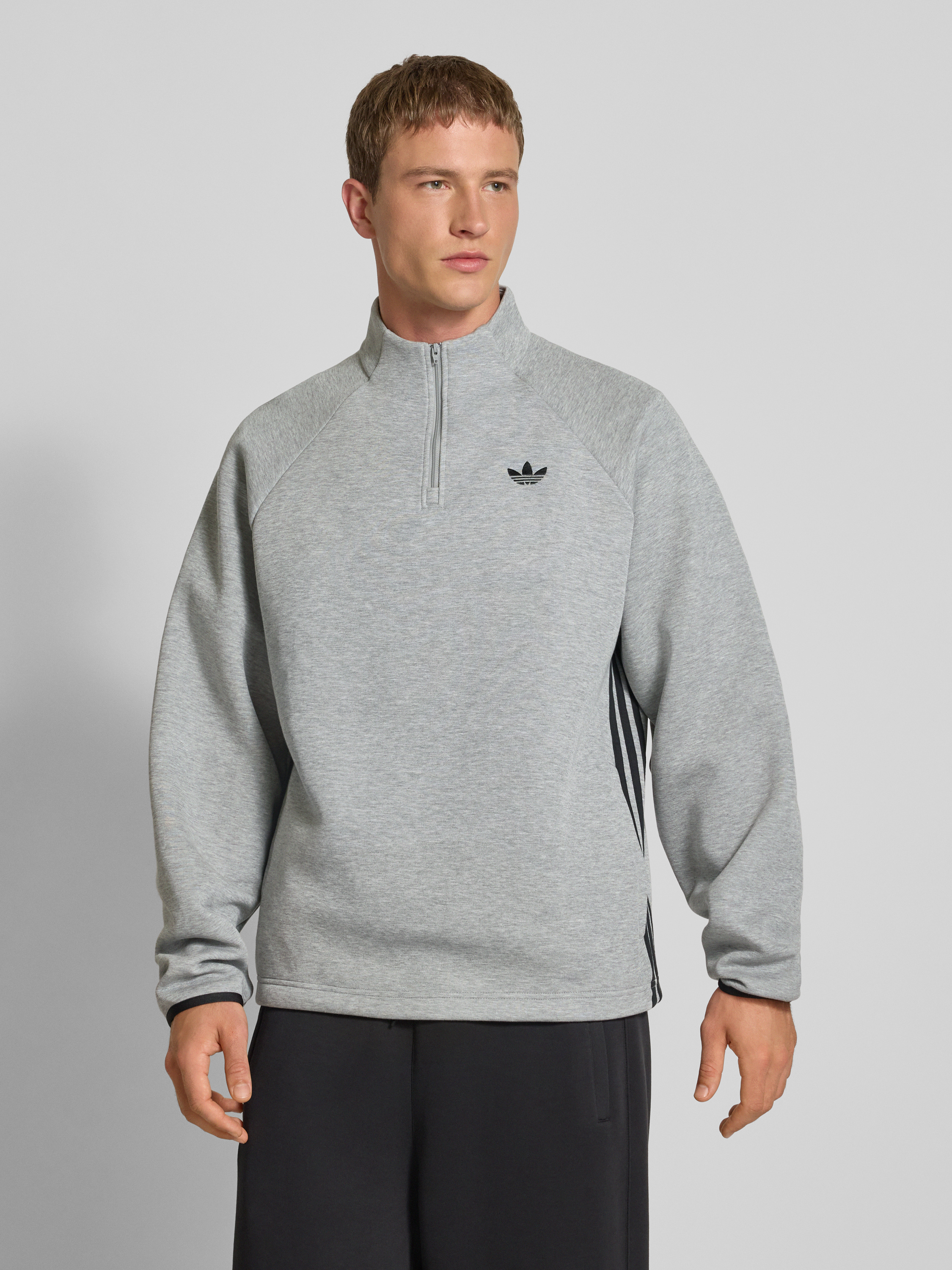 adidas OriginalsSweatshirt mit Label-Stitching und Stehkragen in hellgrau melange