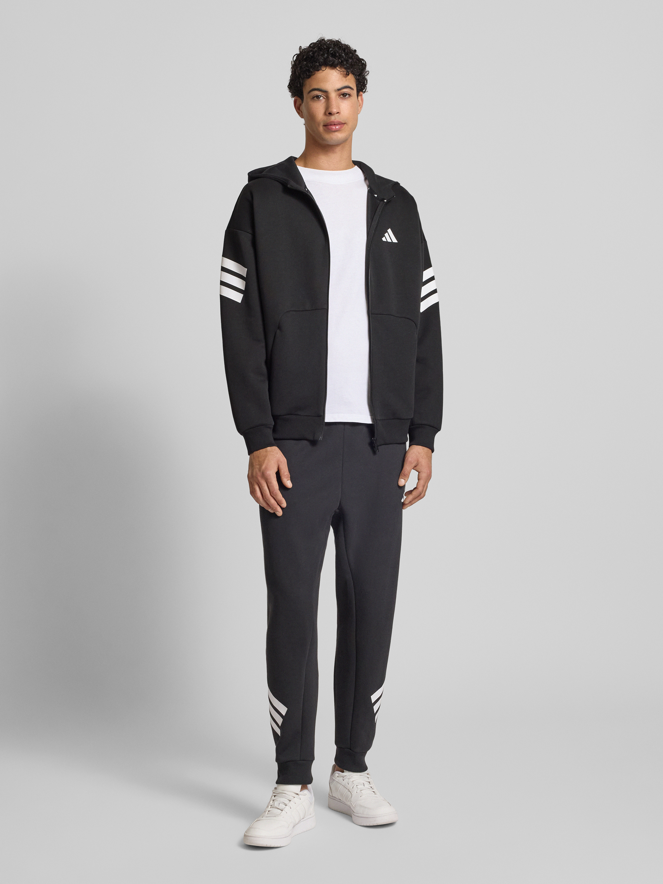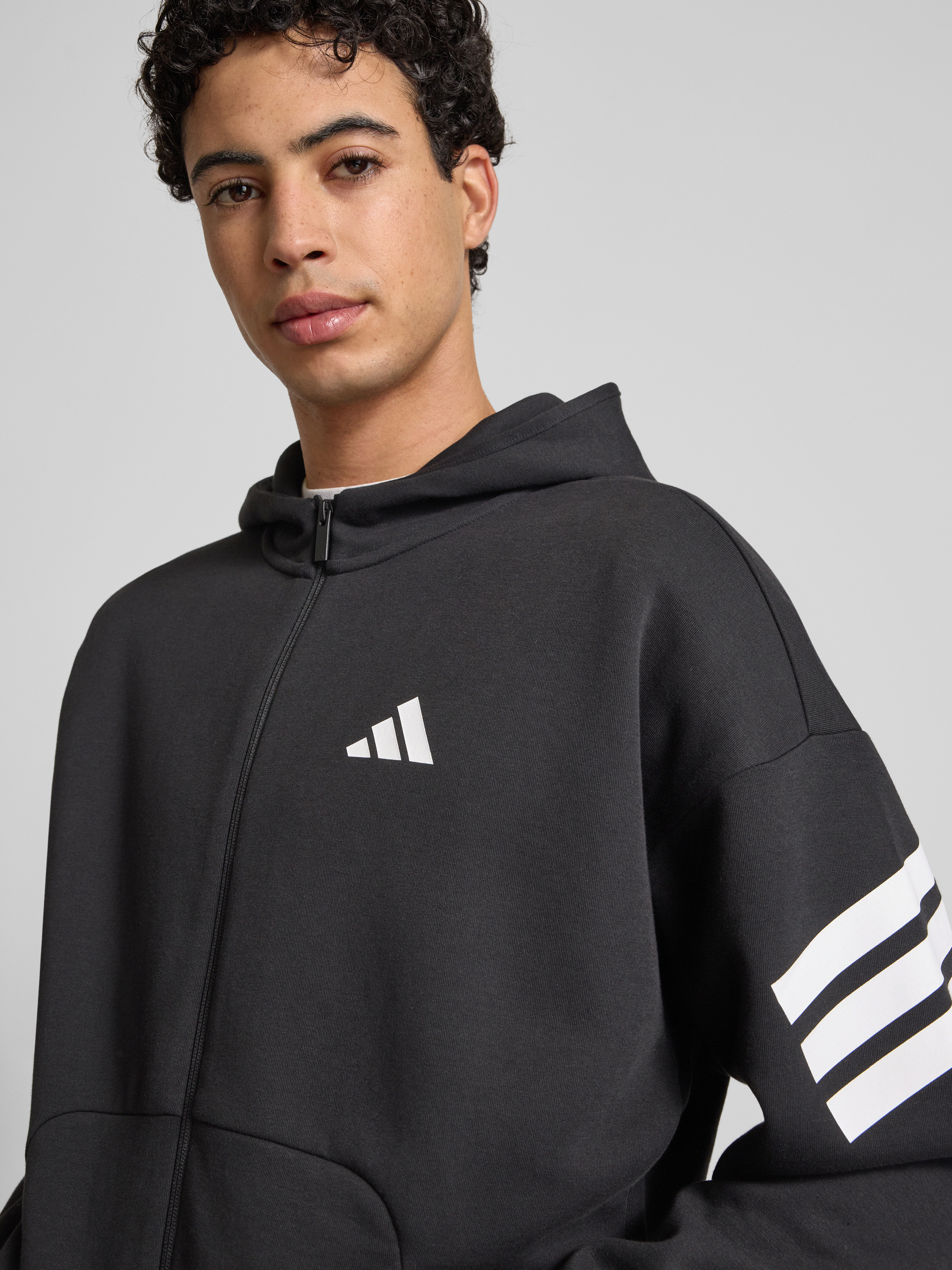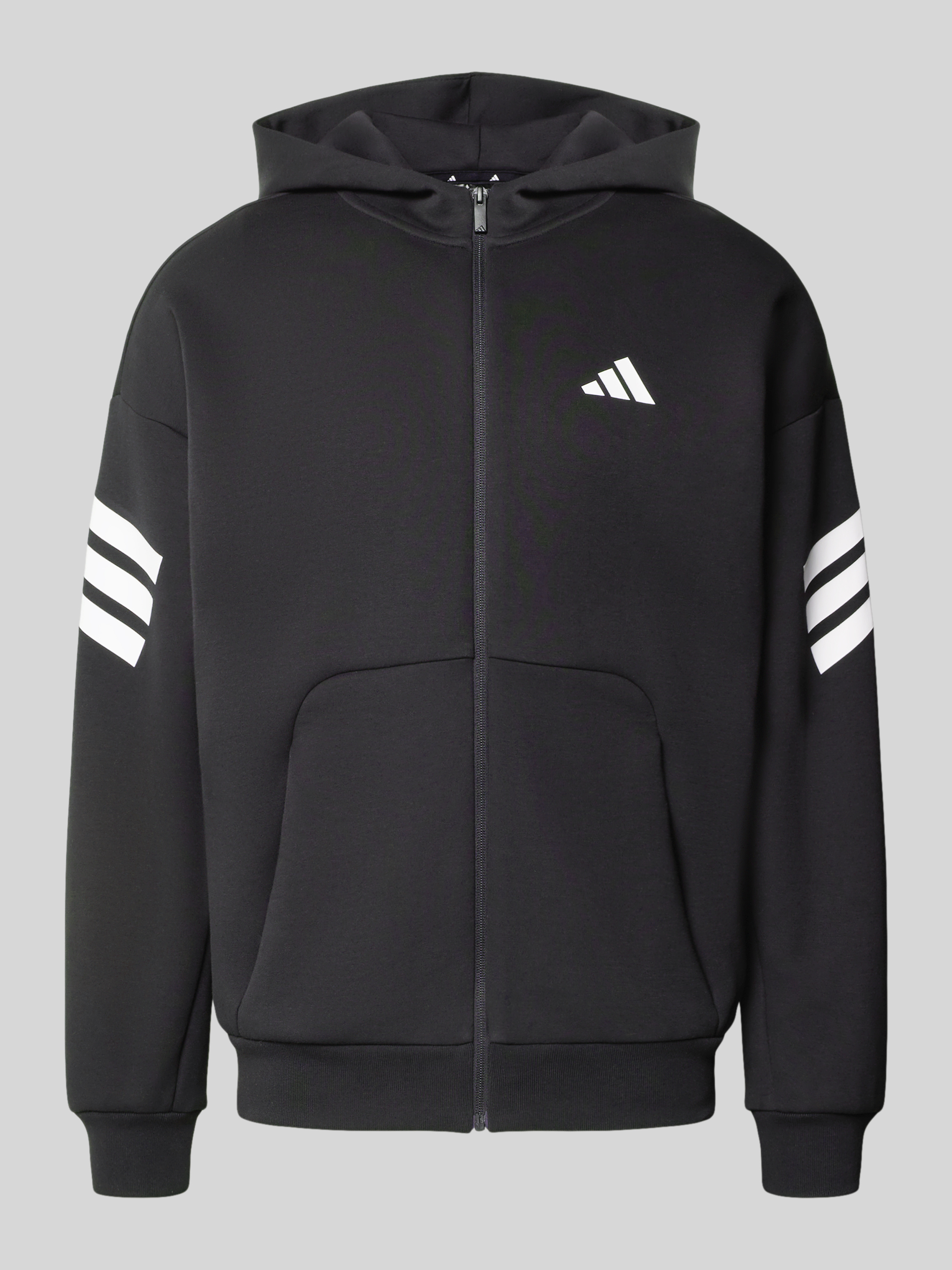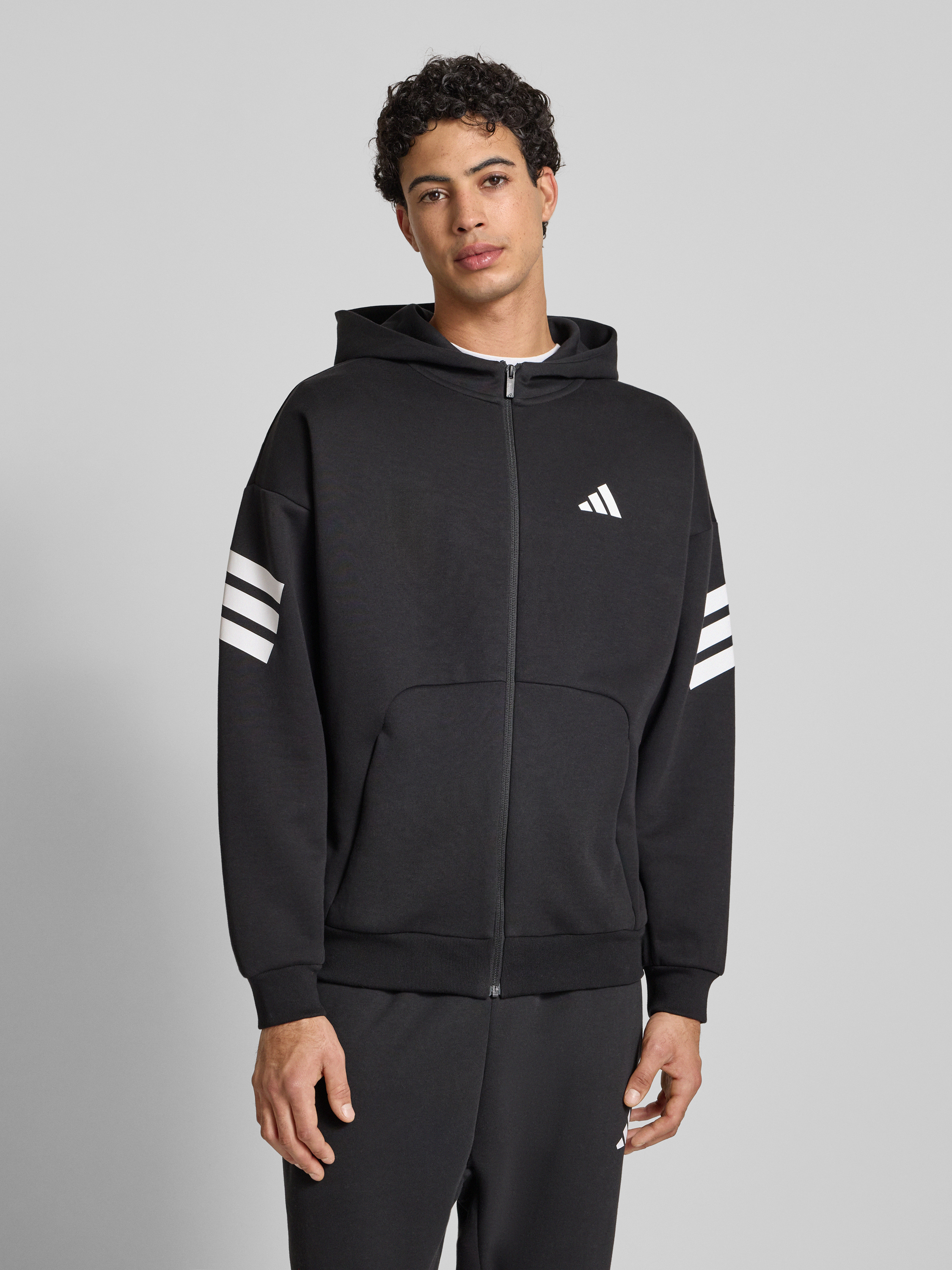 Die Herren Sweatjacke von adidas Sportswear zeigt sich im Regular Fit und punktet mit einem bequemen Material-Mix, der einen Baumwoll-Anteil enthält. Durch die praktische Känguru-Tasche und die Kapuze eignet sich das Modell für entspannte Stunden und sportliche Aktivitäten gleichermaßen. Auch im Alltag sorgt die Sweatjacke durch ihren lockeren Schnitt für angenehmen Tragekomfort.