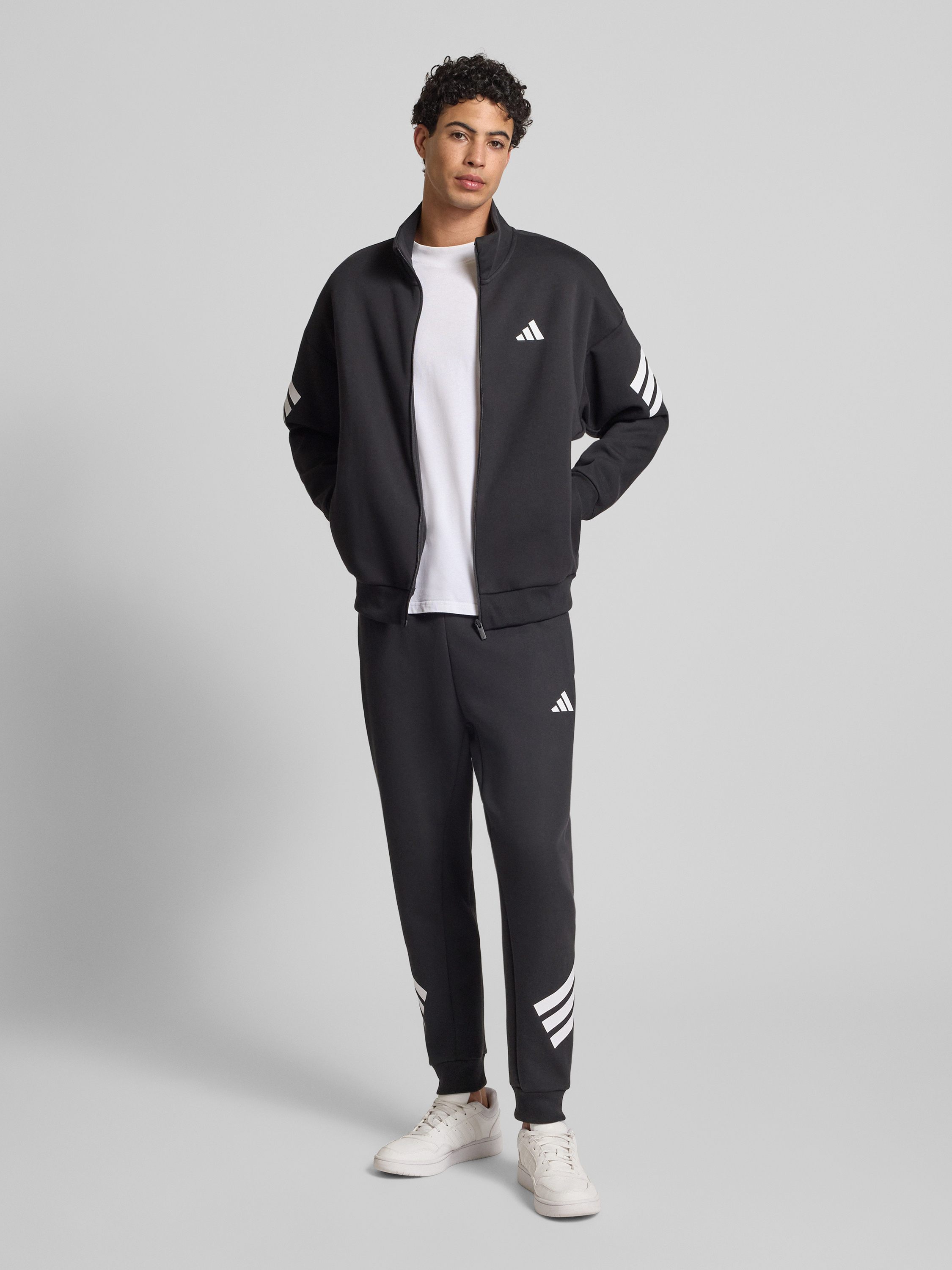 Die Herren Sweatjacke von adidas Sportswear kombiniert einen Material-Mix mit Baumwoll-Anteil und Regular-Fit, wodurch sie angenehm auf der Haut liegt und unkompliziert sitzt. Ein Stehkragen verleiht dem Look sportliche Klarheit, während der Logo-Print einen dezenten Akzent setzt. Dank ihrer durchdachten Schnittführung eignet sich die Sweatjacke für vielfältige Gelegenheiten im Alltag.