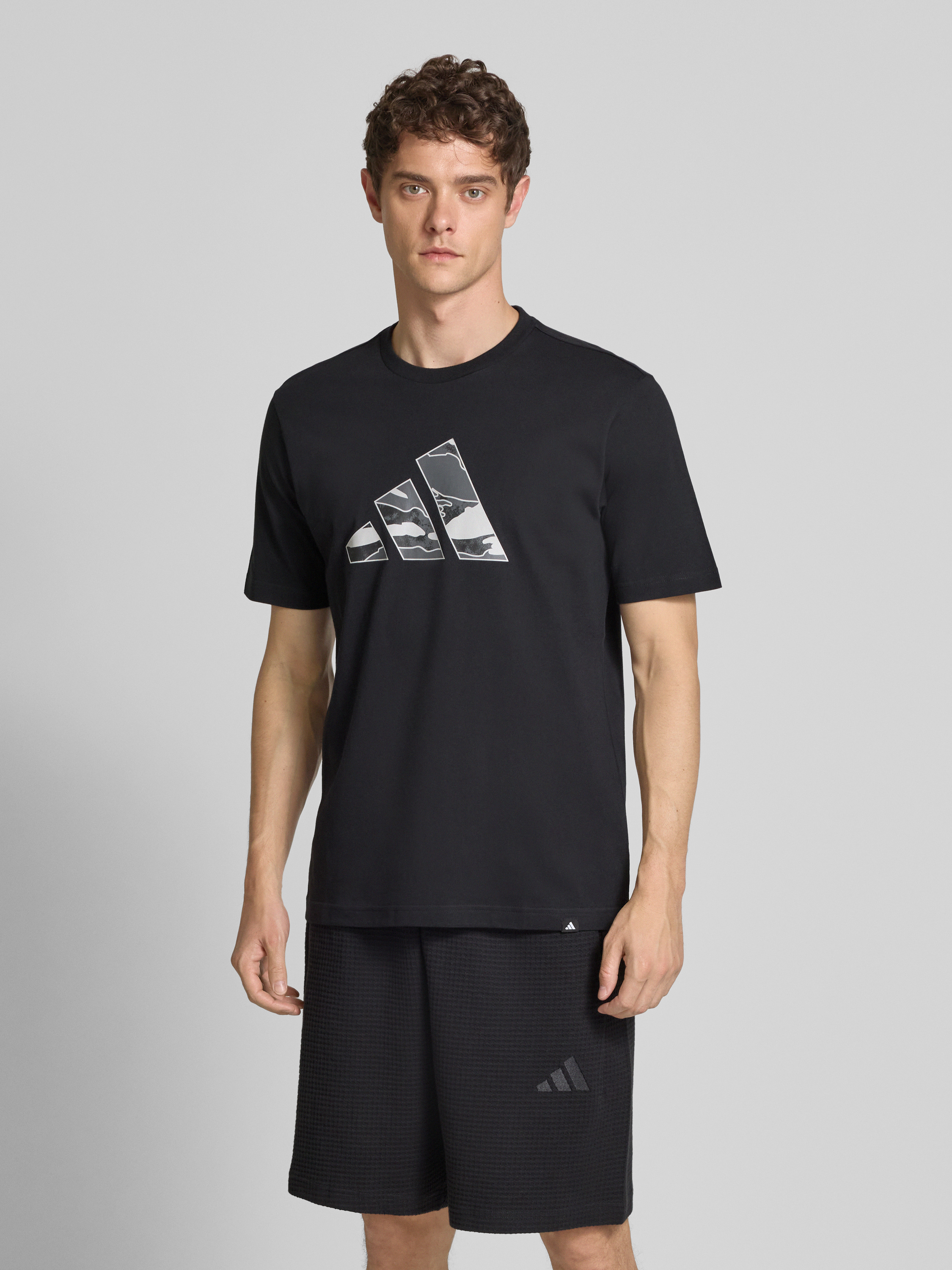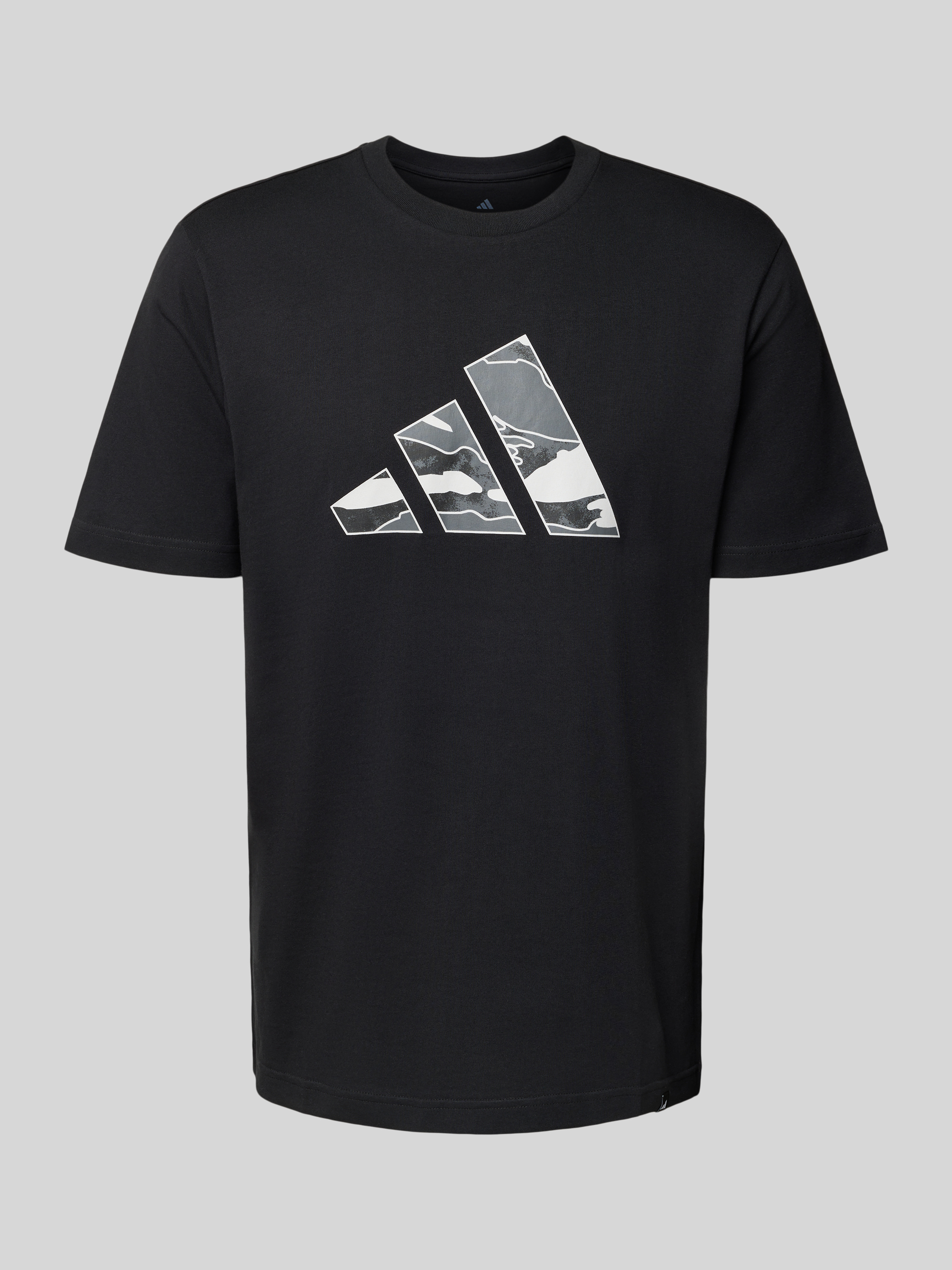 adidas SportswearT-Shirt mit Label-Print und Rundhalsausschnitt in black