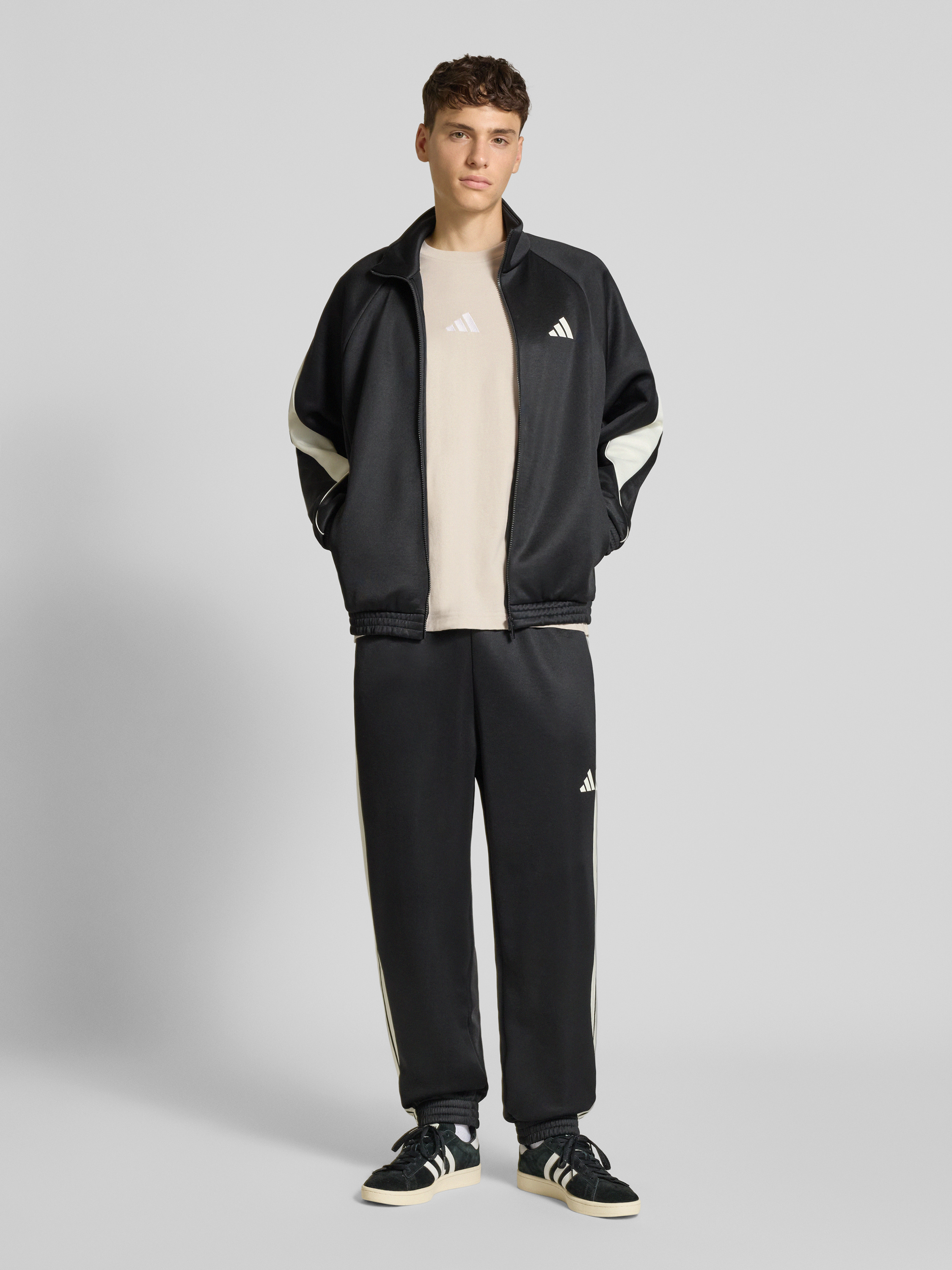 adidas SportswearT-Shirt mit Label-Stitching und Rundhalsausschnitt in sand