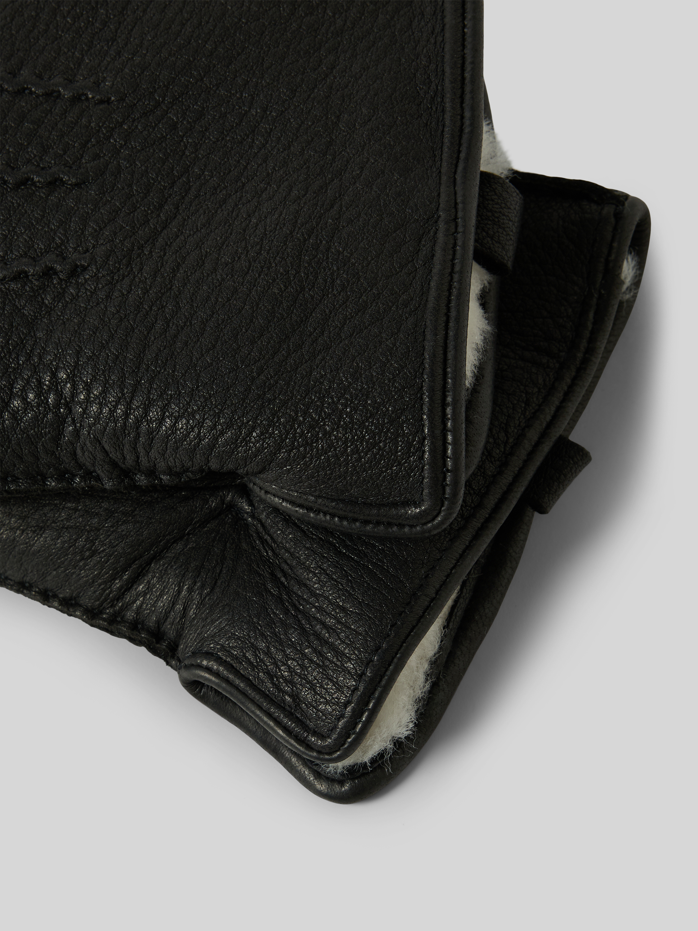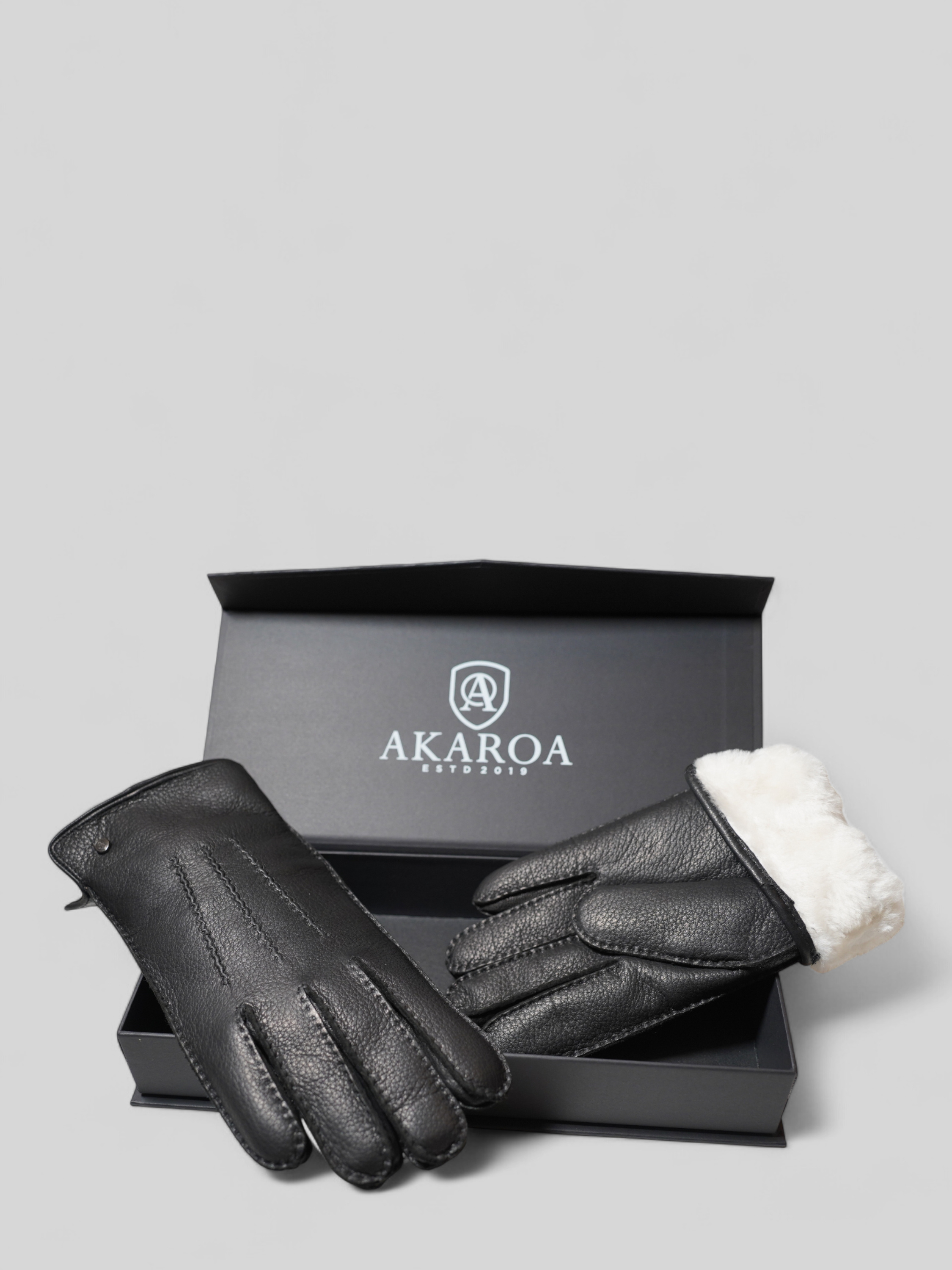 Die Herren Handschuhe von Akaroa, Modell 'BEN', verbinden handgenähte Verarbeitung mit geschmeidigem Hirschleder und sorgen durch das weiche Lammfell für angenehme Wärme. Dezente Ziernähte unterstreichen den klassischen Charakter, während das Material sanft anliegt. So eignet sich dieses Modell besonders an kalten Tagen.