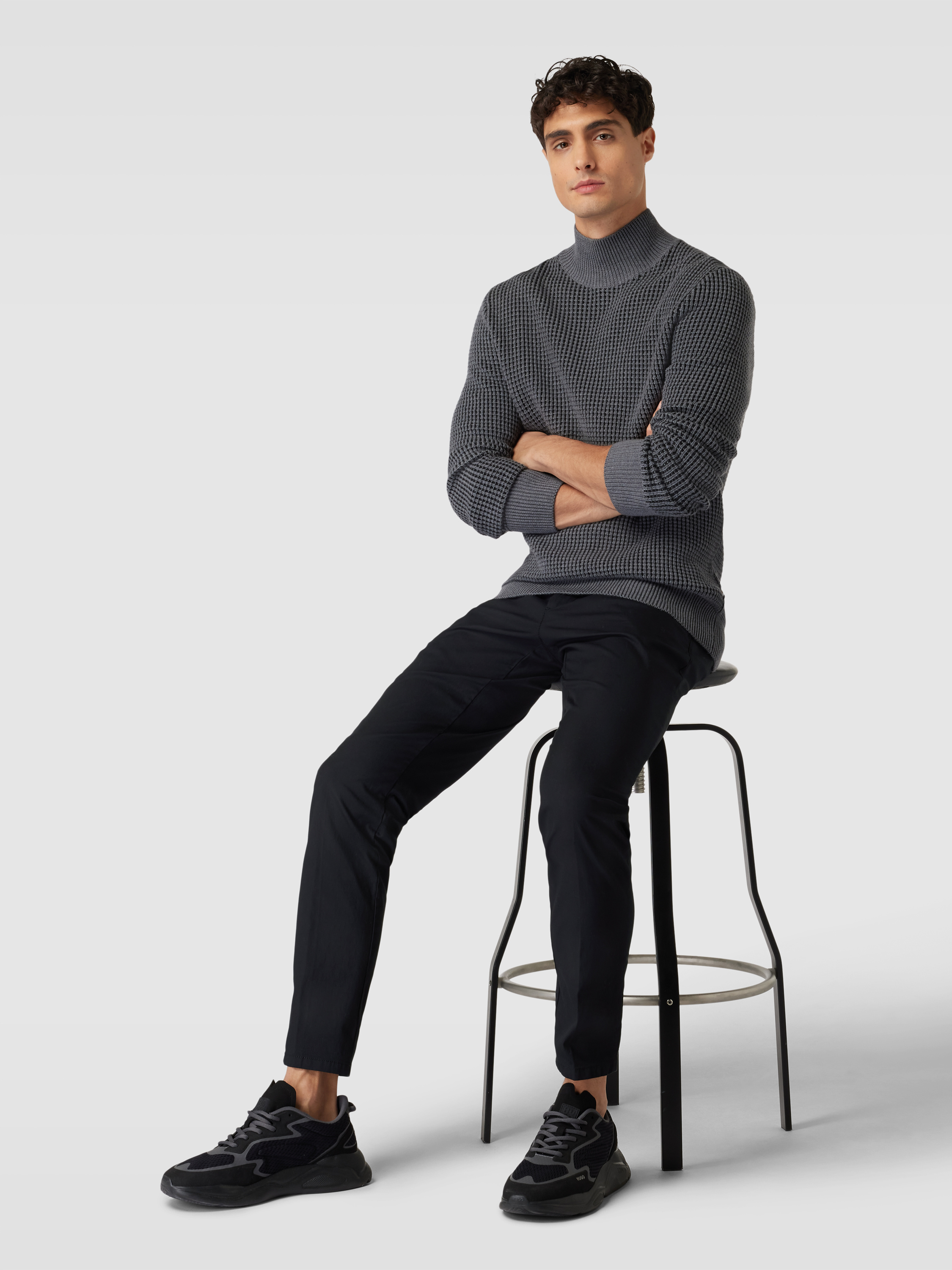 Der Slim Fit Chino von Alberto, Modell 'ROB', bietet durch seinen Baumwoll-Mix mit Stretch-Anteil eine angenehme Passform, die sich flexibel an den Körper anpasst. Das unifarbene Design wirkt elegant und vielseitig kombinierbar. Seitliche Eingrifftaschen und Gesäßtaschen bieten praktischen Stauraum.
