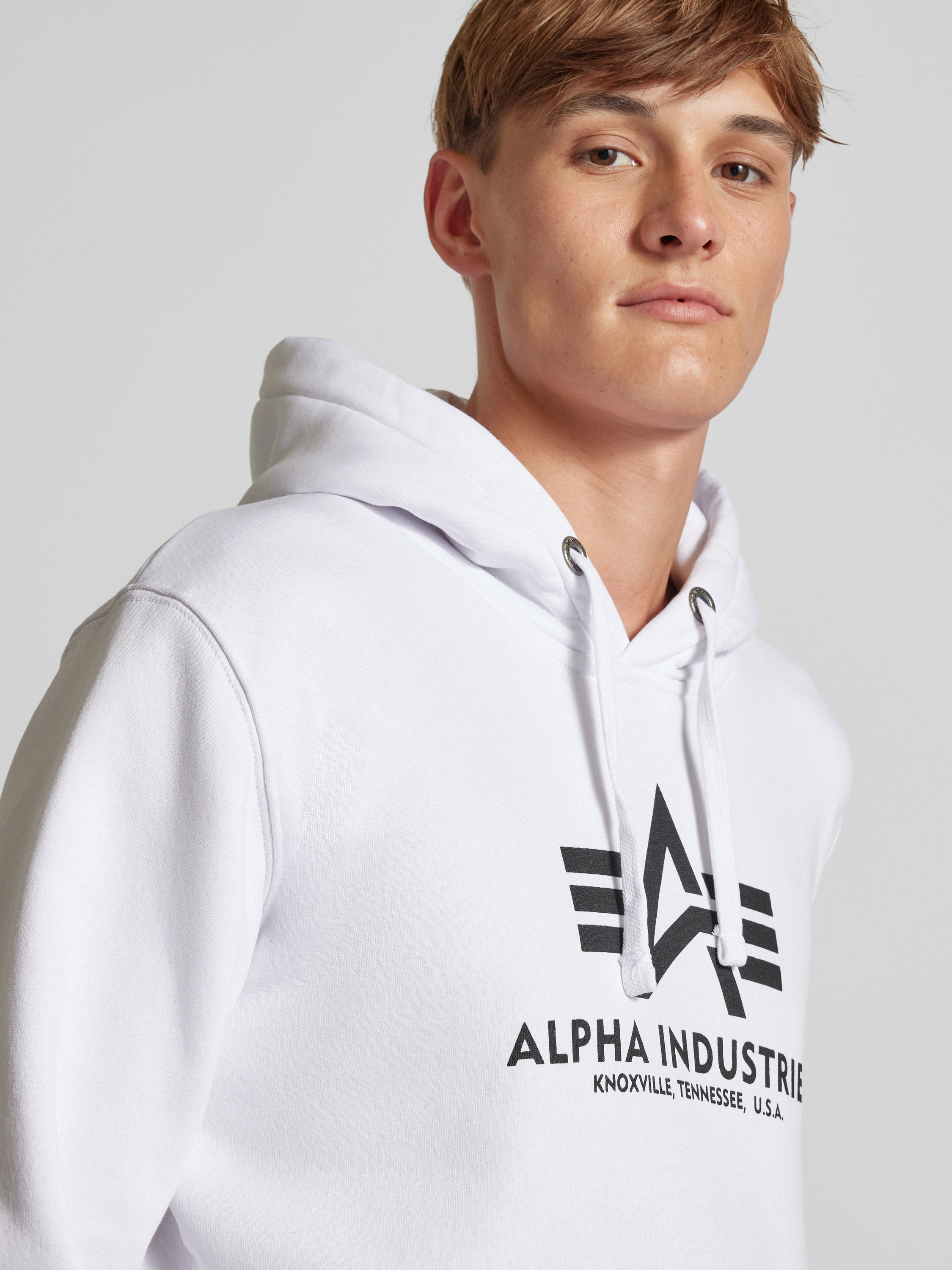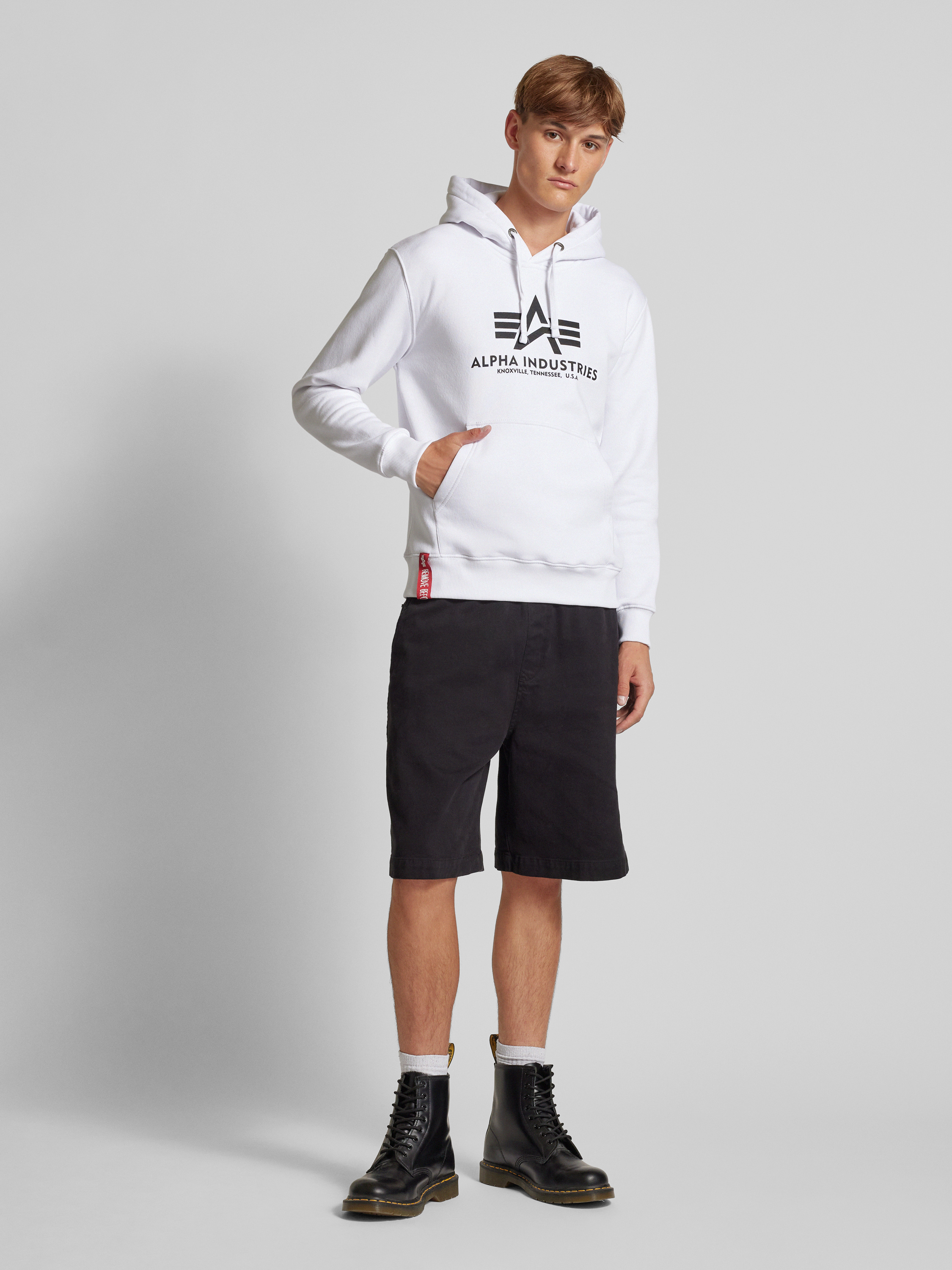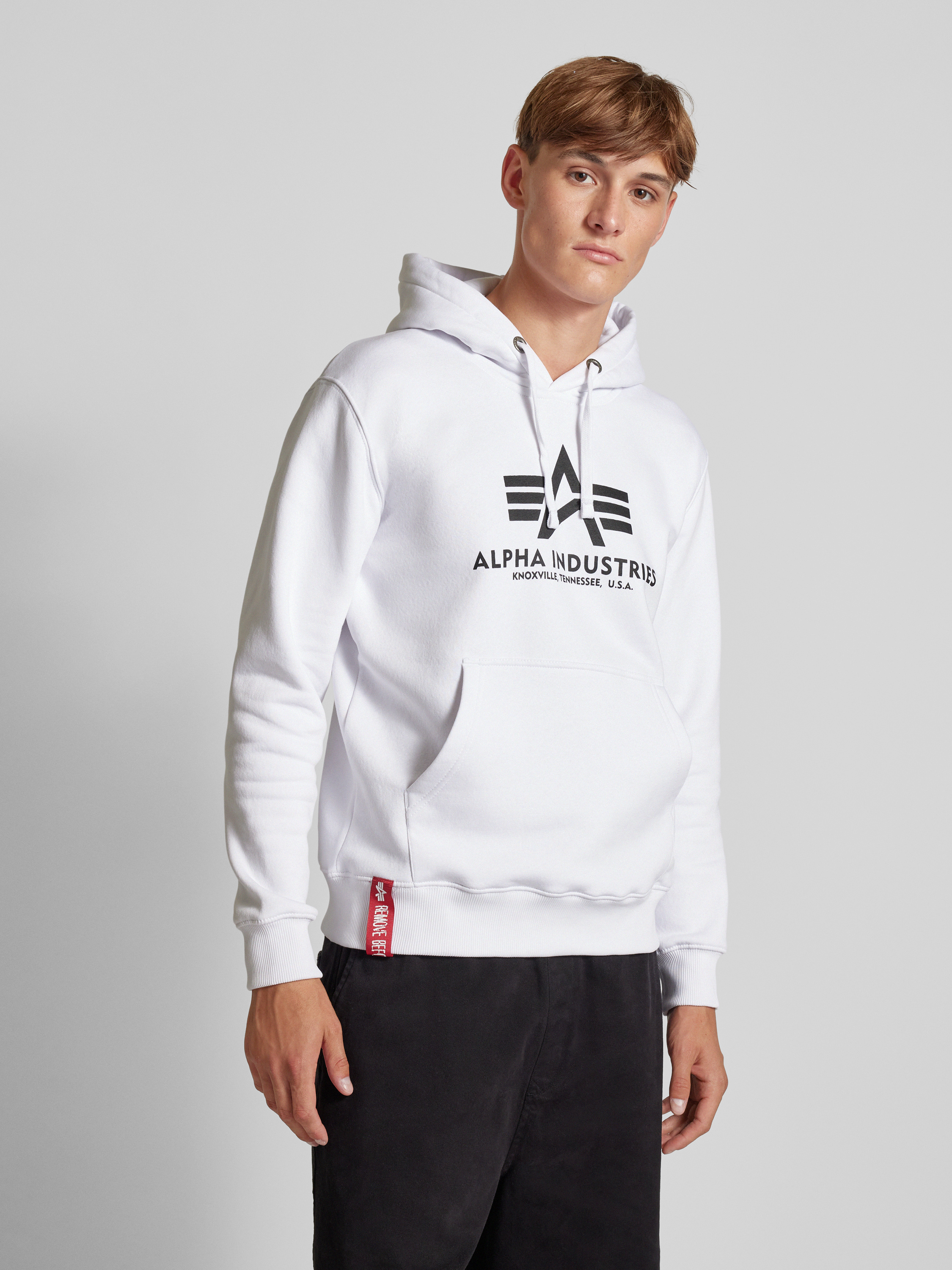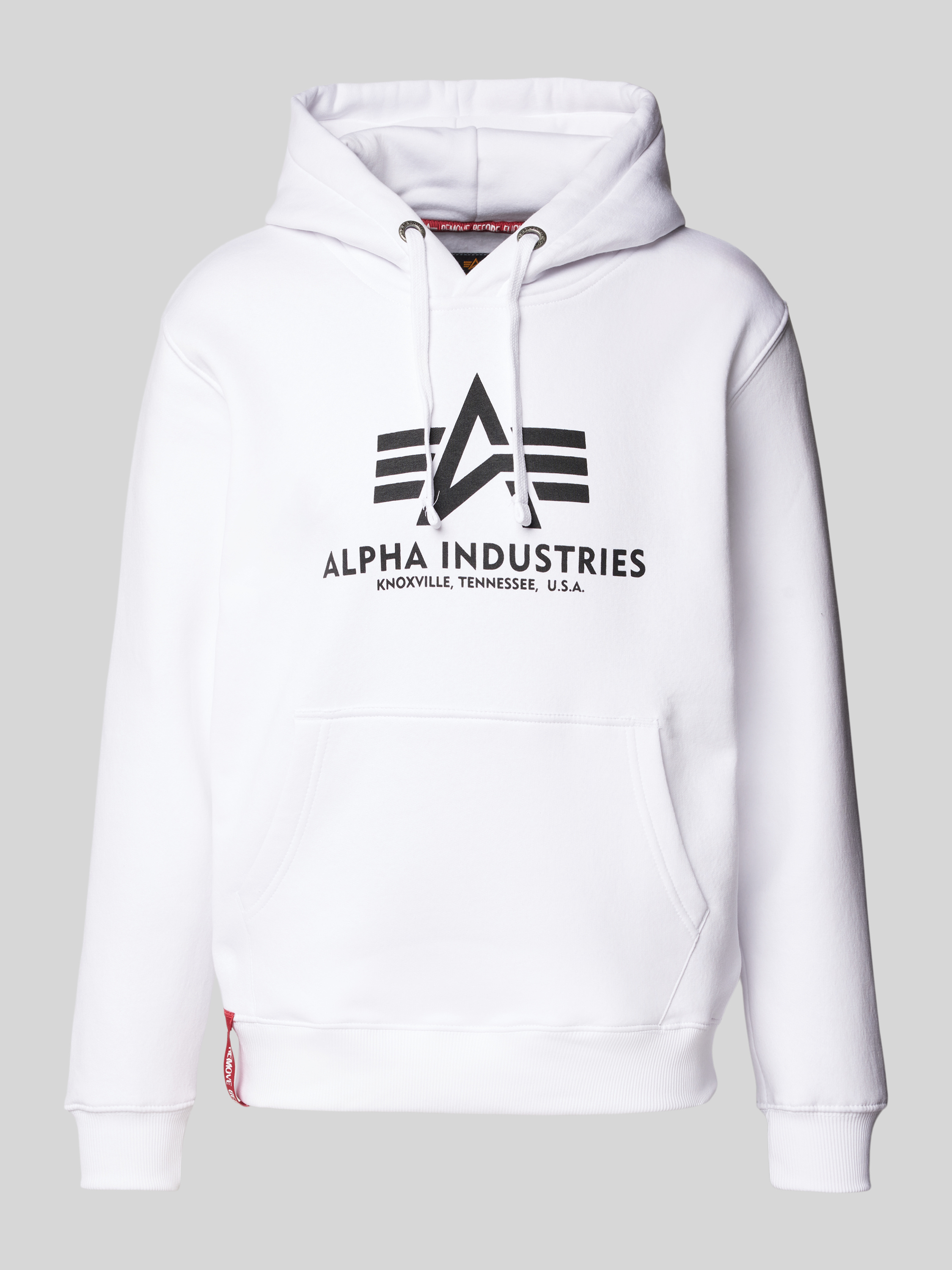 Der Hoodie von Alpha Industries ist aus einer Baumwollmischung gefertigt und locker geschnitten. Er zeigt sich im unifarbenen Design und kommt mit Label-Print sowie Känguru-Tasche.