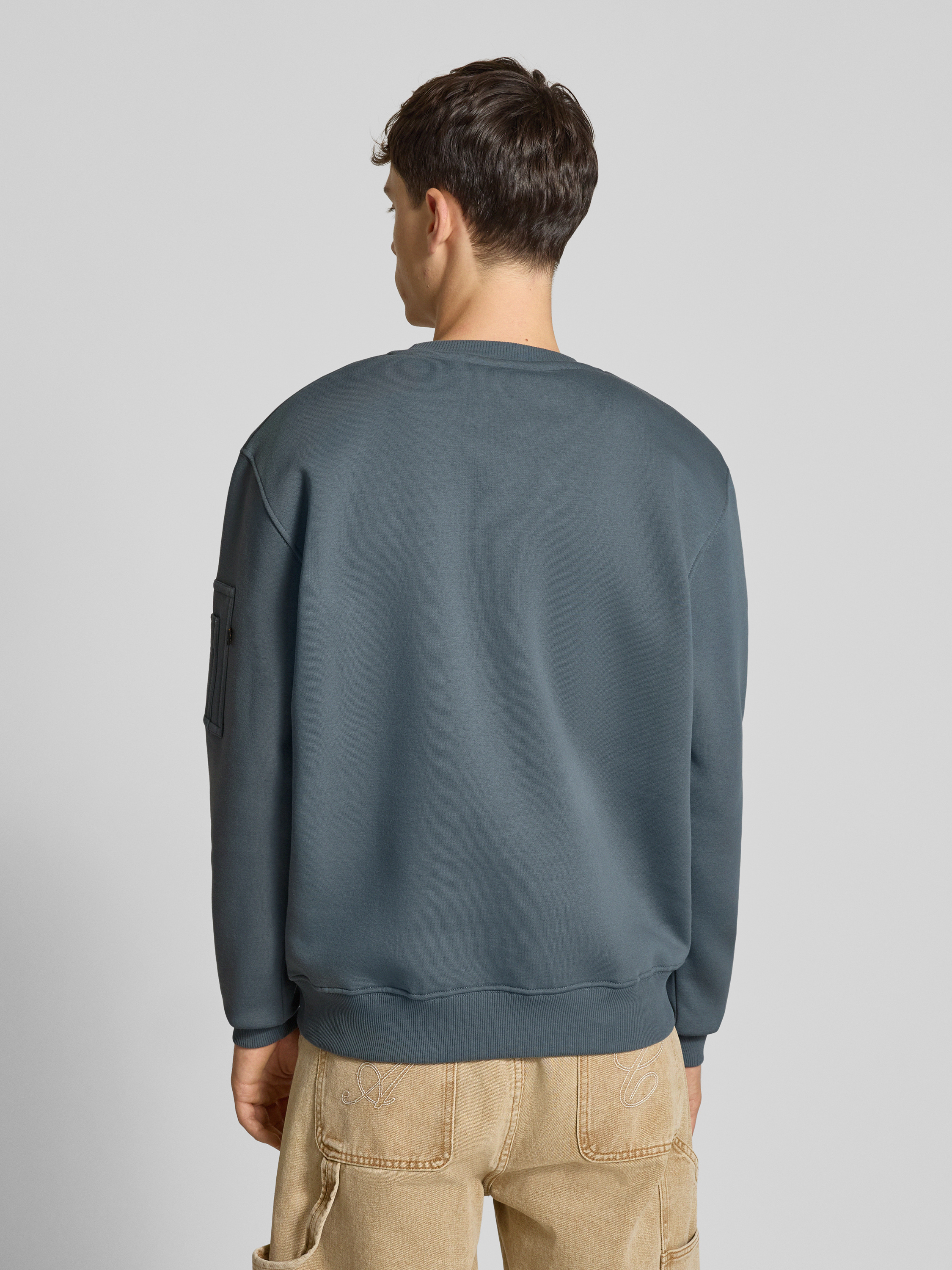 Das Alpha Industries Sweatshirt vereint einen entspannten Regular Fit mit einem Baumwoll-Mix, der für angenehmen Tragekomfort sorgt. Der Rundhalsausschnitt und die gerippten Abschlüsse ergänzen den lässigen Look. Ein auffälliger Label-Print sowie eine praktische Reißverschlusstasche am Ärmel runden das Design ab.