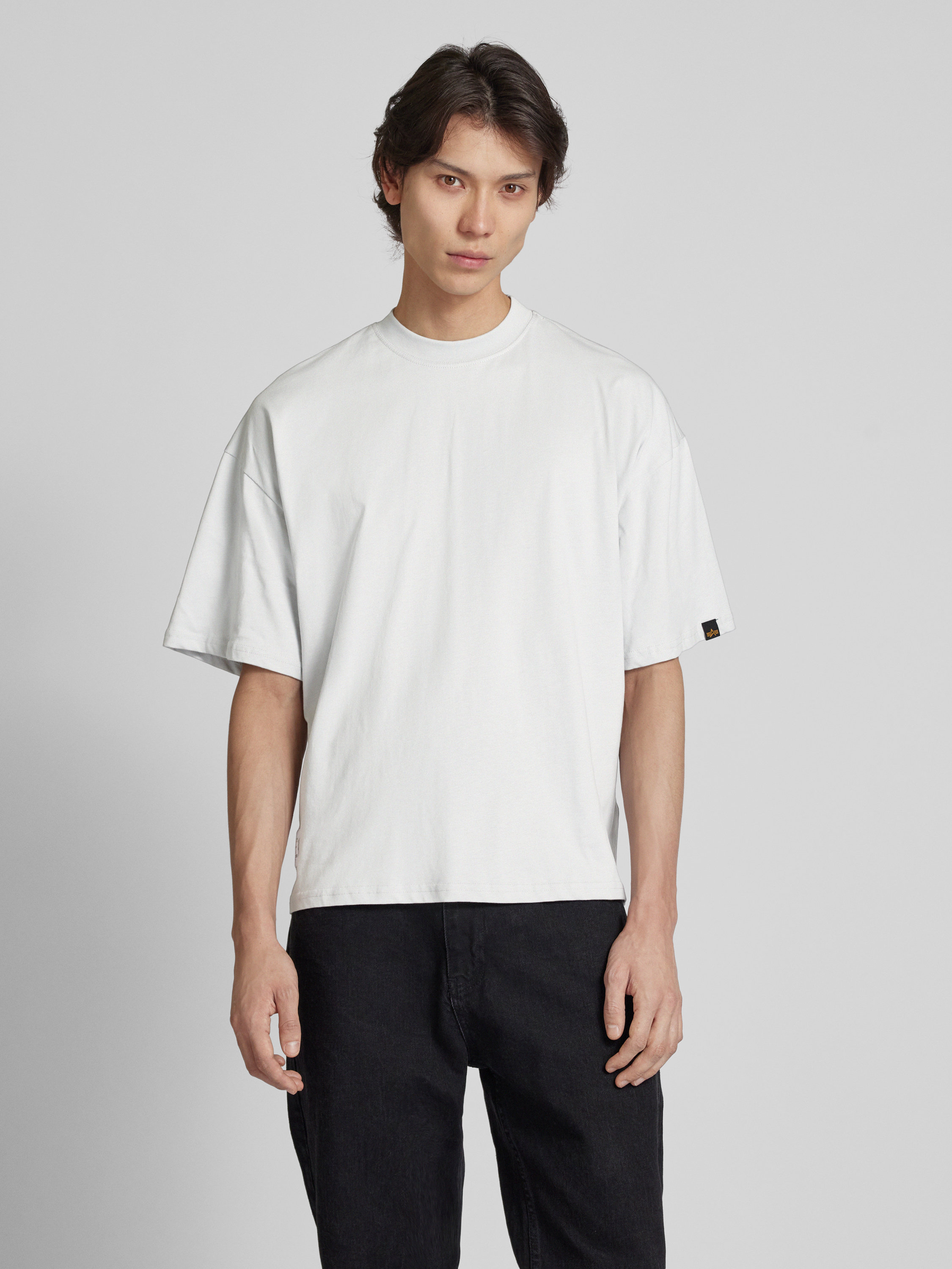 Alpha IndustriesT-Shirt mit Label-Patch Modell 'LOGO' in hellgrau