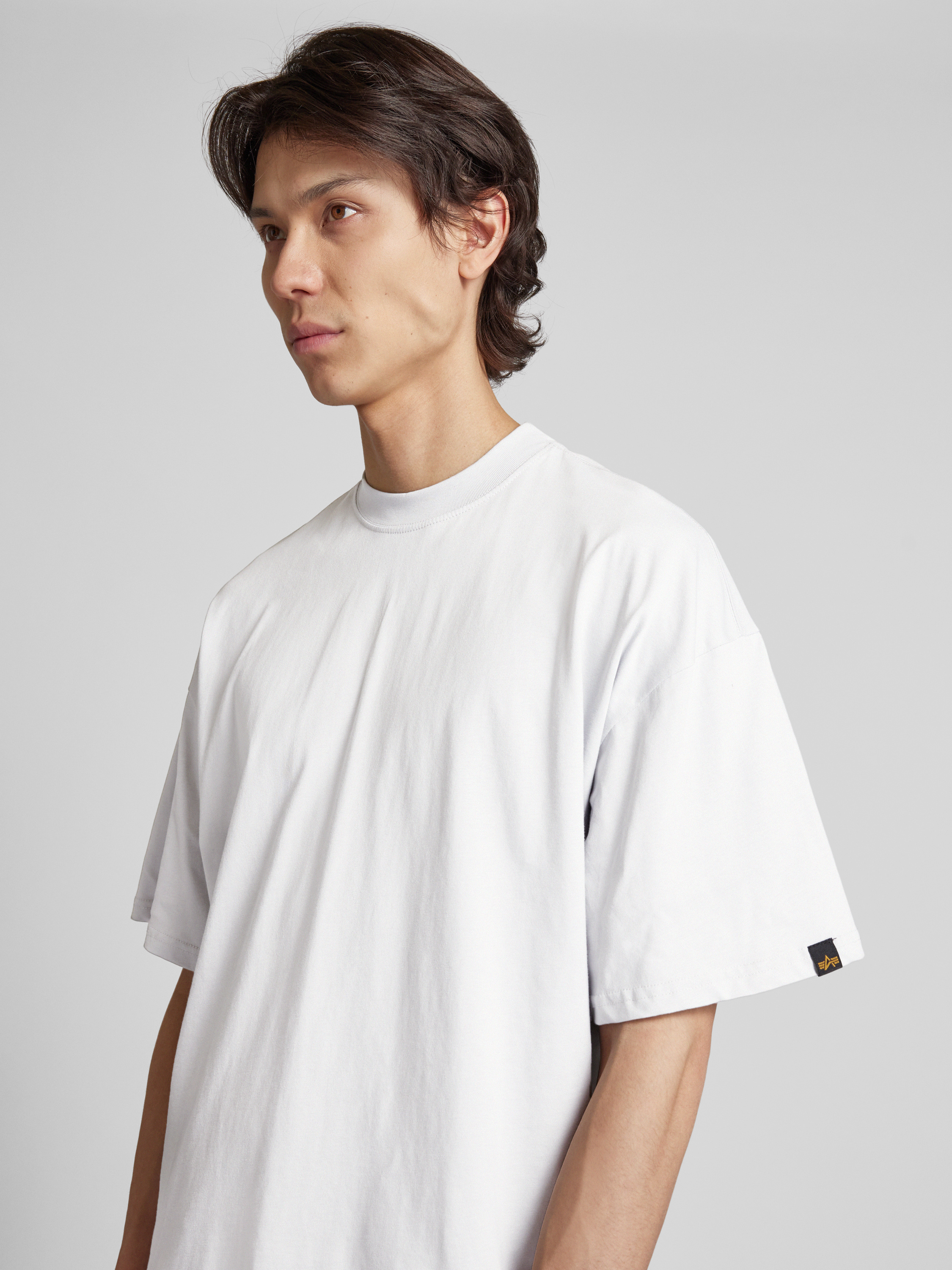 Das T-Shirt von Alpha Industries, Modell 'LOGO', überzeugt durch seinen lockeren Schnitt und das unifarbene Design. Aus reiner Baumwolle gefertigt, fühlt es sich angenehm auf der Haut an. Die überschnittenen Schultern und der Rundhalsausschnitt verleihen dem Klassiker eine lässige Note.