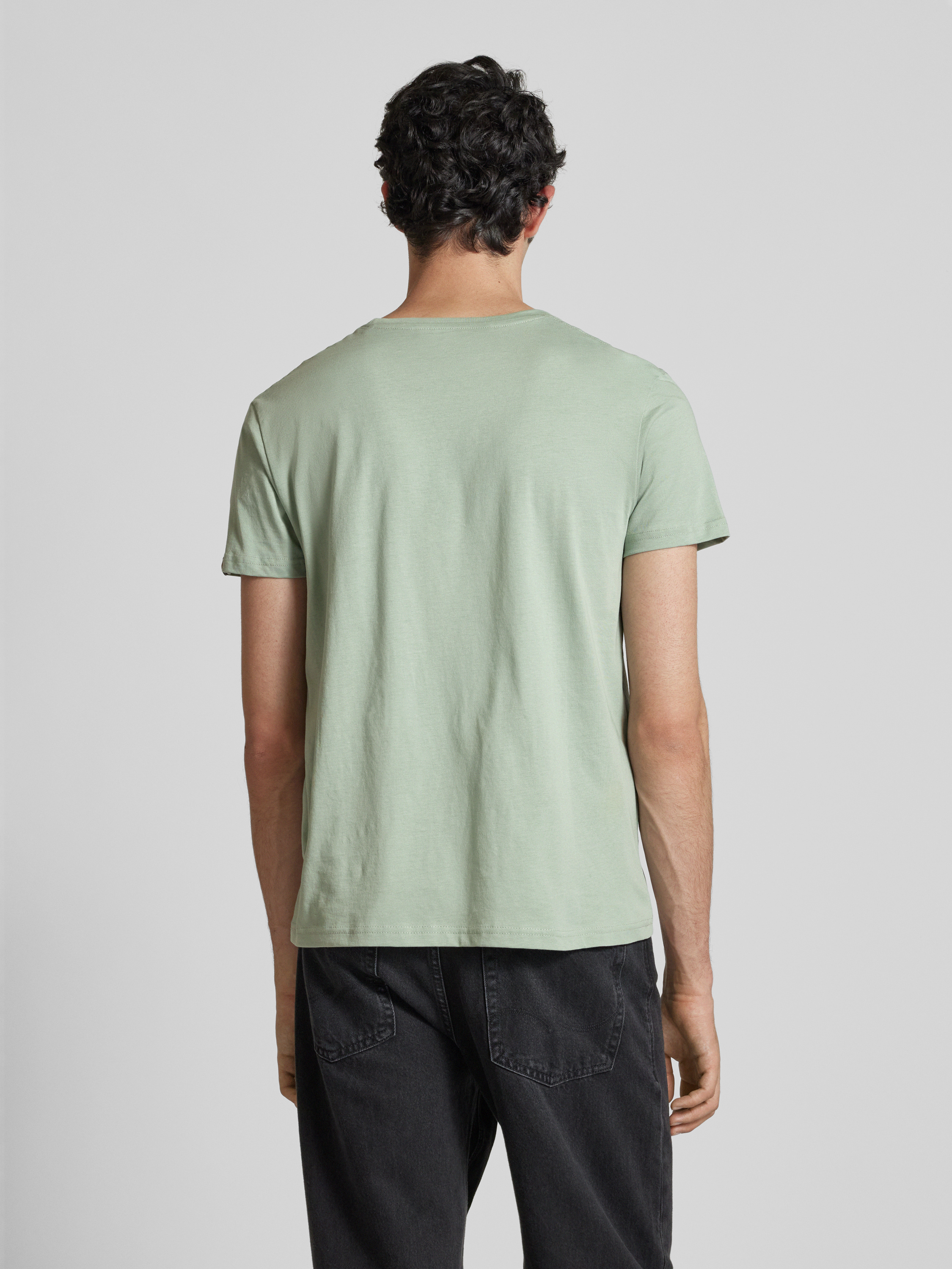 Das T-Shirt von Alpha Industries aus reiner gewachster Baumwolle kombiniert Komfort mit Langlebigkeit. Der gerade Schnitt und der klassische Rundhalsausschnitt sorgen für eine bequeme Passform, während der auffällige Label-Print einen modischen Akzent setzt. Ideal für lässige Alltagslooks.