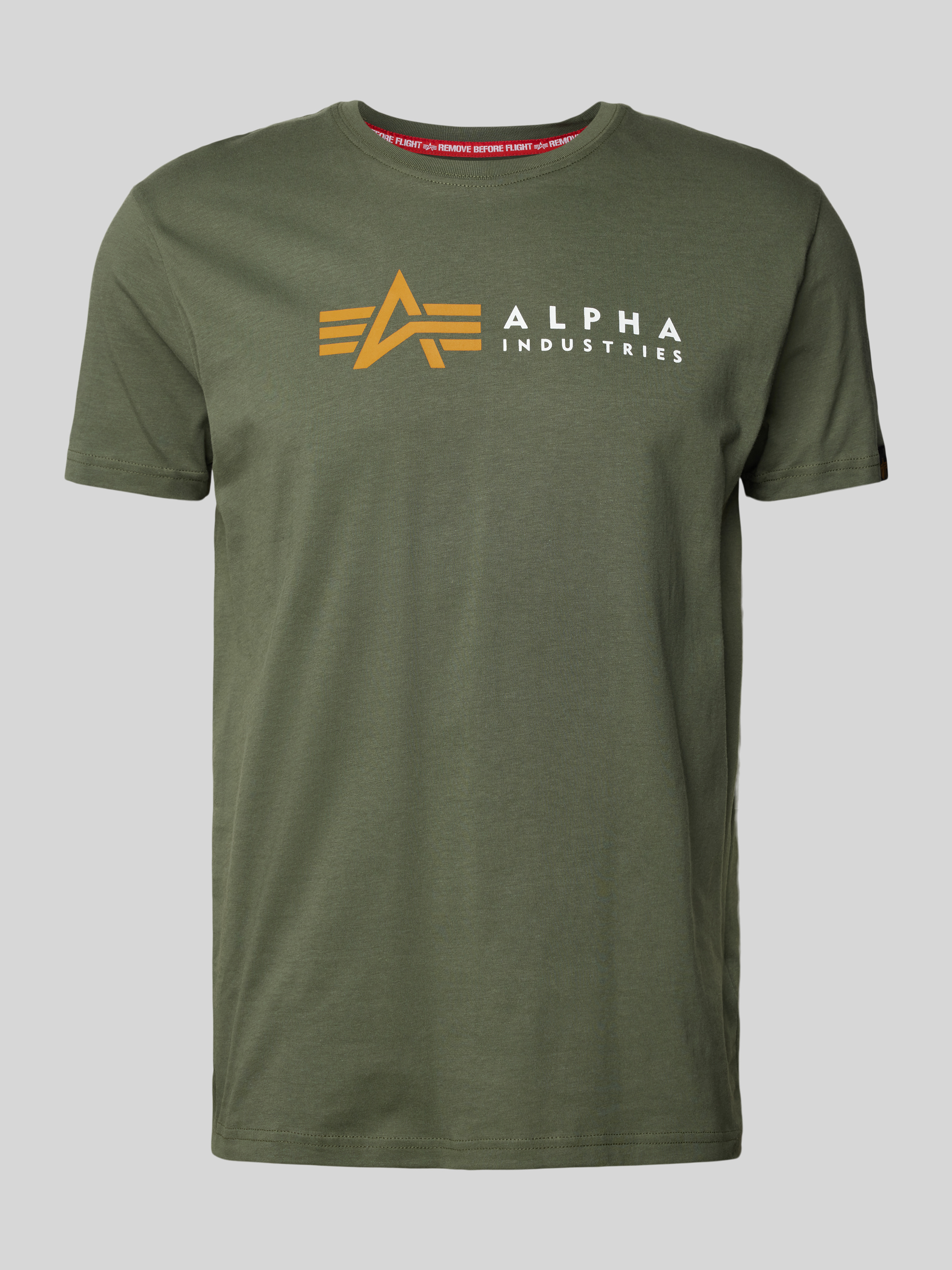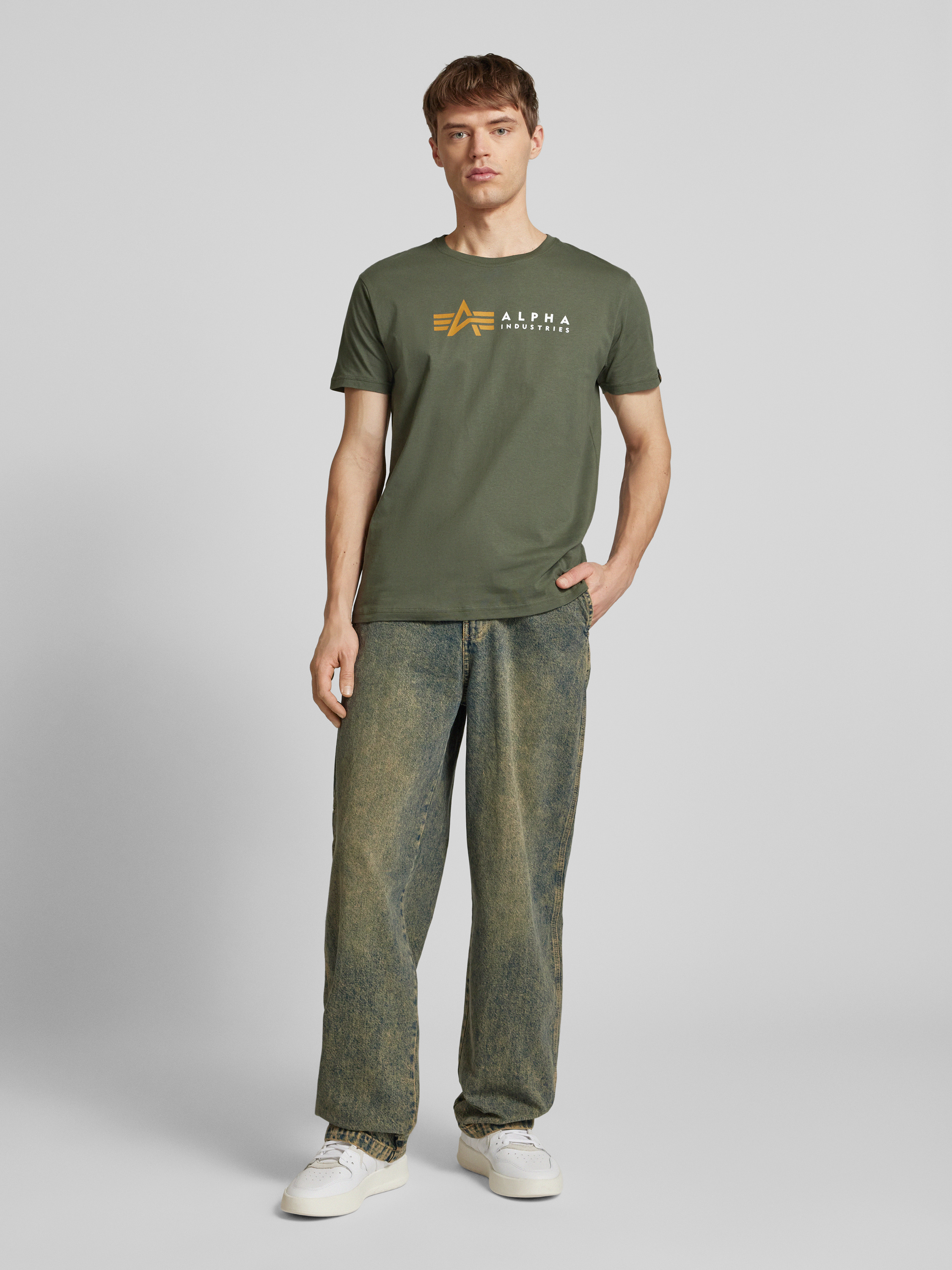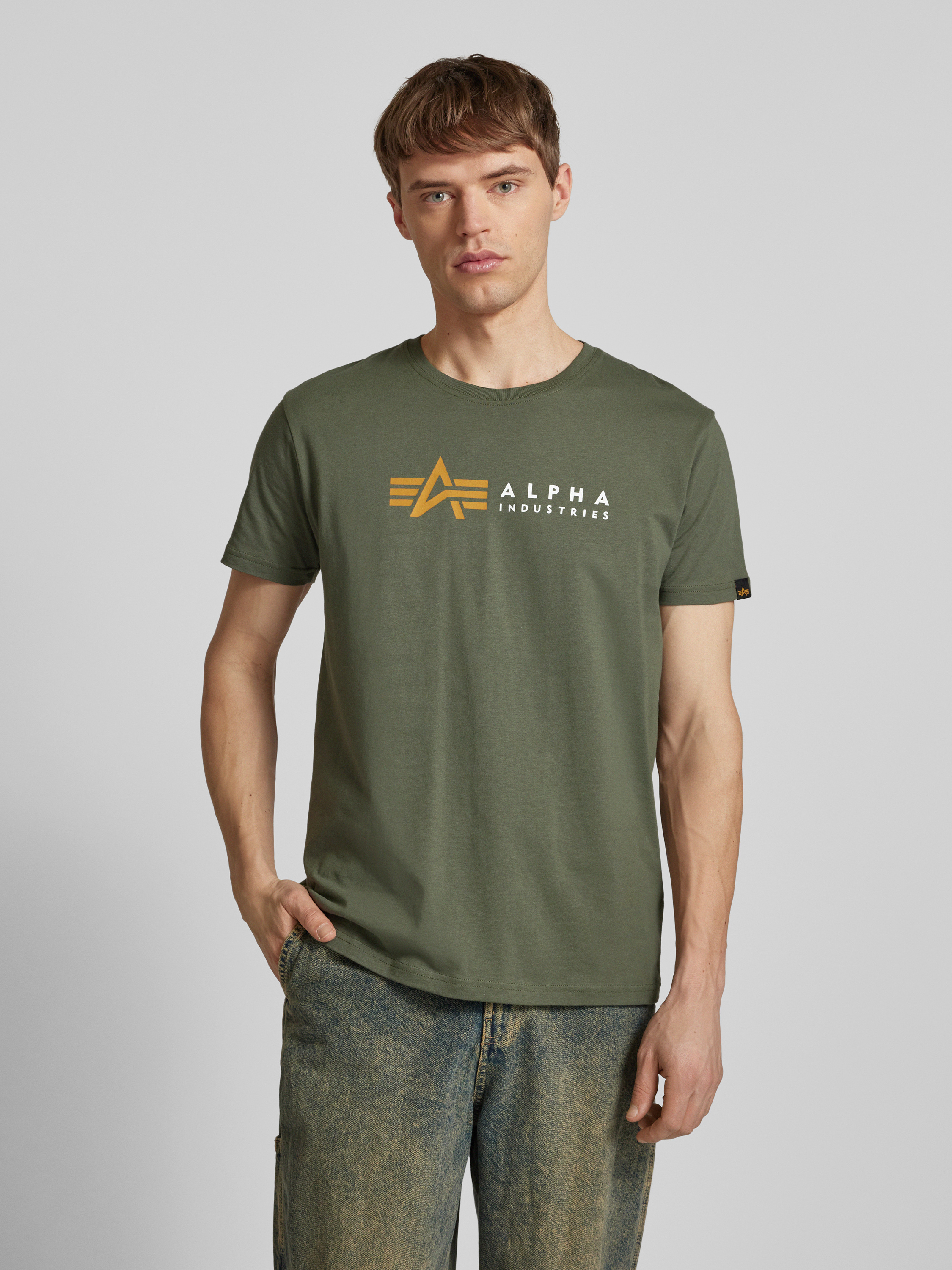 Das Herren T-Shirt von Alpha Industries, gefertigt aus reiner Baumwolle, bietet mit seinem geraden Schnitt und dem klassischen Rundhalsausschnitt einen angenehmen Tragekomfort. Der auffällige Label-Print verleiht dem Design eine moderne Note, ideal für lässige Alltagslooks.