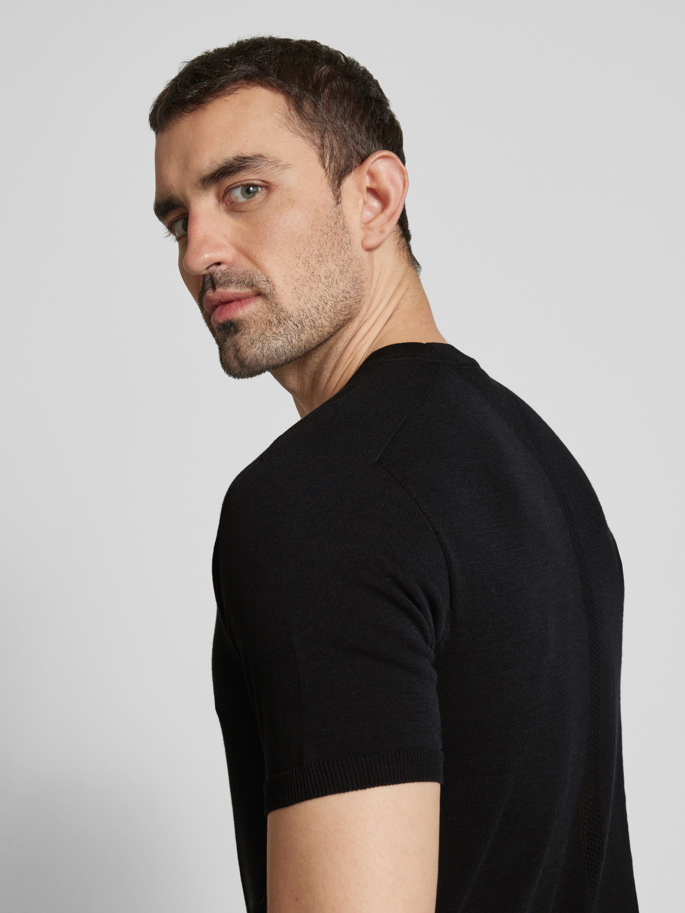 AlphaTauriT-Shirt mit Leinen-Anteil und Label-Detail Modell 'FASHI' in black