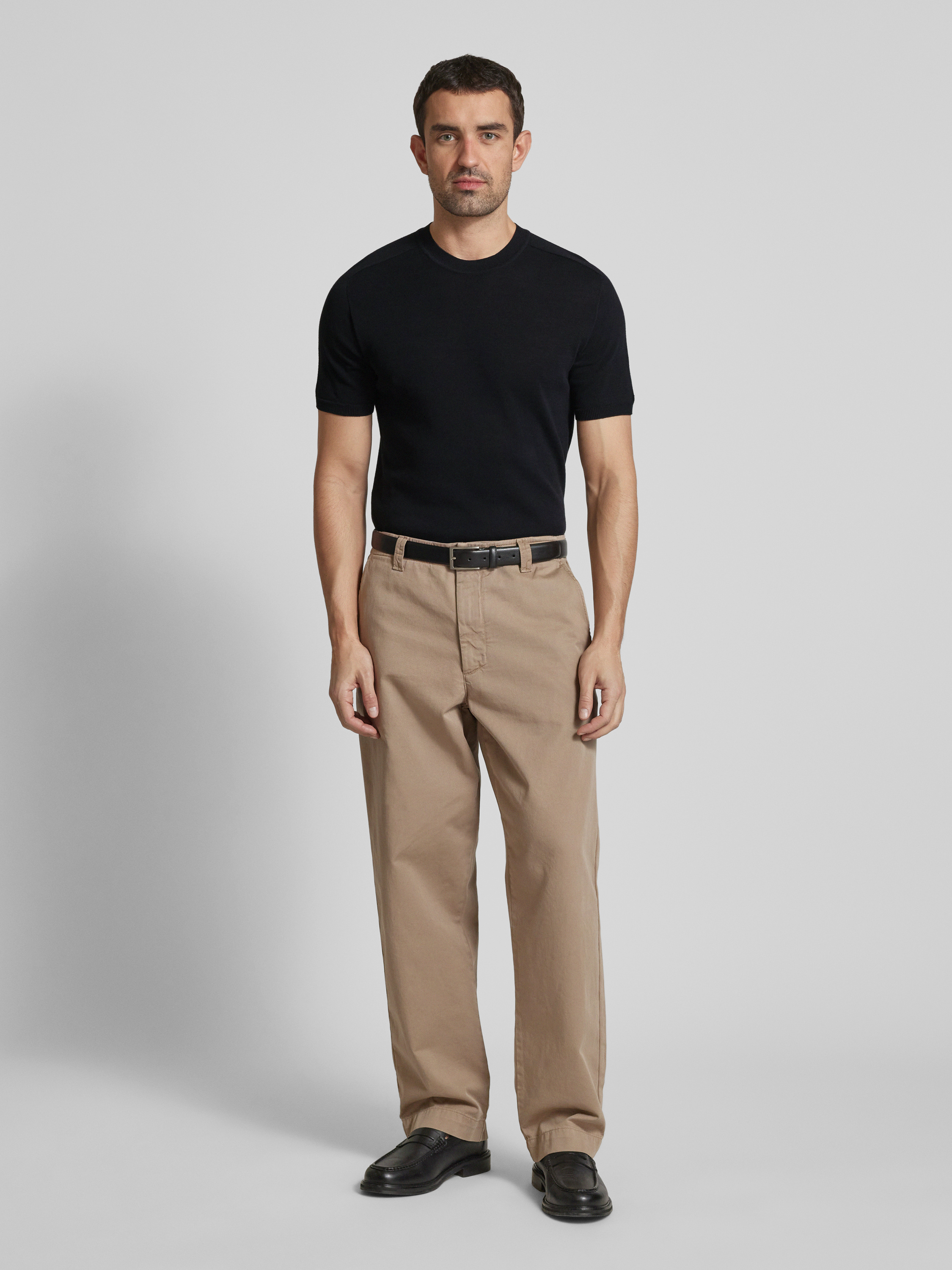 Das Herren T-Shirt von AlphaTauri, Modell 'FASHI', kombiniert geschickt einen Baumwoll-Mix mit Leinen-Anteil und bietet so ein angenehmes Tragegefühl. Der gerade Schnitt und der modische Stehkragen sorgen für eine lässige Passform. Ein dezentes Label-Detail rundet das Design stilvoll ab.