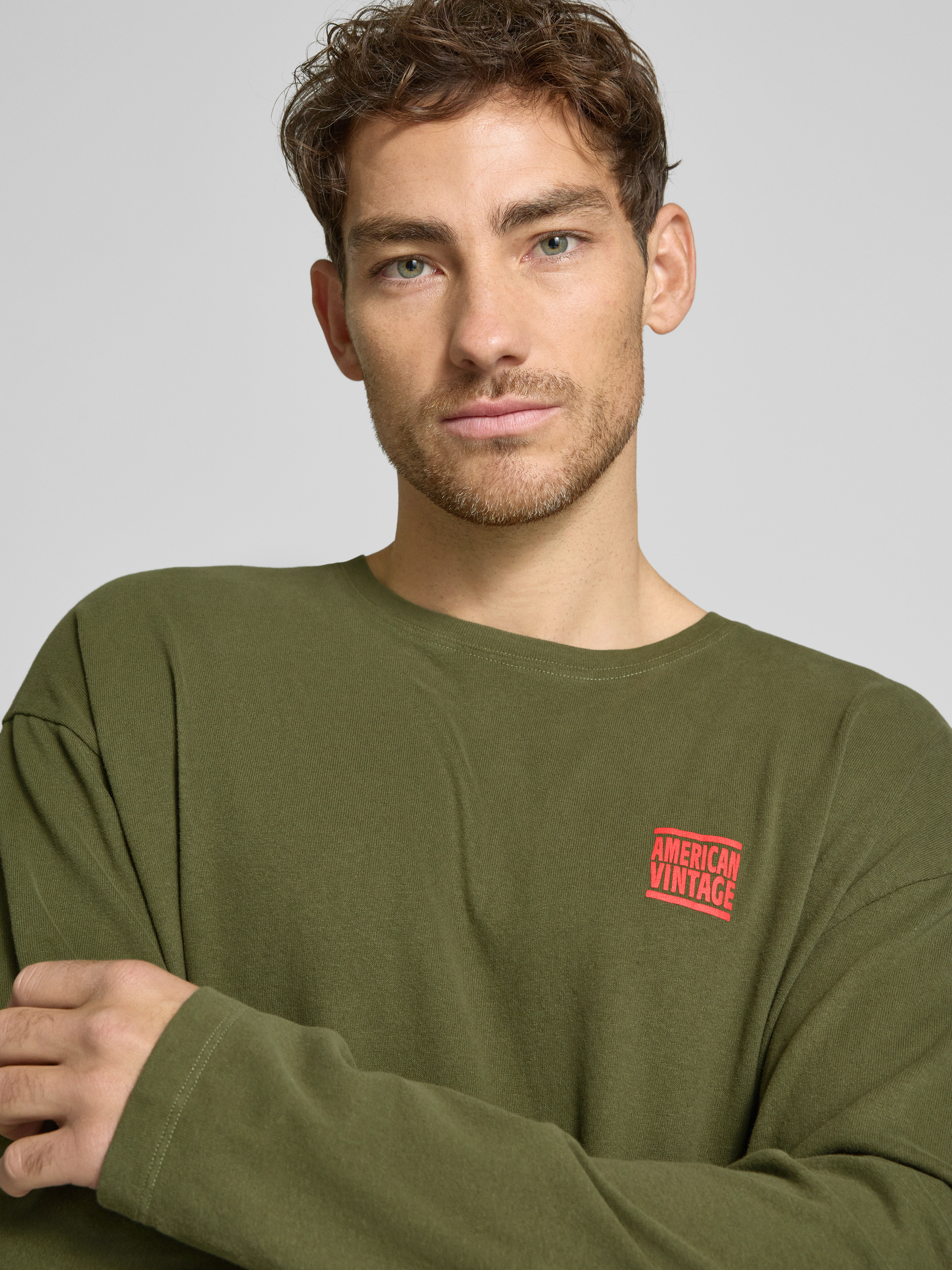 Das Longsleeve von American Vintage kombiniert entspanntes Tragegefühl mit stilvollem Design. Hergestellt aus reiner Baumwolle, bietet es durch seinen Regular Fit eine angenehme Passform. Ein gerippter Rundhalsausschnitt und der dezente Label-Print setzen dezente Akzente im Alltag.