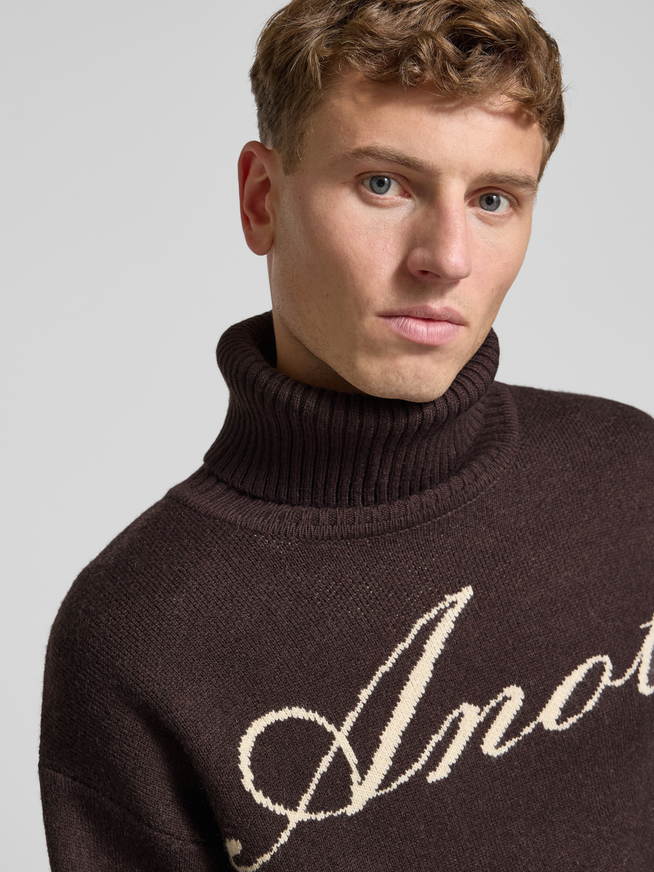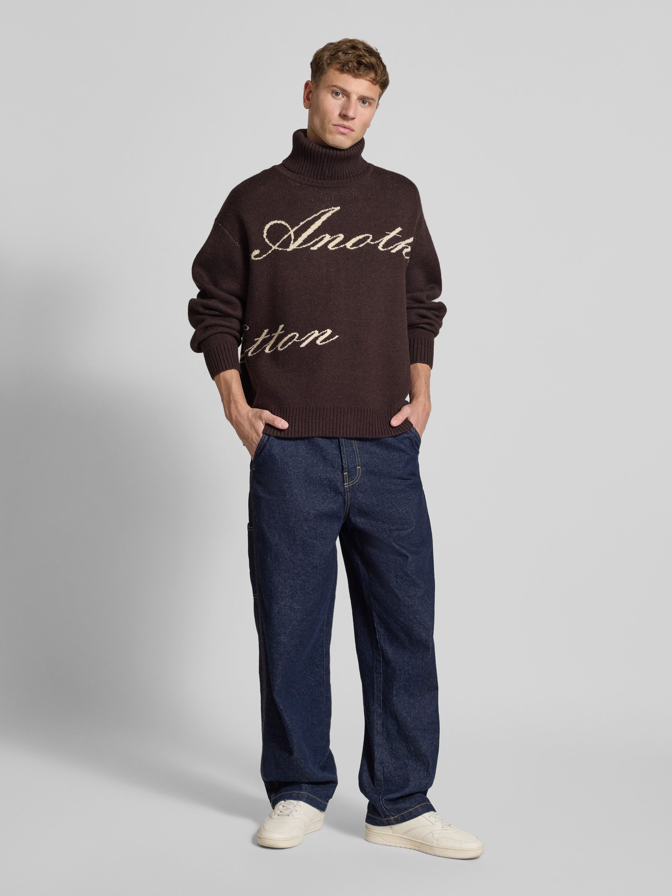 Der Herrenpullover von ANOTHER COTTON LAB fällt durch seinen entspannten Oversized-Schnitt und den markanten Rollkragen auf, wodurch Bewegungsfreiheit entsteht und ein angenehmes Tragegefühl unterstützt wird. Ein dezenter Label-Print und gerippte Abschlüsse setzen optische Akzente. Durch den Material-Mix eignet sich der Strickpullover für verschiedene Gelegenheiten.