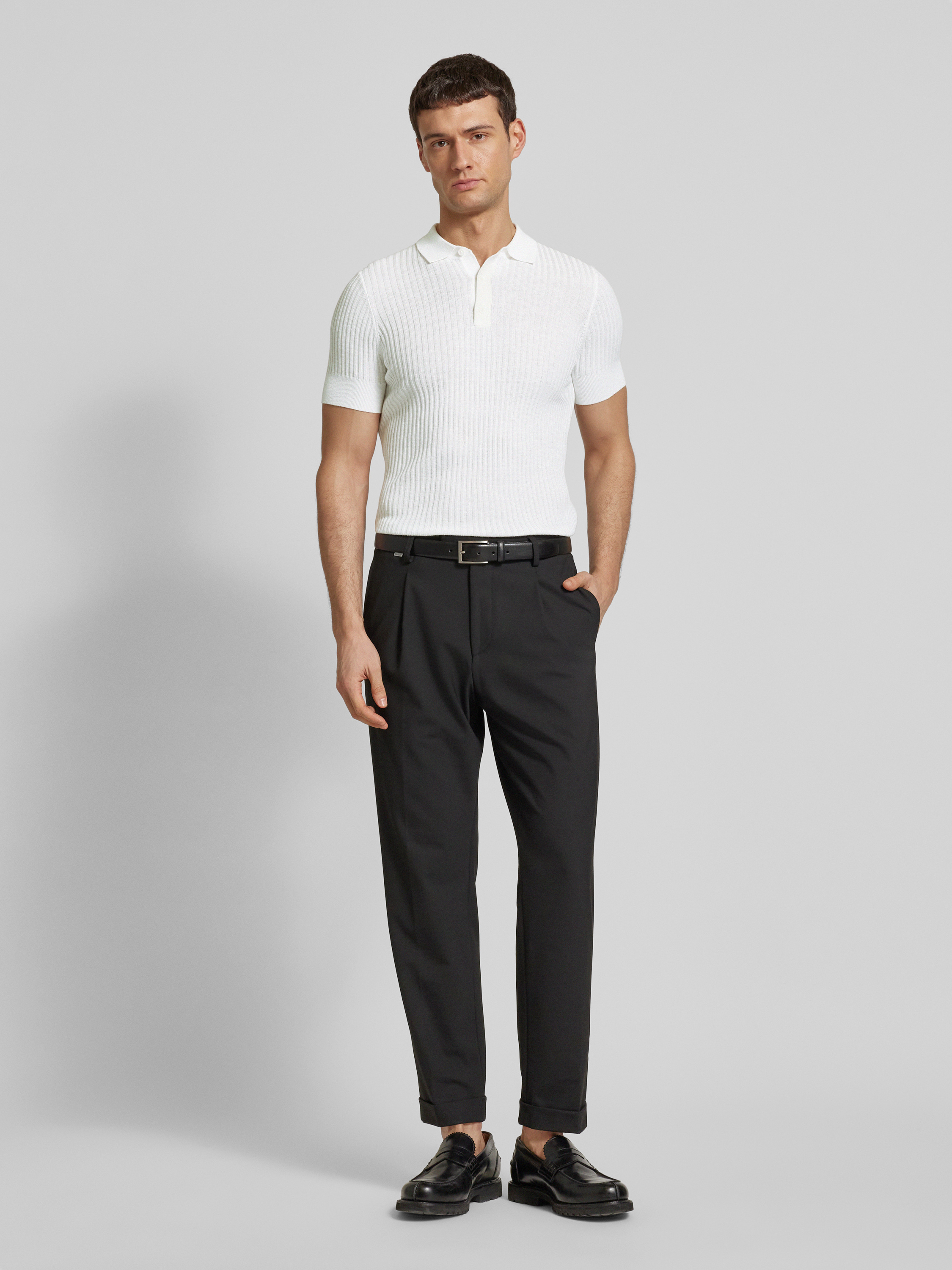 Antony MoratoSlim Fit Poloshirt aus Viskose-Mix mit Leinen Anteil in offwhite