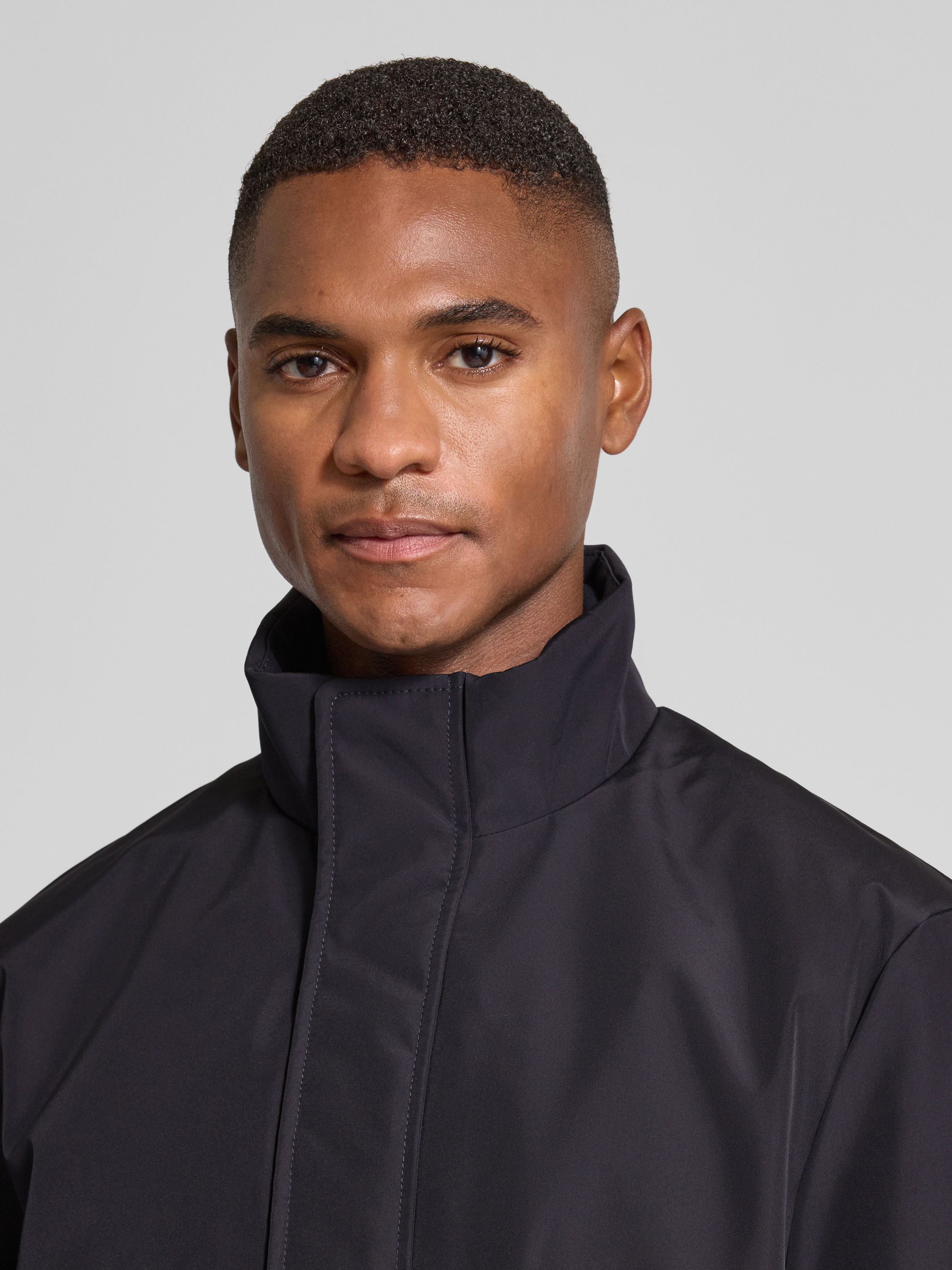 Der Herren-Trenchcoat von ARMANI EXCHANGE zeichnet sich durch seinen geraden Schnitt und den markanten Stehkragen aus, wodurch eine klare Silhouette entsteht. Dank der praktischen Reißverschlusstaschen lassen sich wichtige Kleinigkeiten sicher verstauen. So eignet sich das Modell unkompliziert für wechselhaftes Wetter im Alltag.
