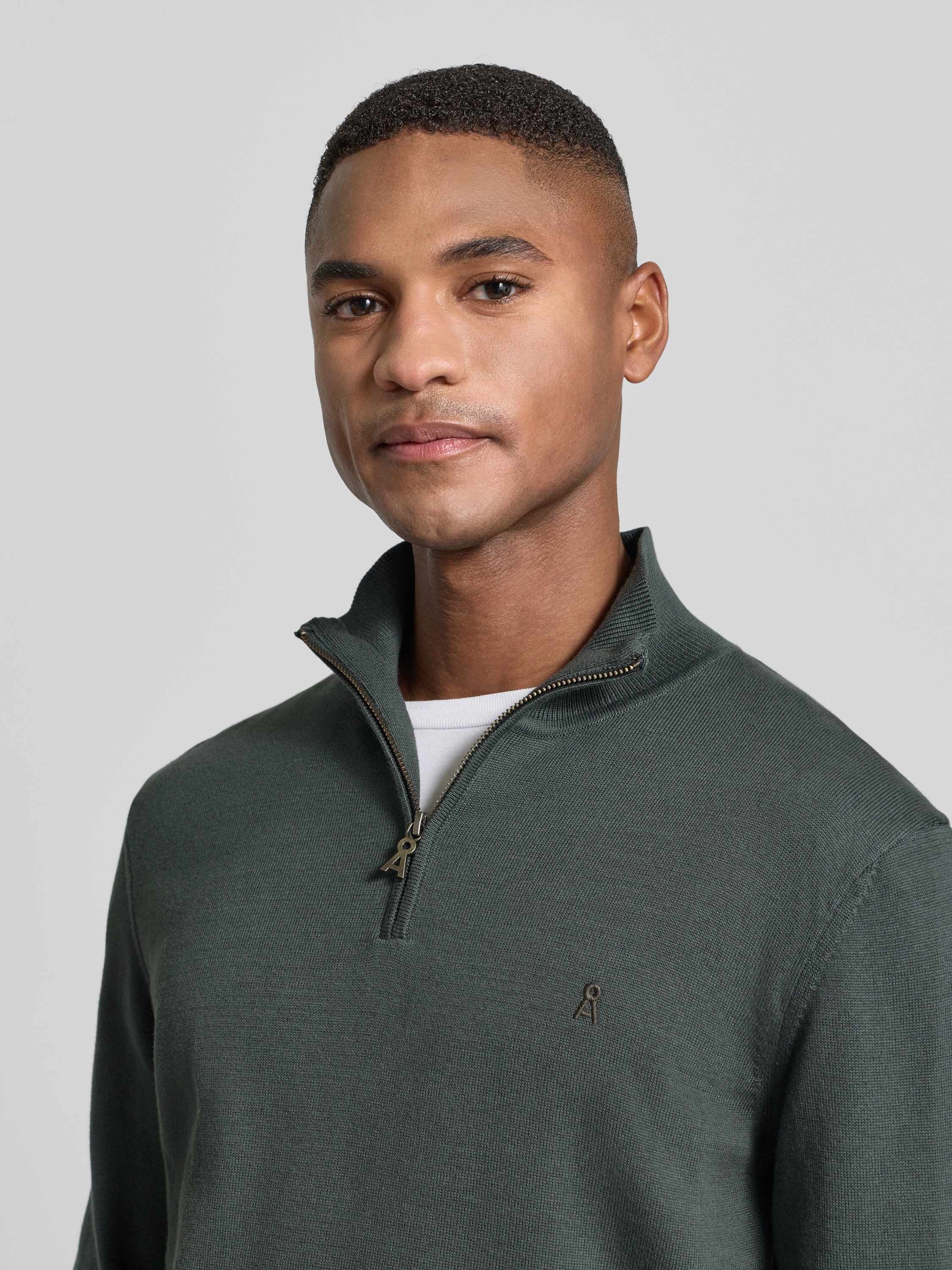 Der Herren Troyer von Armedangels, Modell Faabes, zeichnet sich durch eine klassische Regular-Fit-Passform und einen markanten Troyer-Kragen aus. Durch die Verarbeitung im feinen Strick aus reiner Bio-Baumwolle fühlt sich das Material angenehm weich auf der Haut an. Die schlichte, unifarbene Optik lässt sich vielseitig kombinieren und bringt dezente Details wie das Logo-Stitching zur Geltung.
