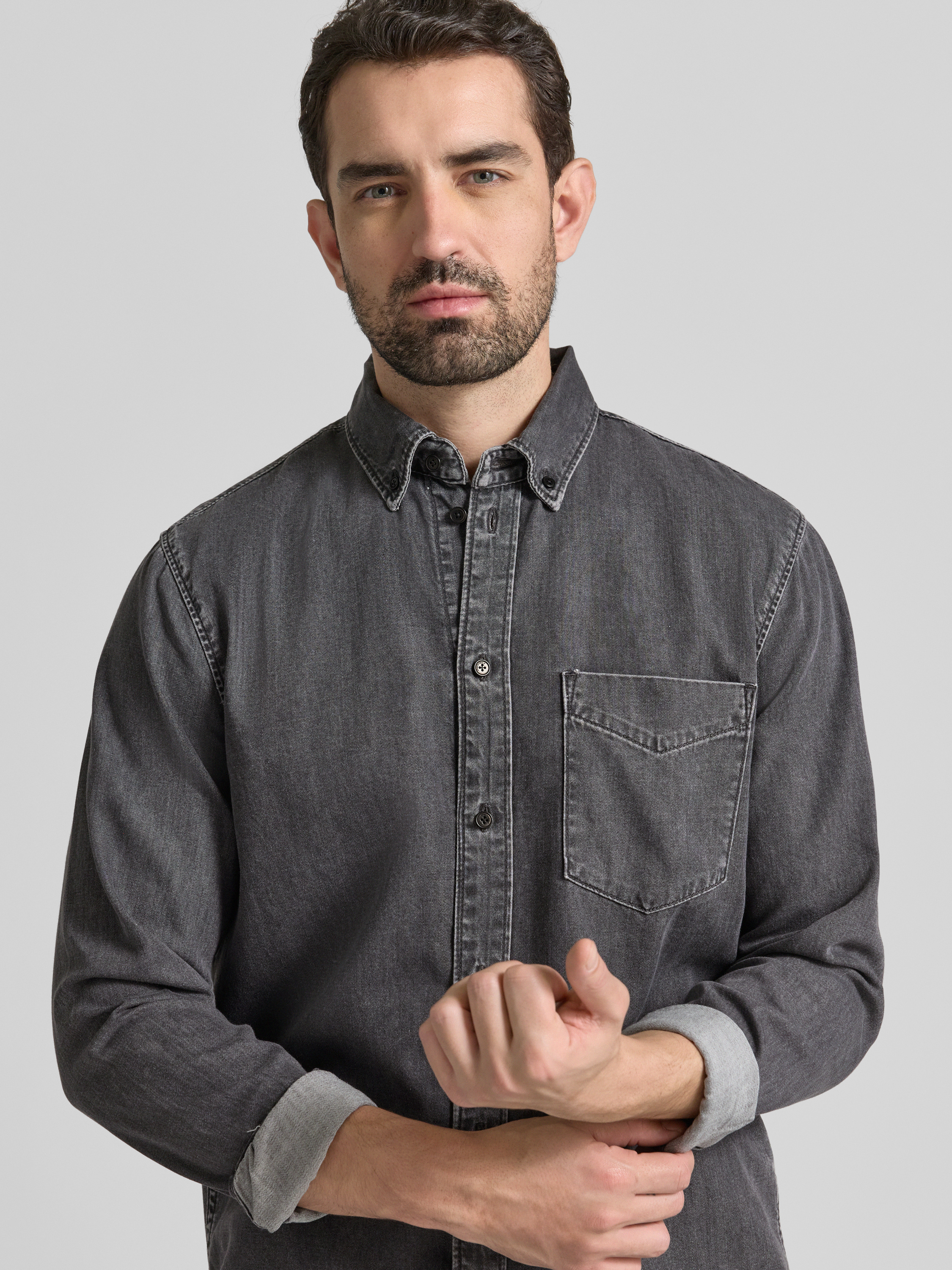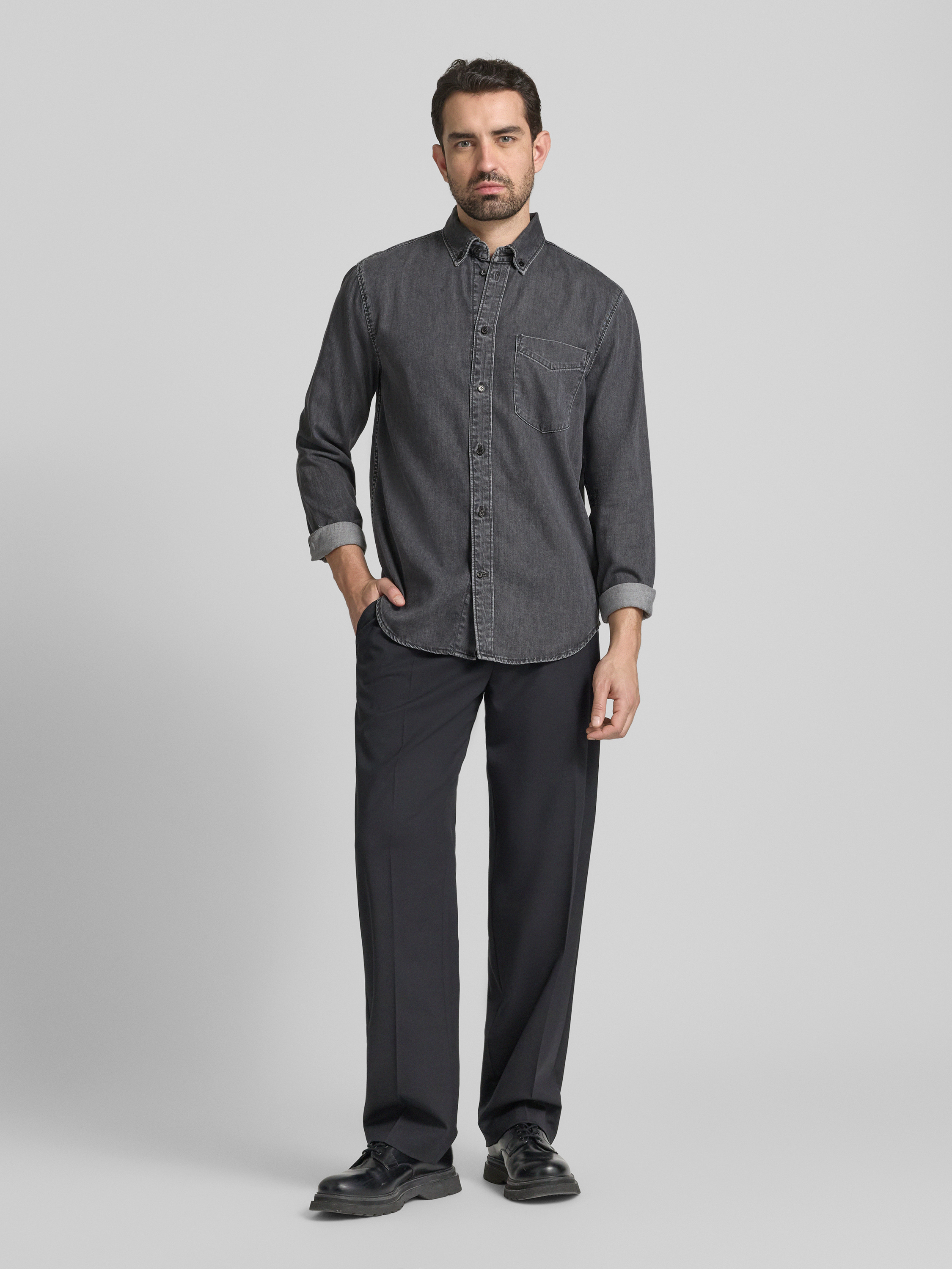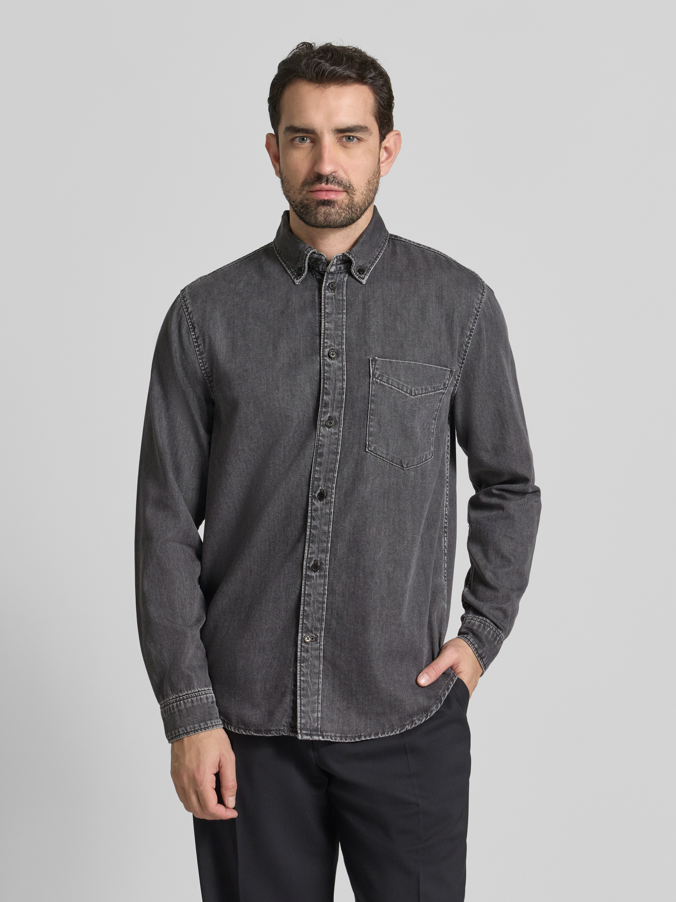 Das Herren Freizeithemd von Armedangels, Modell Gavraa, zeichnet sich durch seinen legeren Relaxed-Fit aus und sorgt für ein angenehmes Tragegefühl im Alltag. Dank des Bio-Baumwoll-Lyocell-Mix kommt eine sanfte Haptik mit dezenter Denim-Optik zusammen. Die unifarbene Gestaltung wirkt vielseitig, während eine Brusttasche praktische Akzente setzt.