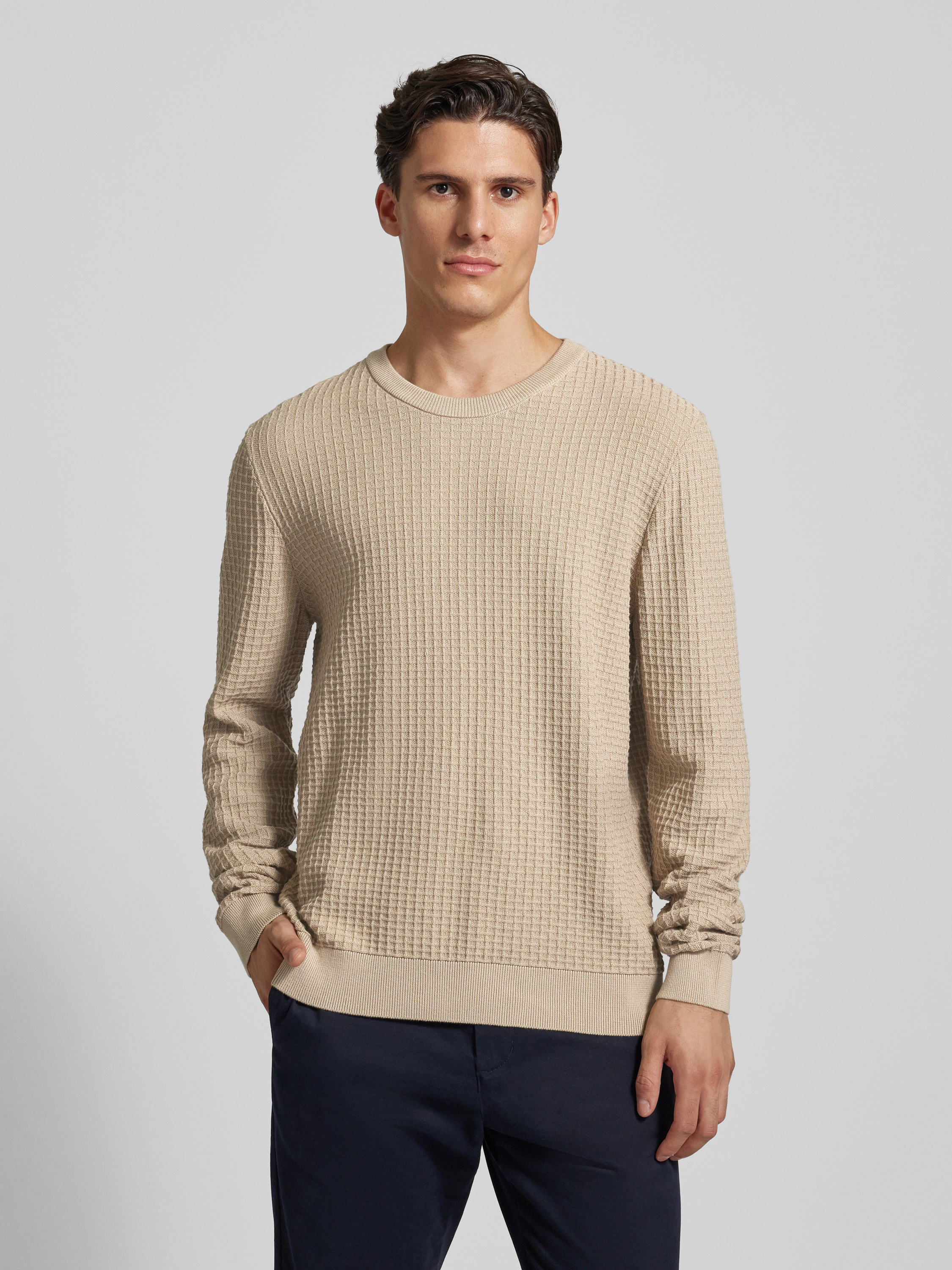 ArmedangelsStrickpullover mit gerippten Abschlüssen Modell 'GRAANMO' in sand