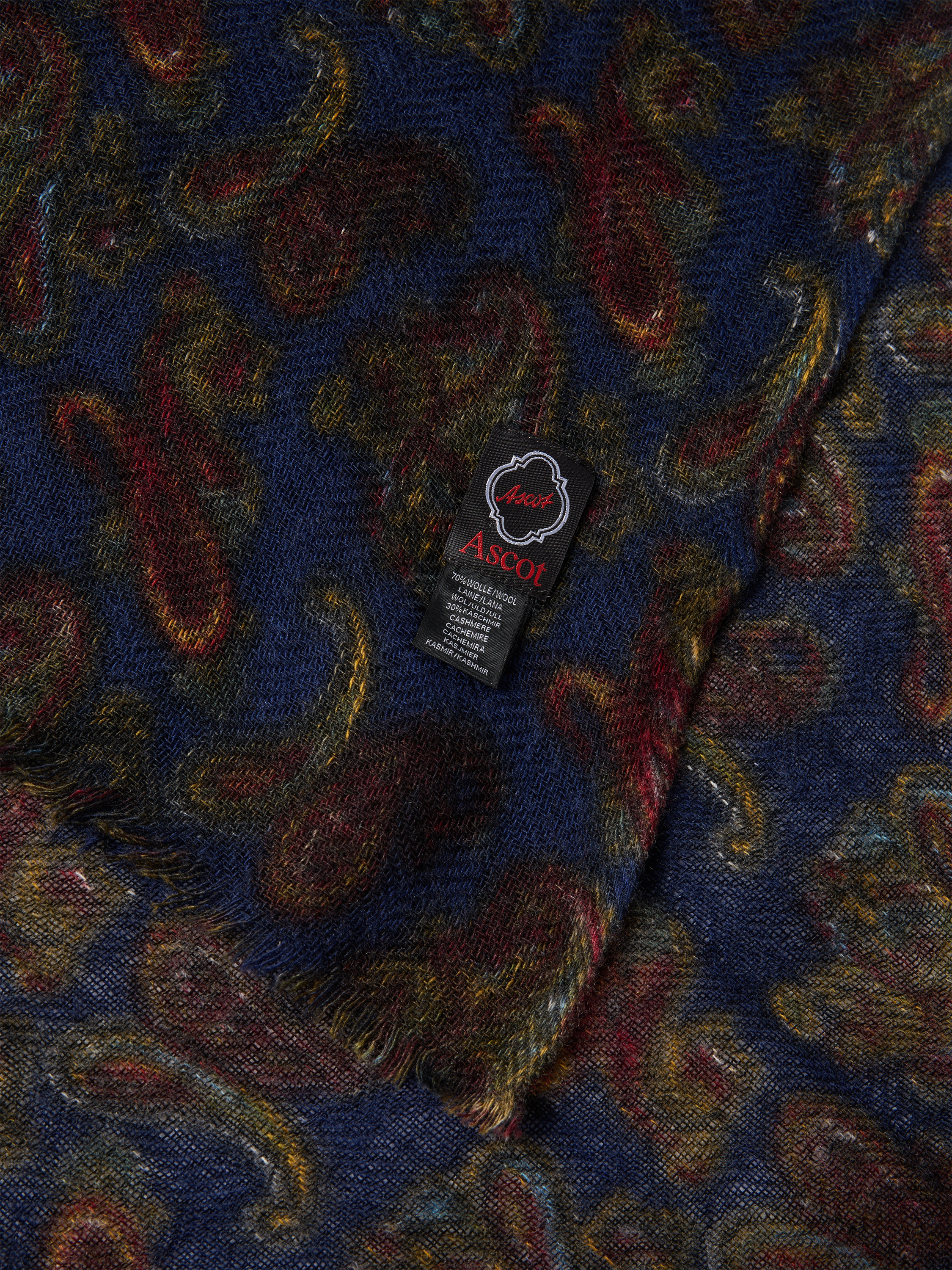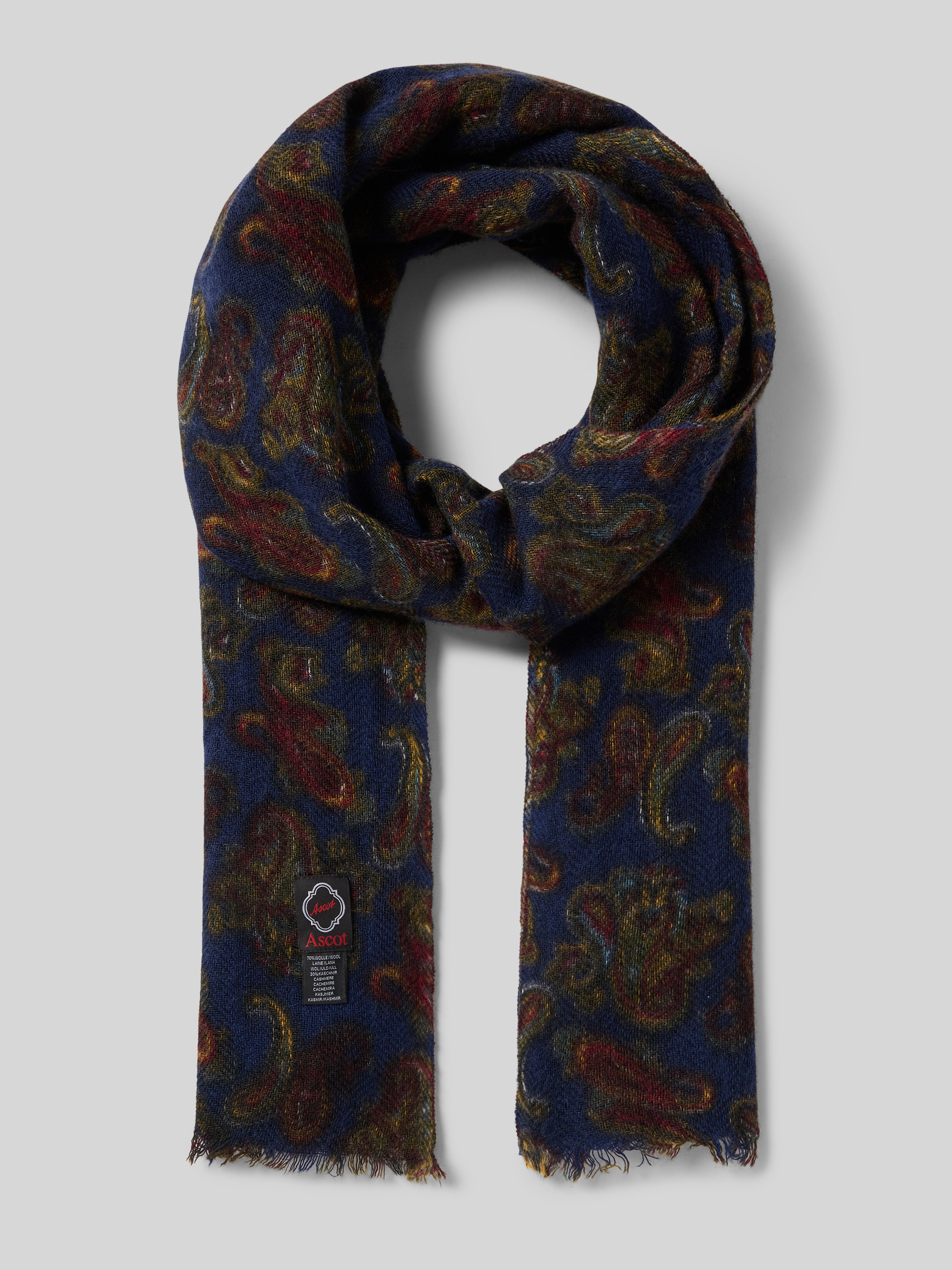 Der Herren Schal von Ascot fällt durch seine rechteckige Form und dezente Ausfransungen angenehm ins Auge. Dank des feinen Woll-Kaschmir-Mix fühlt sich der Schal weich an und liegt leicht auf der Haut, was an kühleren Tagen für ein angenehmes Tragegefühl sorgt. Ein kleines Label-Detail rundet das unaufgeregte Design ab.