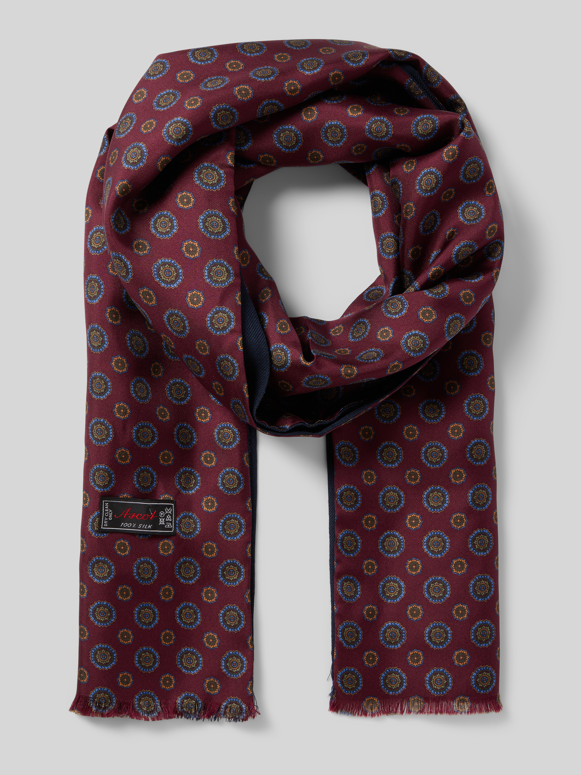 Der Herren Schal von Ascot besteht aus reiner Wolle und sorgt mit seiner rechteckigen Form für vielseitige Tragemöglichkeiten im Alltag. Durch das Label-Detail und die markanten Ausfransungen erhält das Accessoire eine dezente, individuelle Note. So hält man sich an kühlen Tagen angenehm warm und setzt einen feinen Akzent.