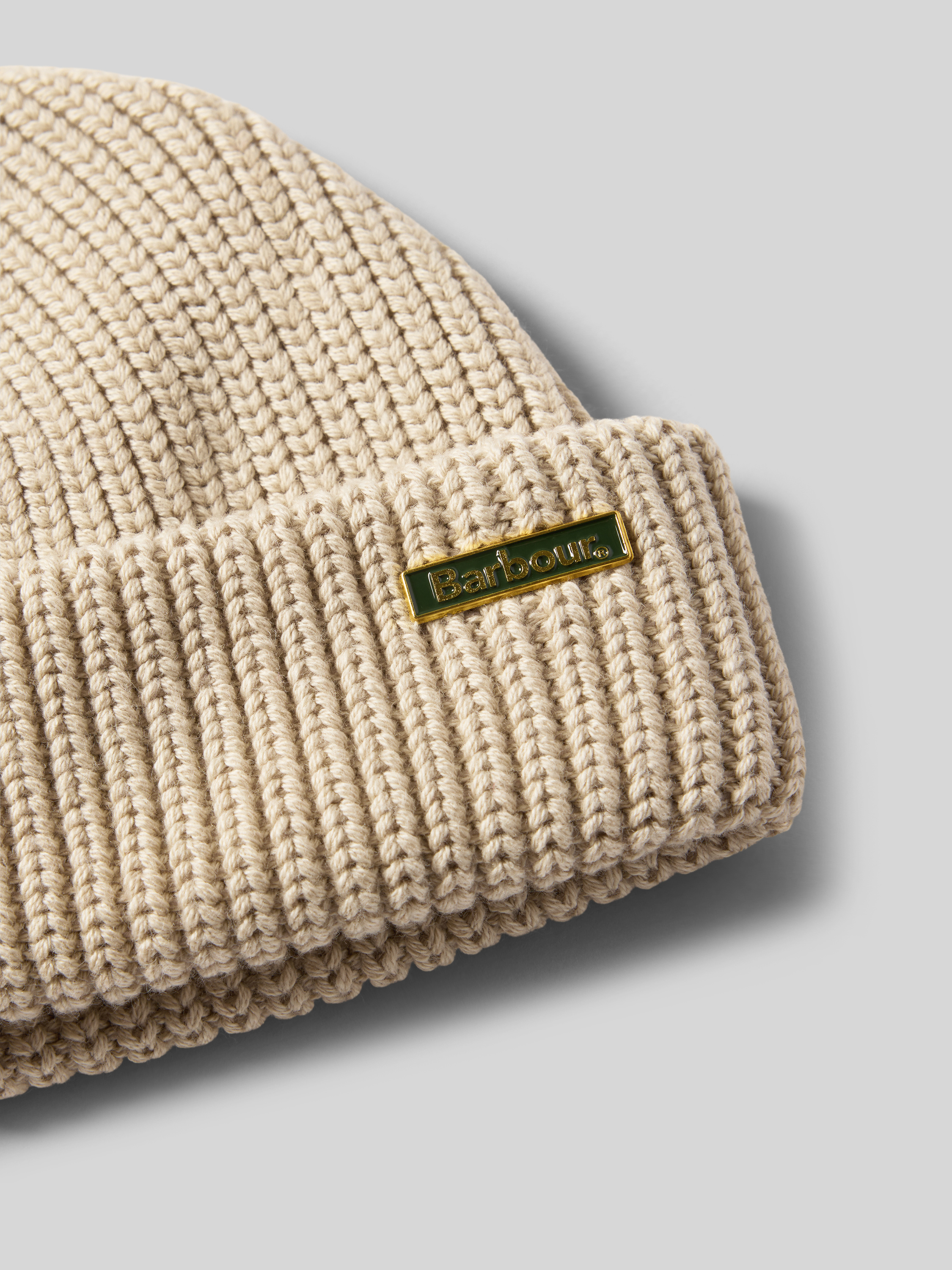 Die Beanie Mosely von Barbour fällt durch den breiten Umschlag und eine dezente Label-Applikation aus Metall auf. Der Baumwoll-Mix sorgt für angenehmes Tragegefühl, während die Rippstrickstruktur dem Look eine lässige Note verleiht. Vielseitig kombinierbar, eignet sie sich für unterschiedliche Gelegenheiten.