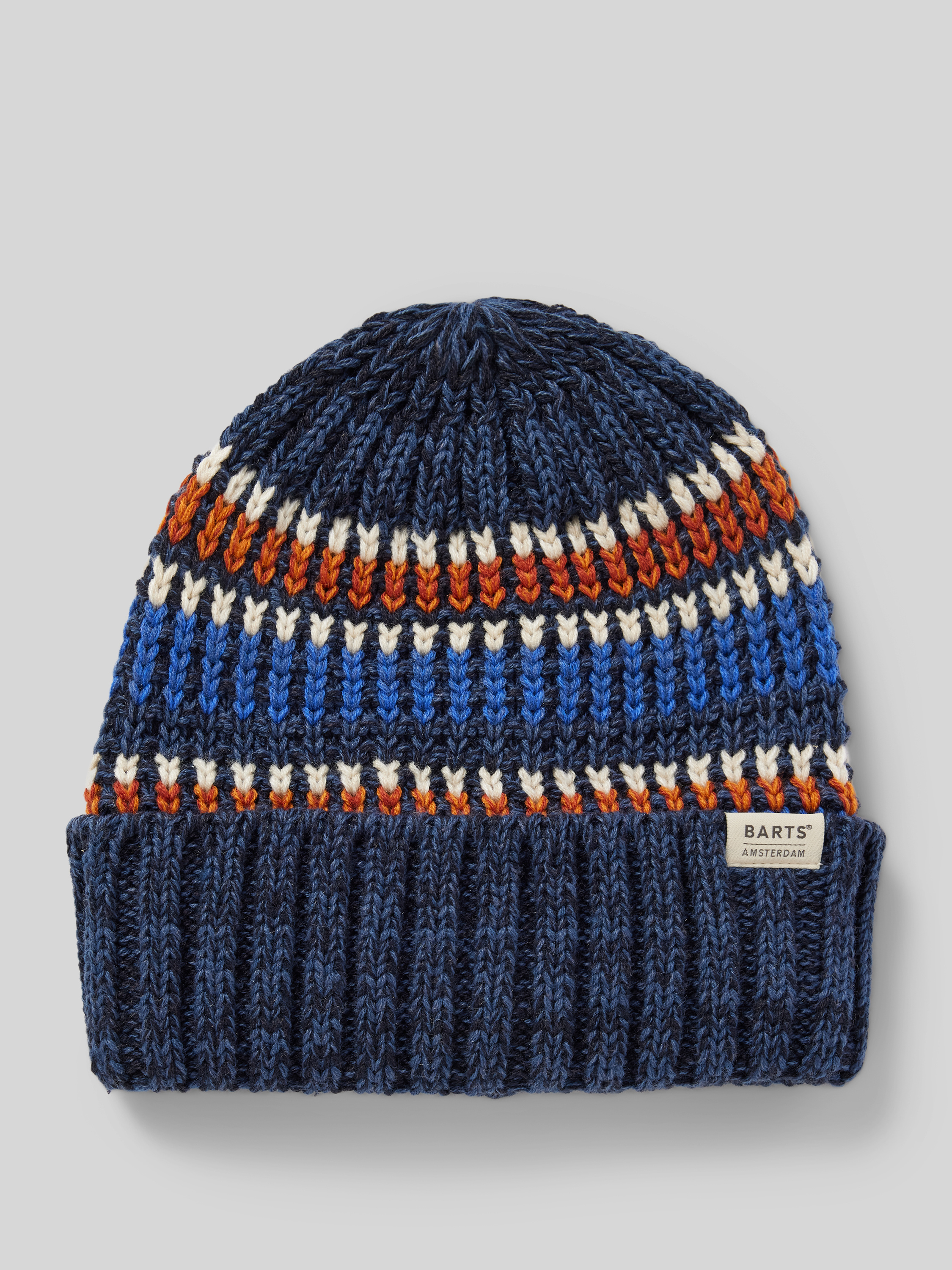 BartsBeanie mit Label-Detail Modell 'TRAVVIS' in dunkelblau