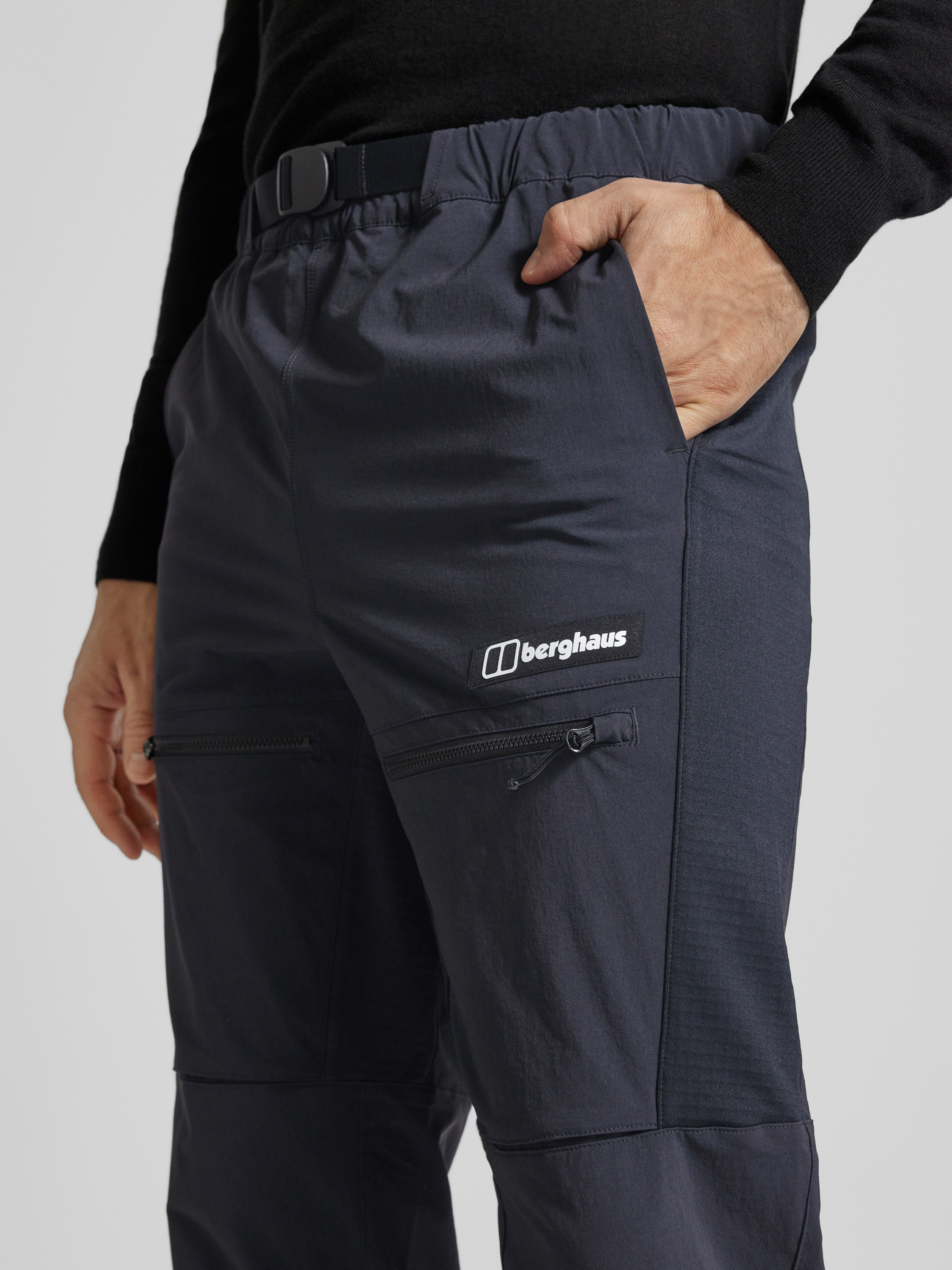 Die Herren Slim Fit Hose Elswick von Berghaus sitzt körpernah und unterstreicht eine moderne Silhouette, ohne die Bewegungsfreiheit einzuschränken. Der flexible Bund mit Klickverschluss sorgt für angenehmen Tragekomfort, während dezente Ziernähte und praktische Taschen den Alltag erleichtern. Ein dezenter Label-Patch rundet das Gesamtbild ab.