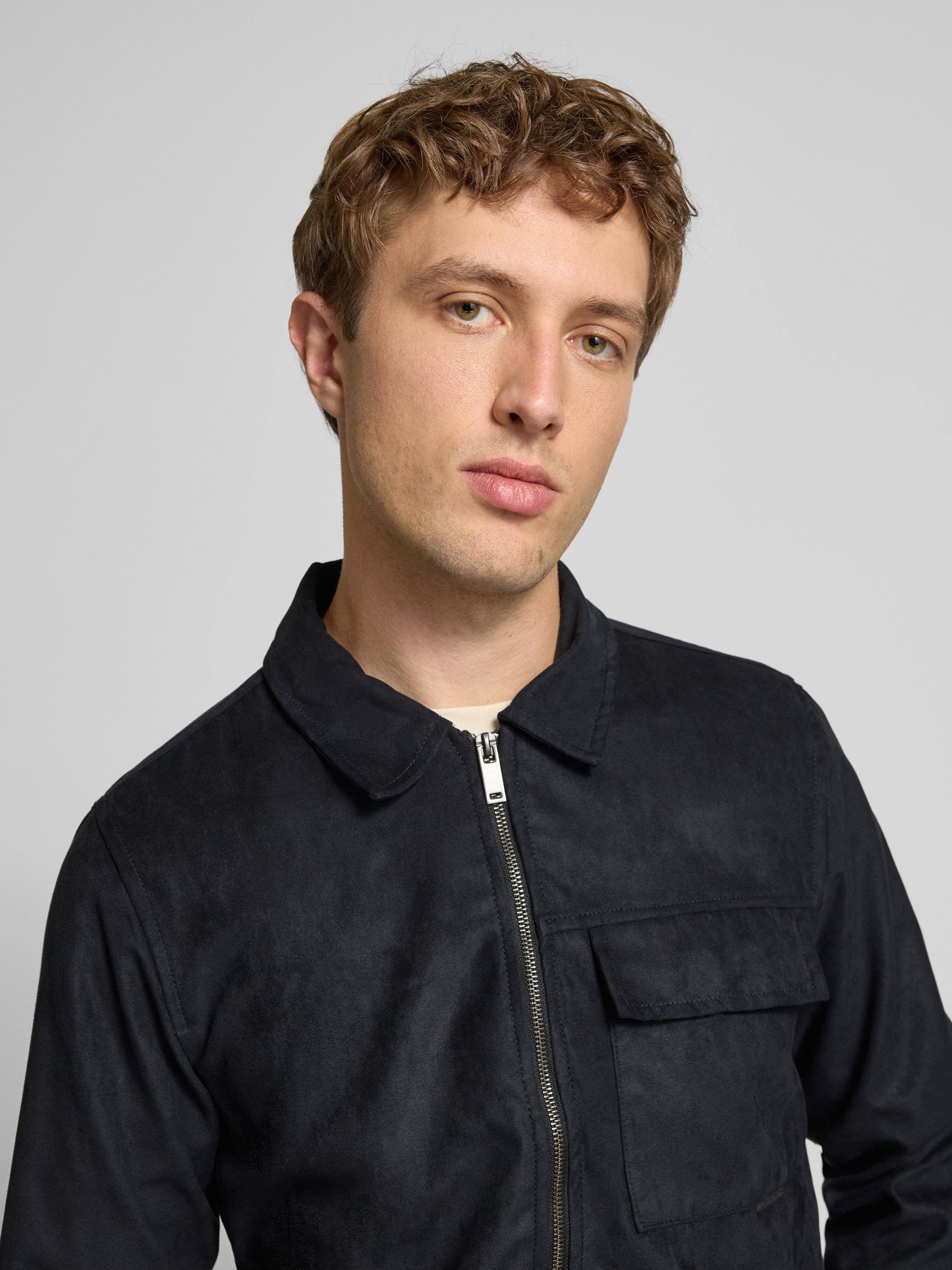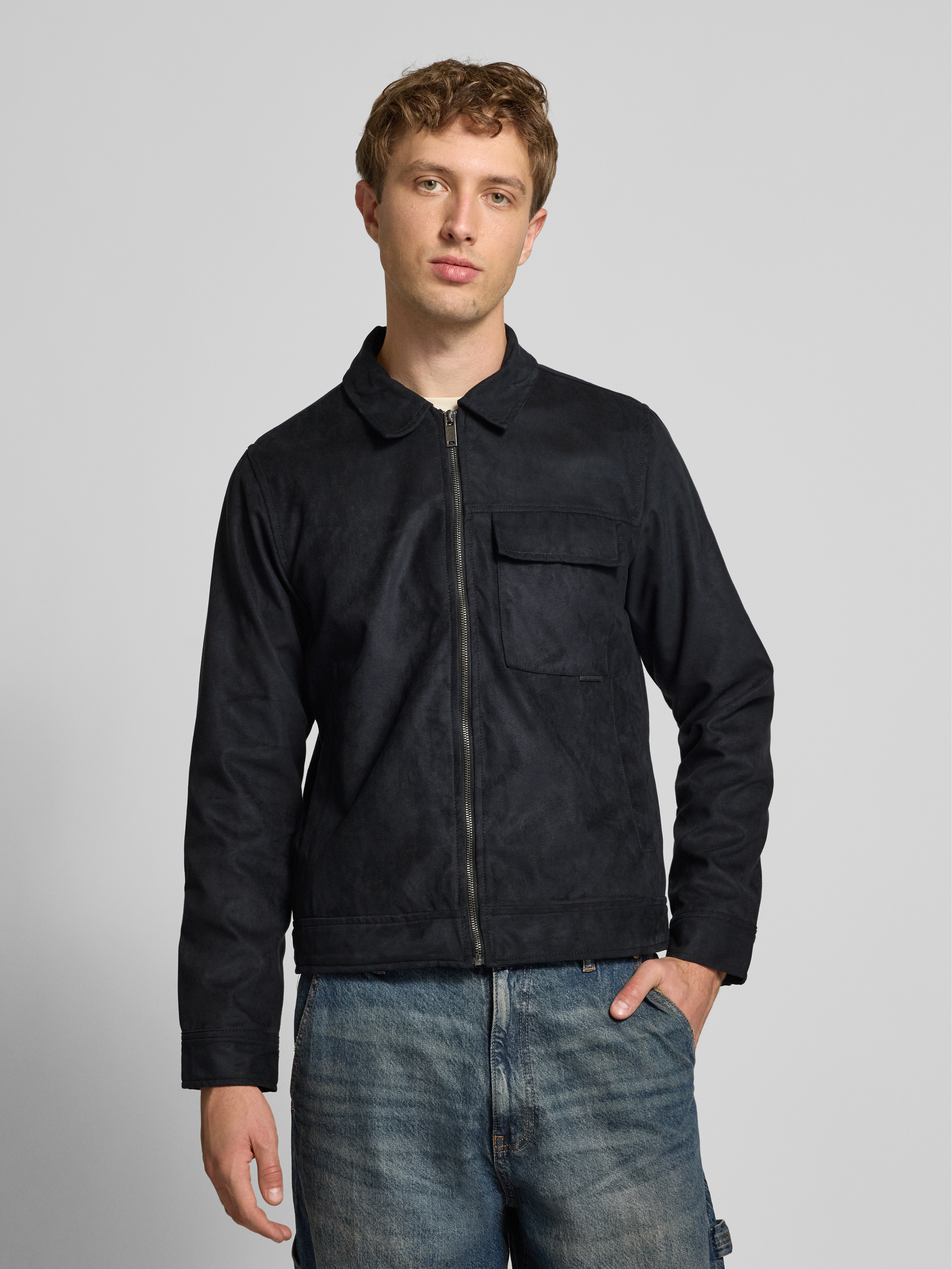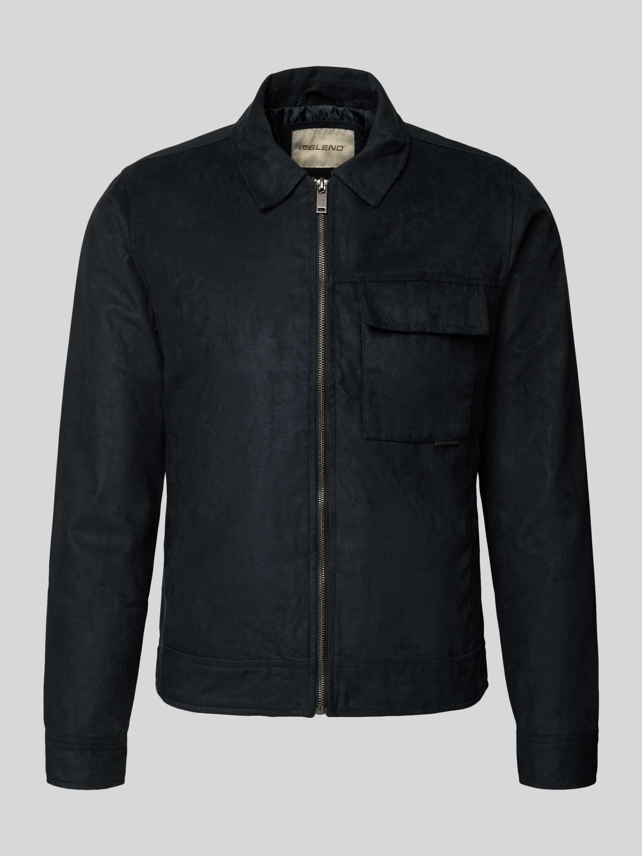 Die Herrenjacke von Blend präsentiert sich im Modell 'HELGER' mit geradem Schnitt und Umlegekragen. Die Leder-Optik sorgt für einen modernen Akzent, während eine praktische Brusttasche und dezente Label-Details den Look ergänzen. So eignet sich dieses Stück für vielseitige Outfits im Alltag.