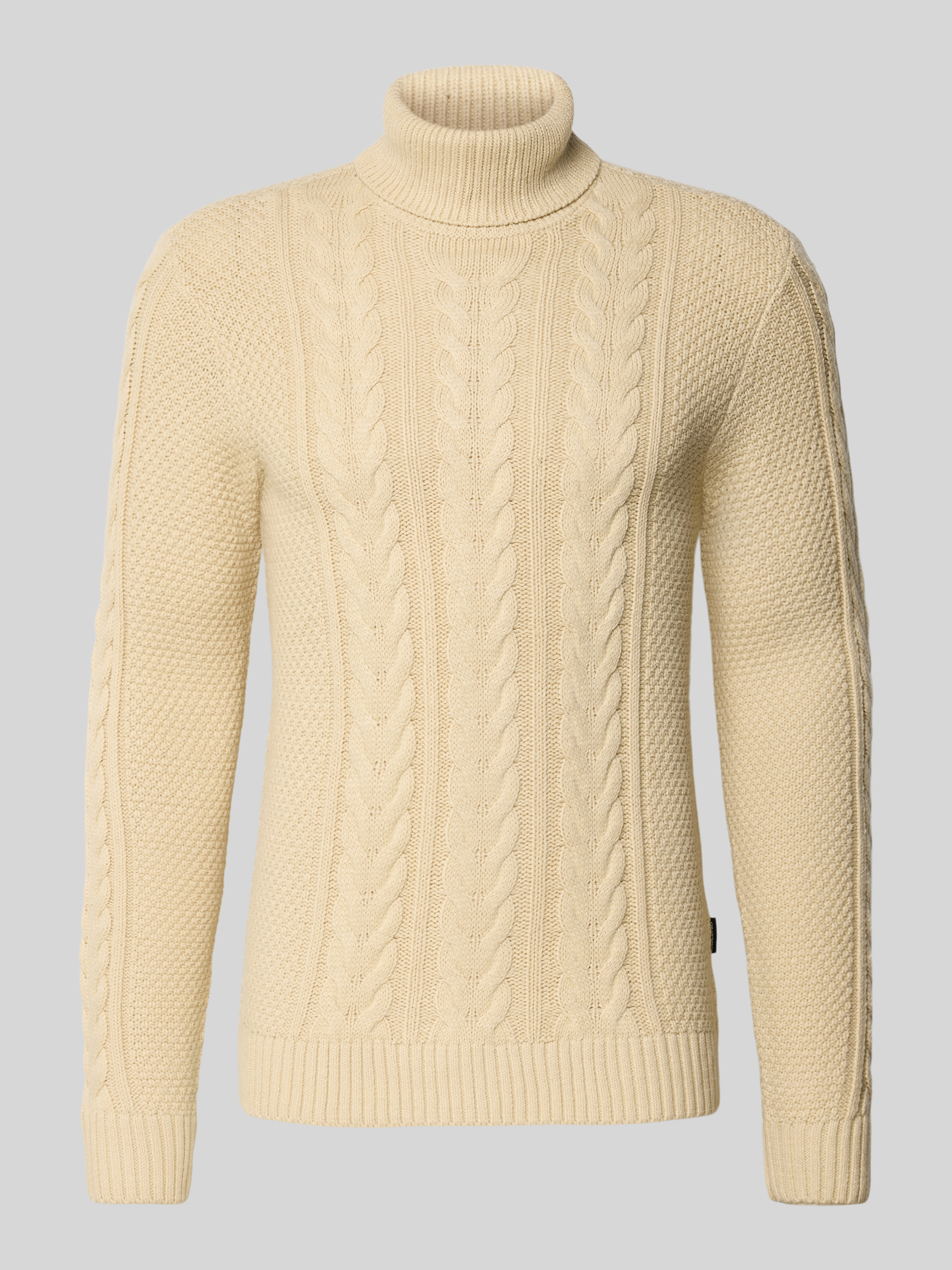 Der Herren Strickpullover von Blend im Modell 'BASIM' zeigt sich in einem modernen Slim Fit und schmiegt sich angenehm an den Körper an. Durch den Baumwoll-Mix entsteht ein angenehmes Tragegefühl, während der Rollkragen den Hals sanft umschließt. Dezente Details wie gerippte Abschlüsse und das Label-Detail runden das Gesamtbild ab.