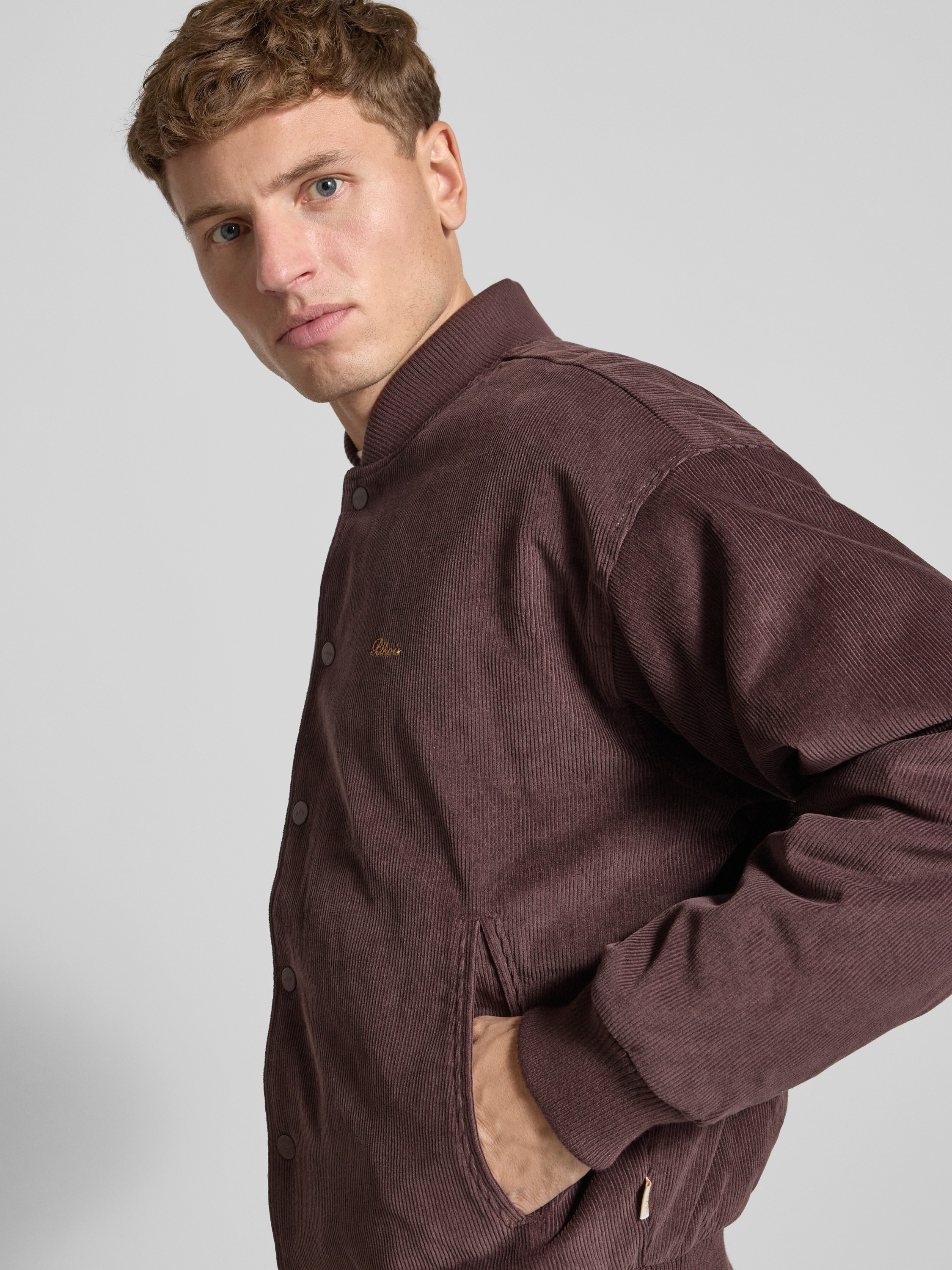 Die Herren Cordjacke von BLKVIS fällt durch ihren lockeren Schnitt und den markanten Stehkragen ins Auge. Dank reiner Baumwolle trägt sie sich angenehm und unkompliziert im Alltag. Dezentes Logo-Stitching sowie praktische Eingrifftaschen runden den entspannten Stil ab.