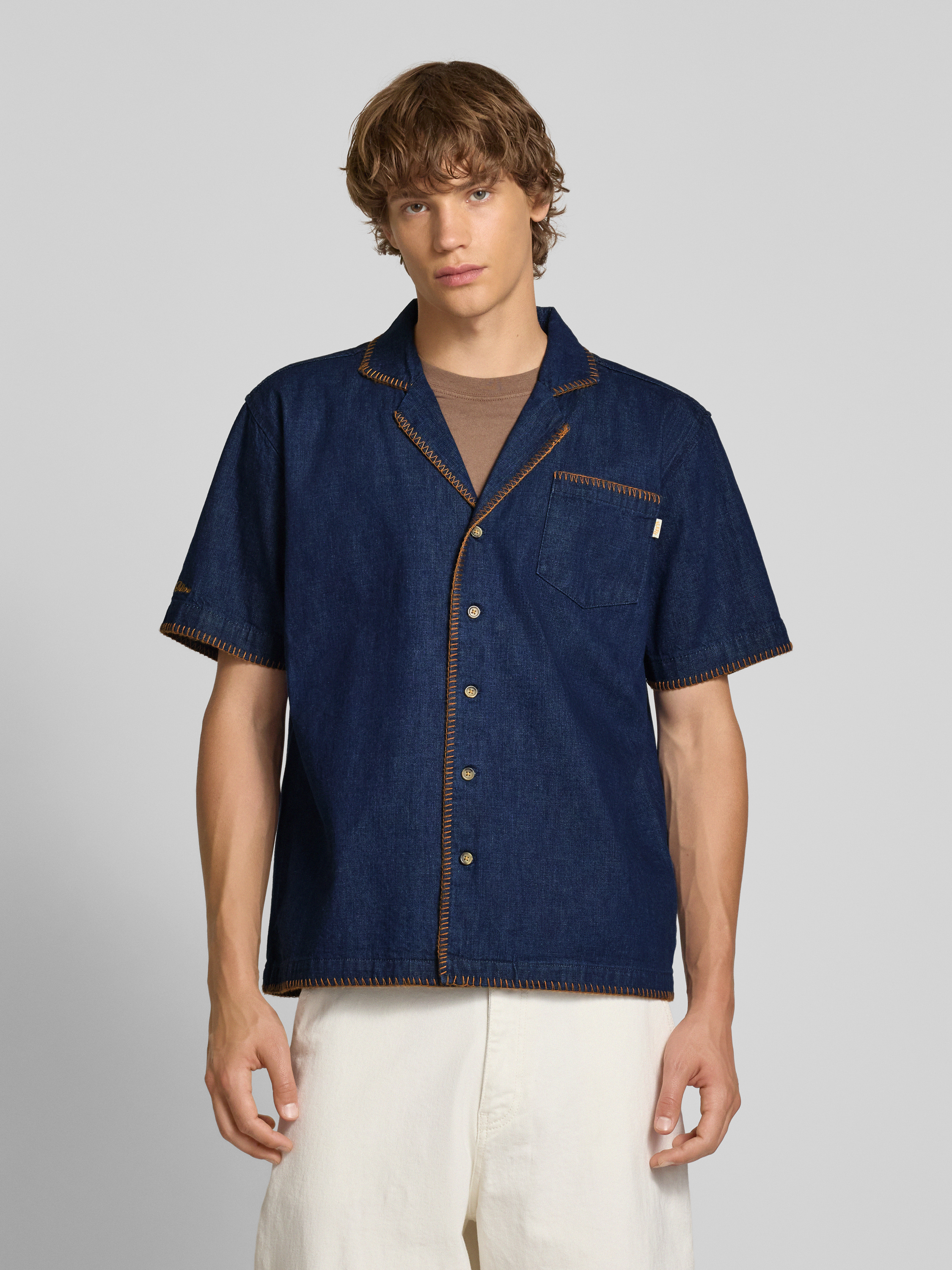 Das Herren Jeanshemd von BLKVIS zeigt sich im entspannten Relaxed Fit und liegt angenehm dank reiner Baumwolle auf der Haut. Durch den Resortkragen und die kurze Ärmellänge wirkt der Look lässig, während eine Brusttasche praktische Details für den Alltag ergänzt.