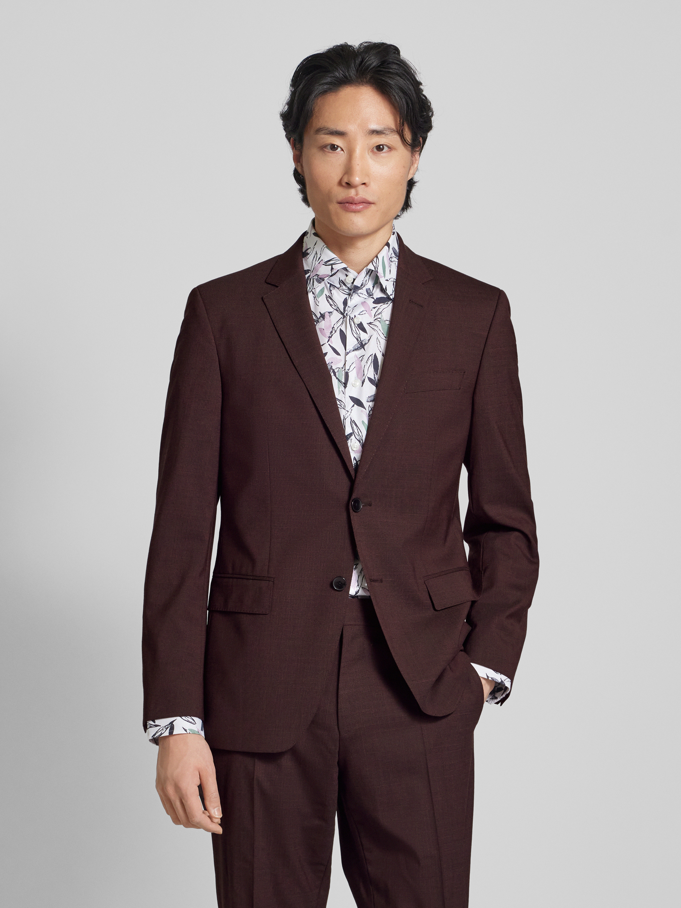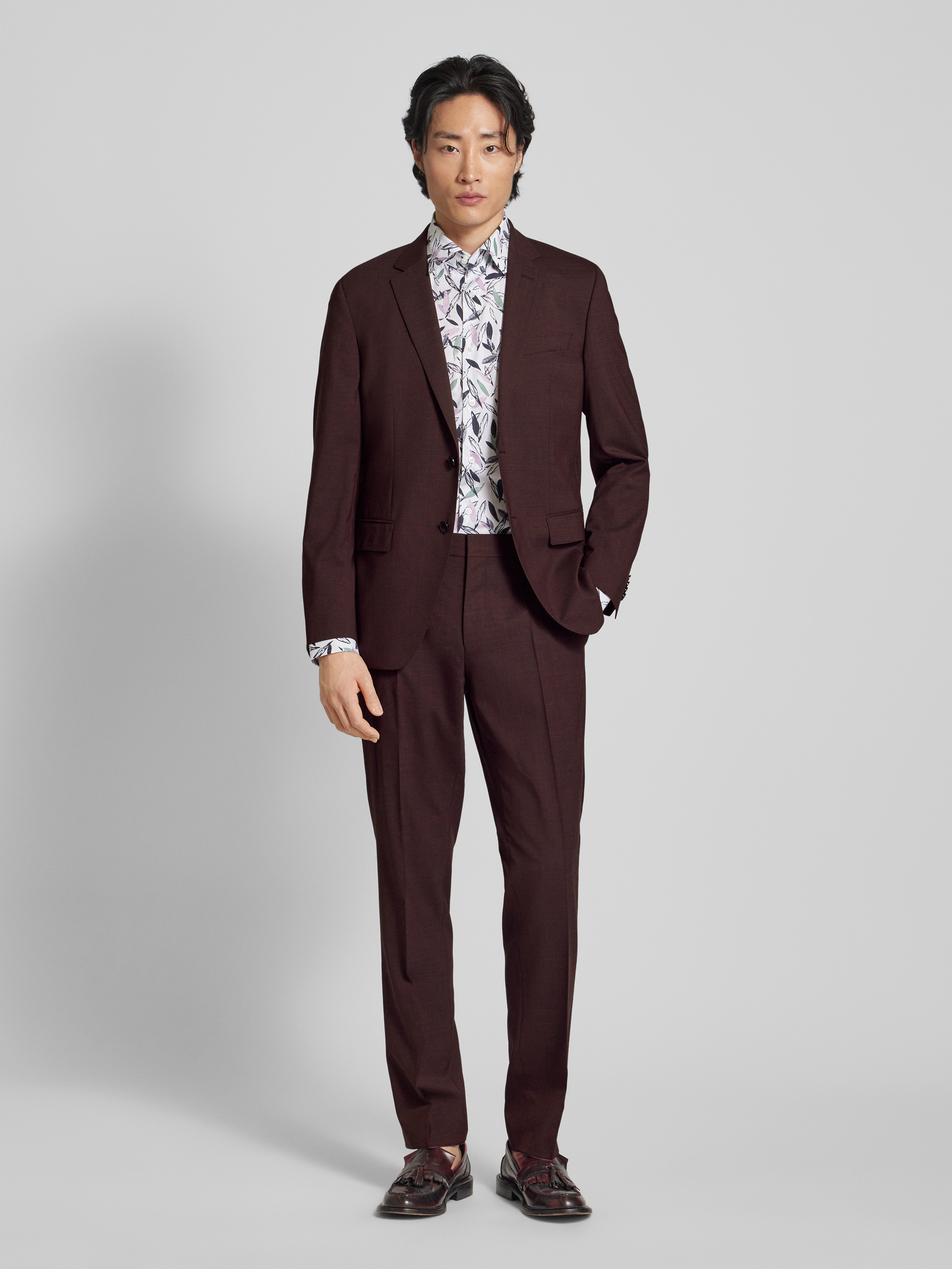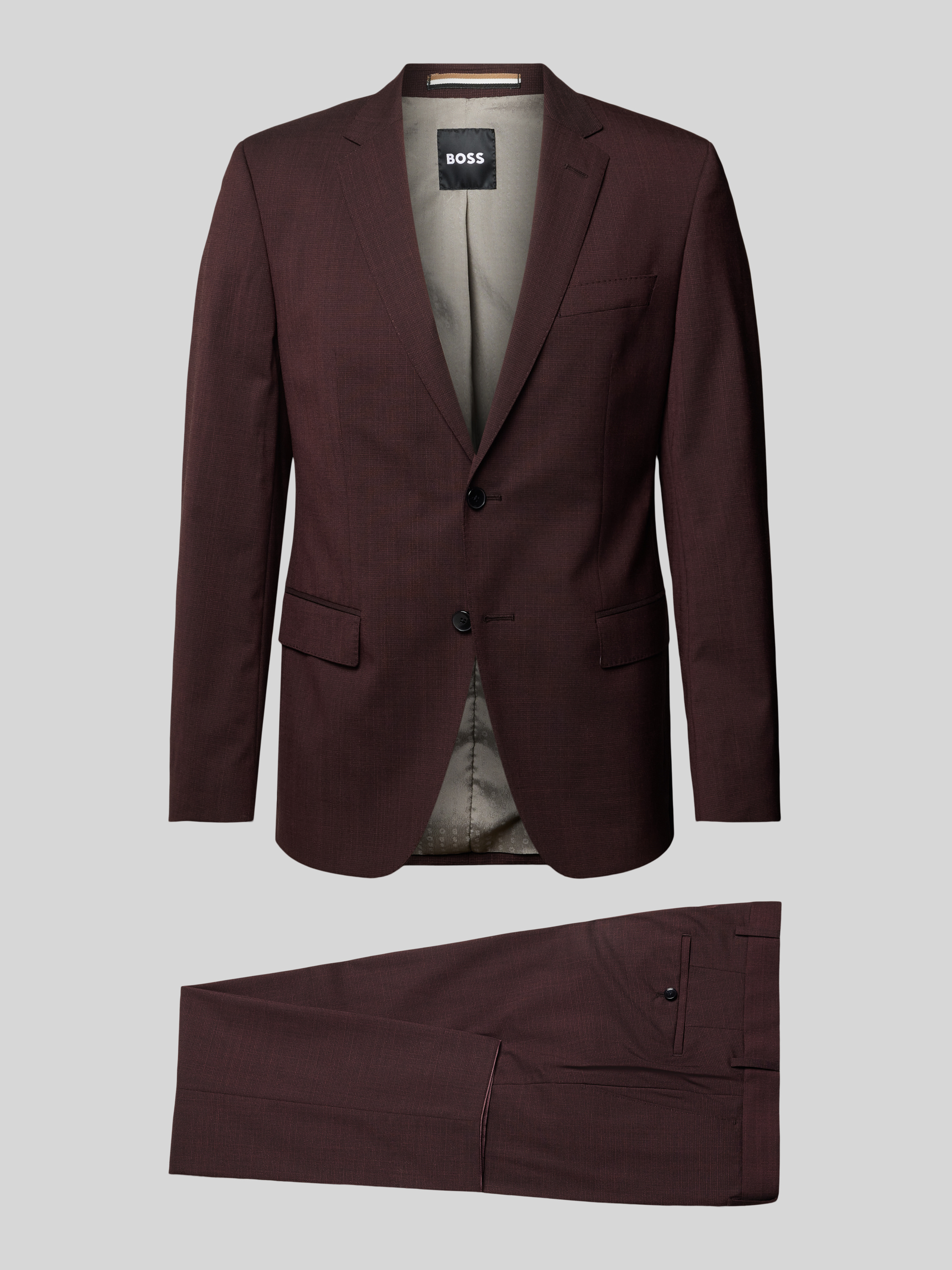 Der elegante Anzug von BOSS BLACK, gefertigt in einem Material-Mix mit Woll-Anteil, kombiniert einen klassischen Regular Fit mit einem stilvollen Strukturmuster. Der Reverskragen verleiht dem Ensemble eine zeitlose Note, während praktische Taschen Funktionalität im Alltag garantieren. Ideal für verschiedenste Anlässe geeignet.