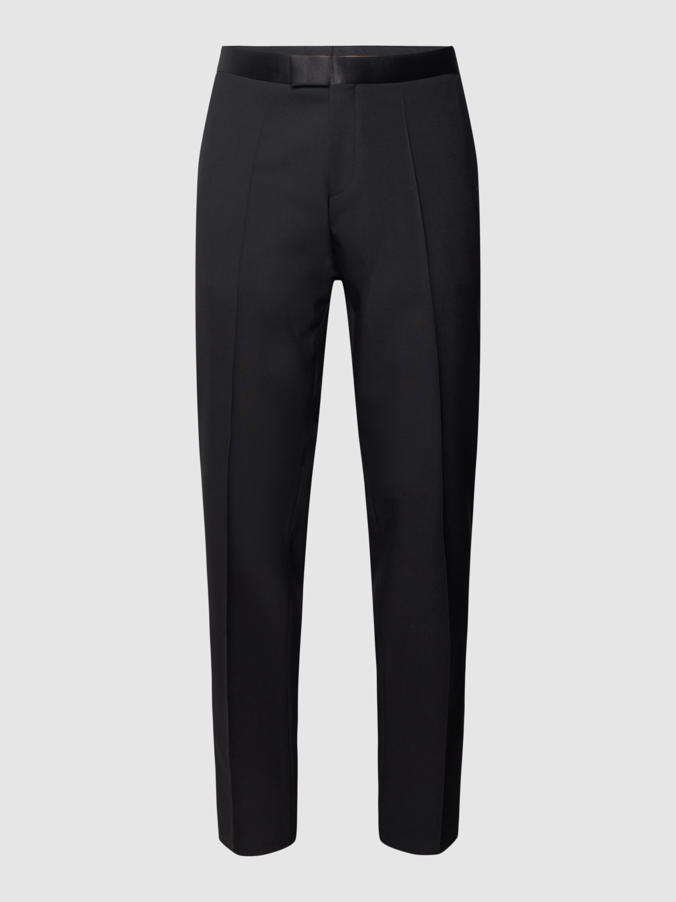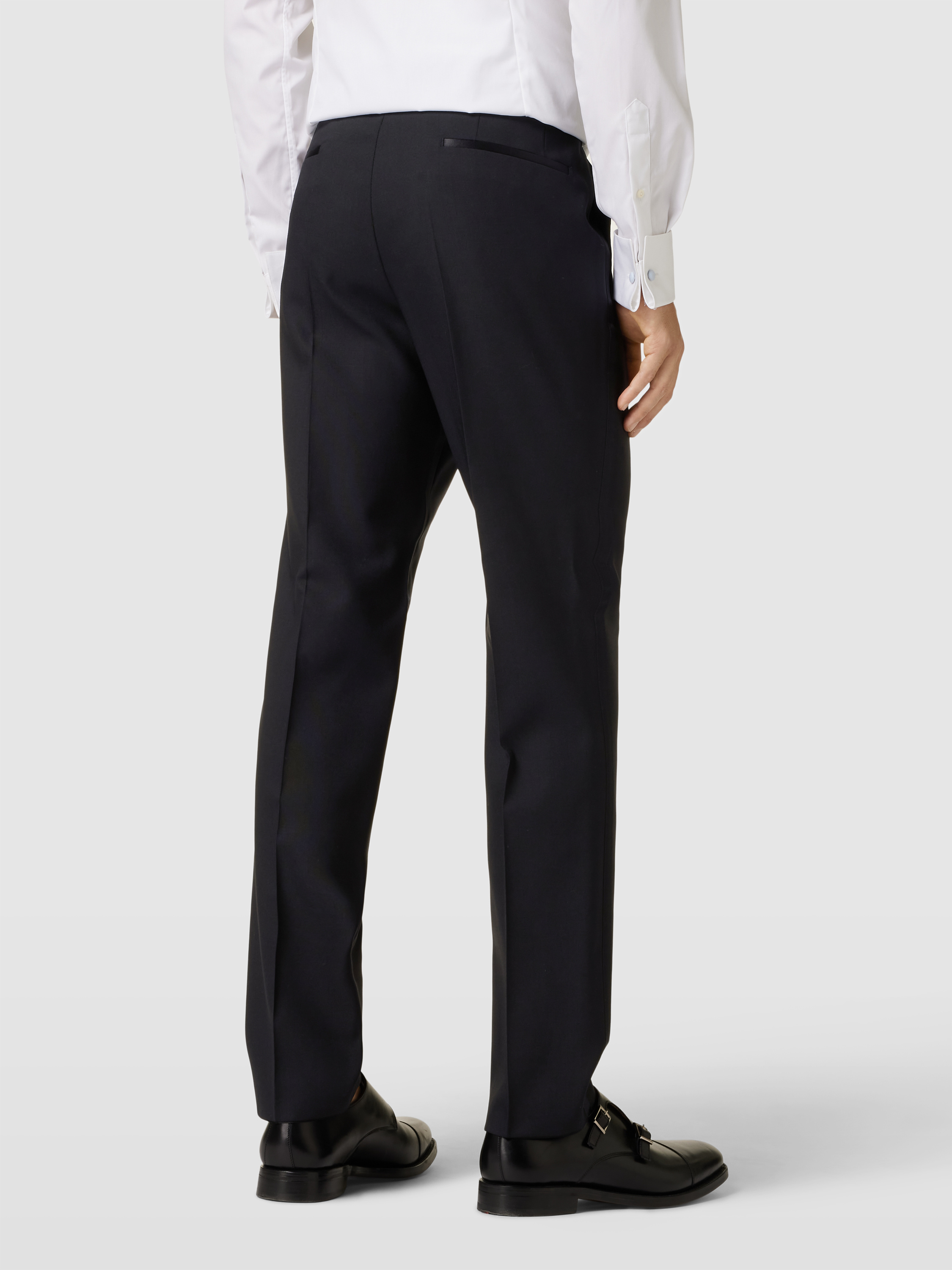 Die Anzughose 'Genius' von BOSS kombiniert einen eleganten geraden Schnitt mit der edlen Qualität eines Schurwoll-Mixes, der für angenehmen Tragekomfort sorgt. Die subtilen Galonstreifen verleihen der Hose eine stilvolle Note, während die praktischen Eingrifftaschen funktionale Details bieten. Ideal für formelle Anlässe und Business-Umgebungen.
