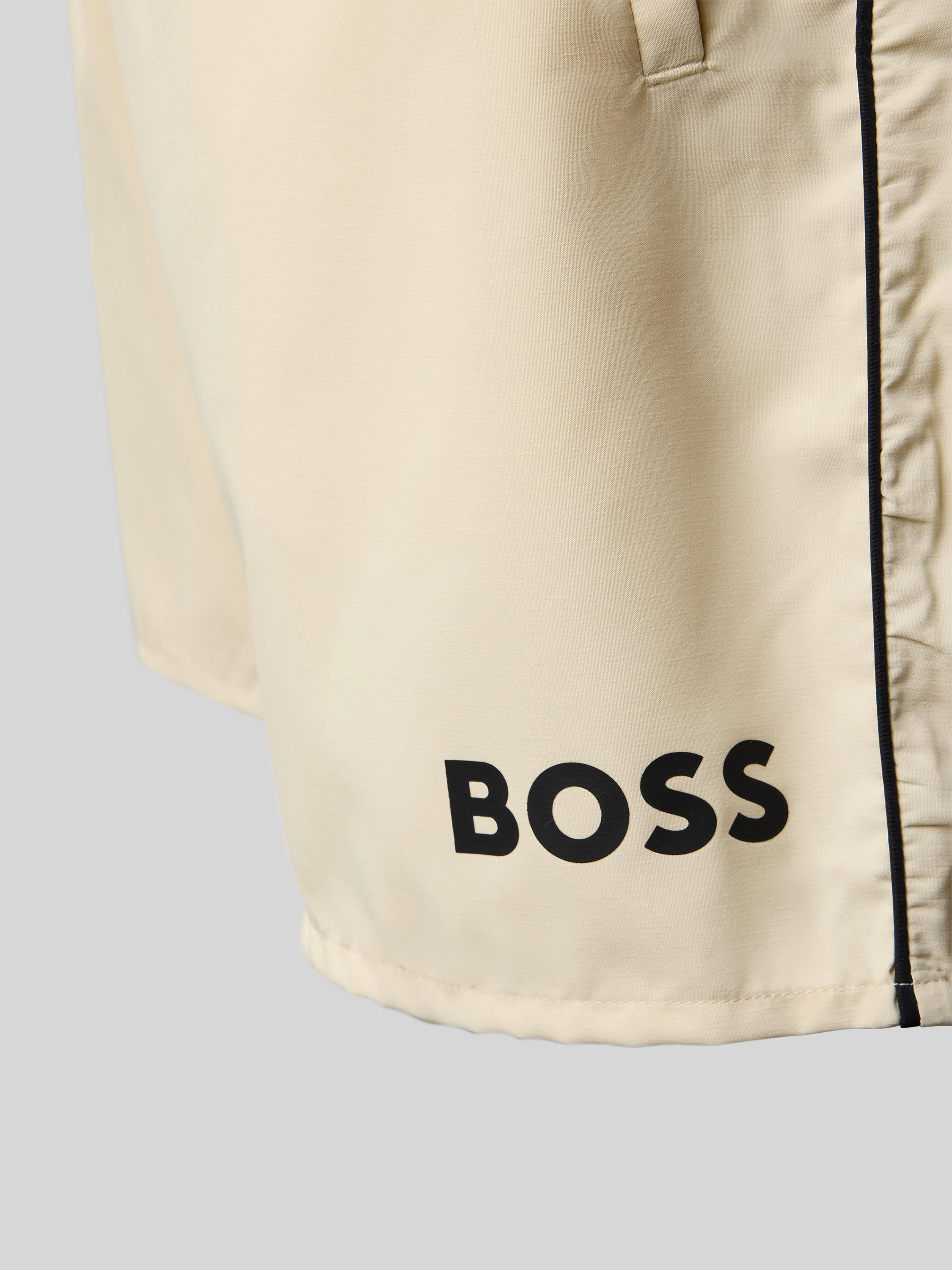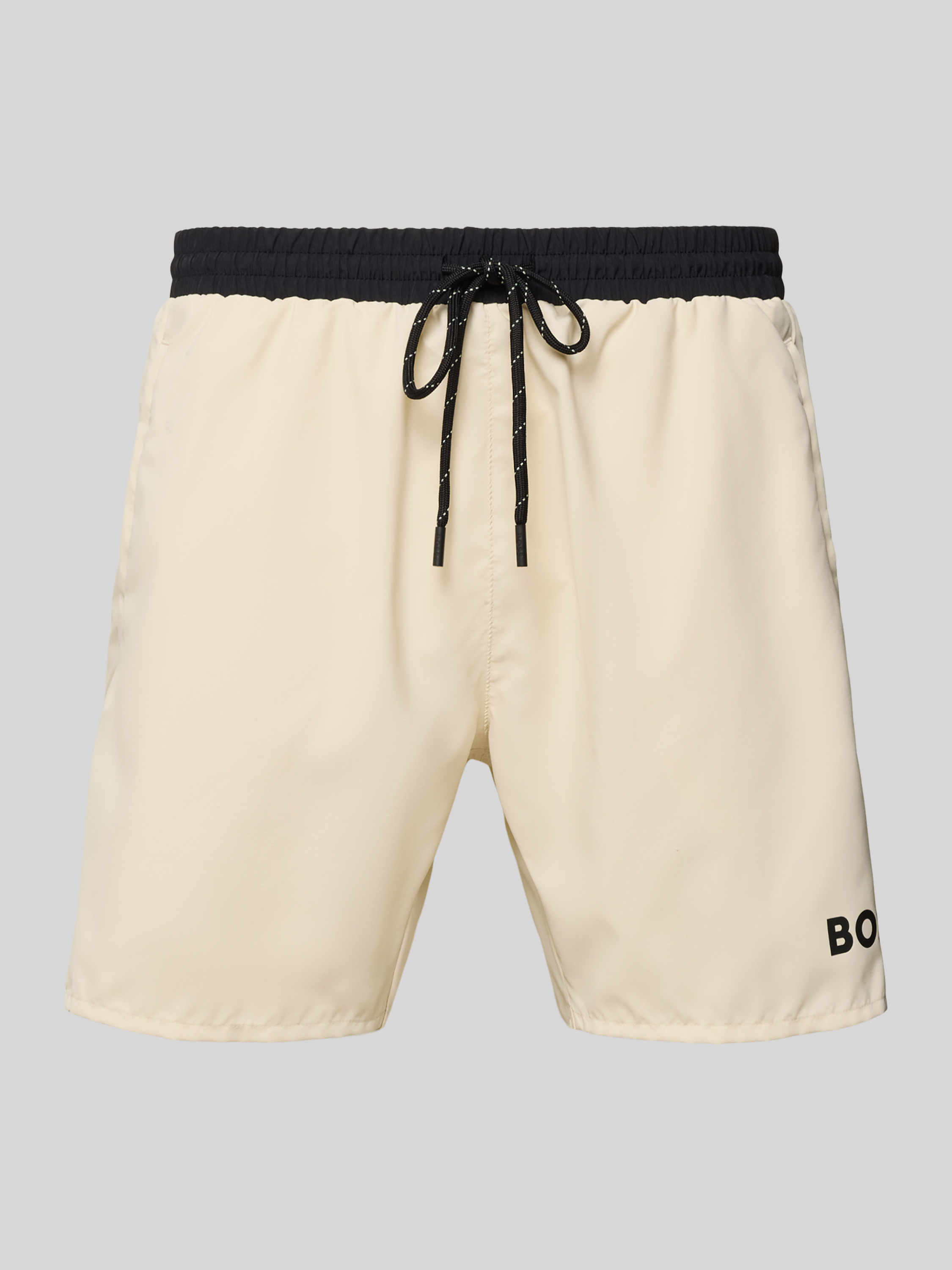 Die Herren Badehose Starfish von BOSS präsentiert sich in unifarbener Optik mit markanter Paspelnaht in Kontrastfarbe. Durch die Verarbeitung aus leichter Popeline fühlt sie sich angenehm auf der Haut an und trocknet zügig. Praktische seitliche Eingrifftaschen und eine Gesäßtasche ergänzen das funktionale Design.