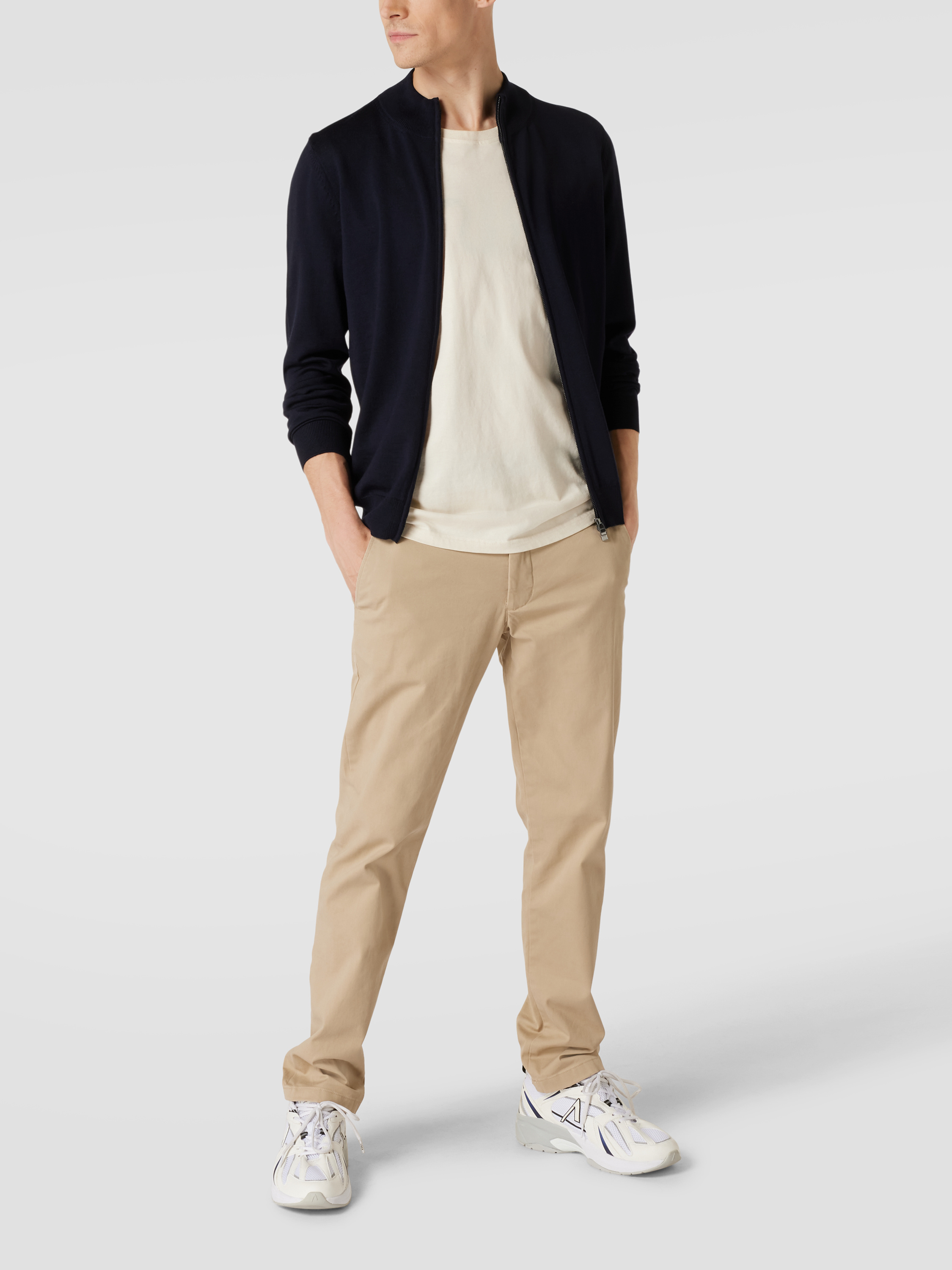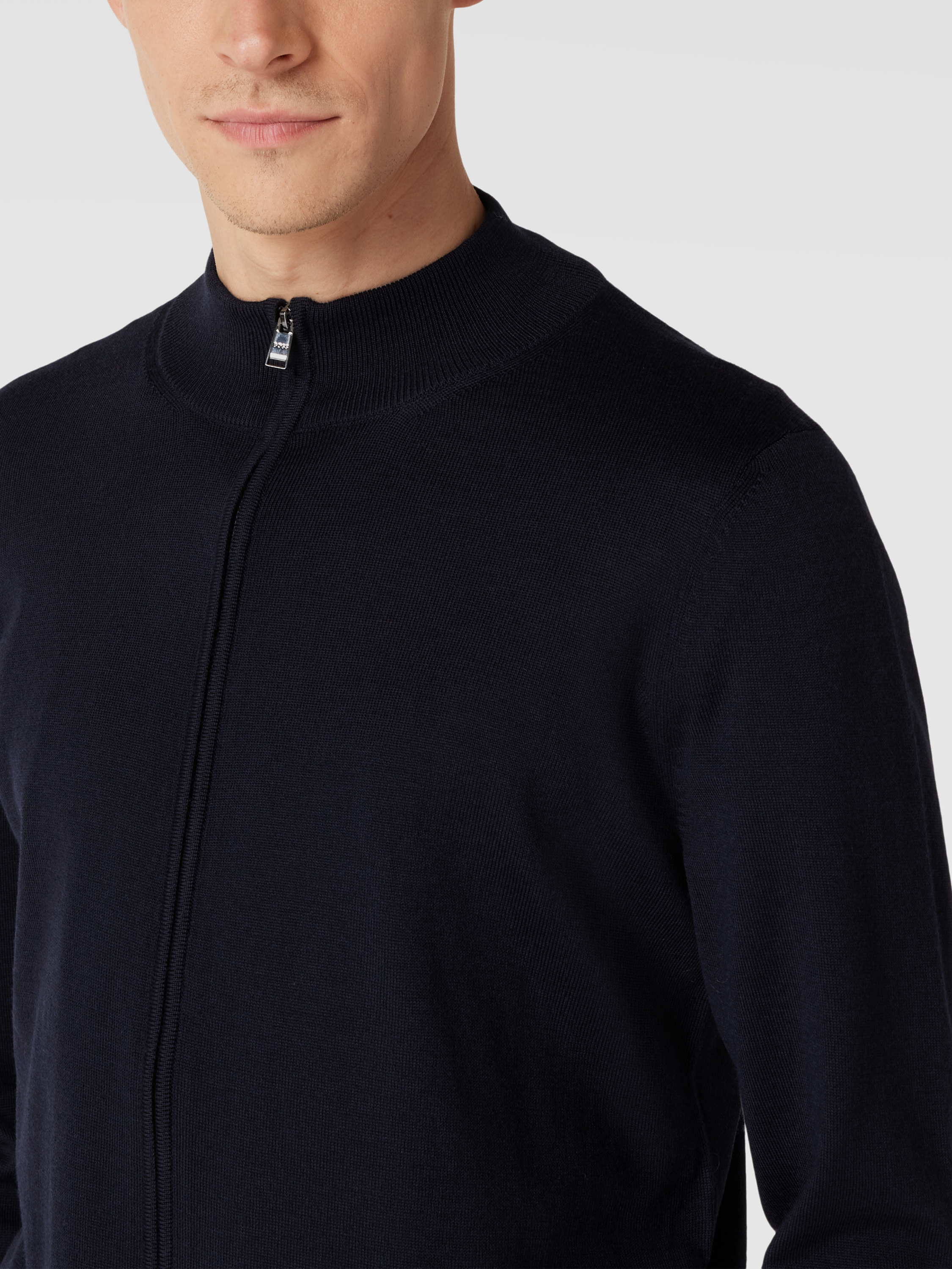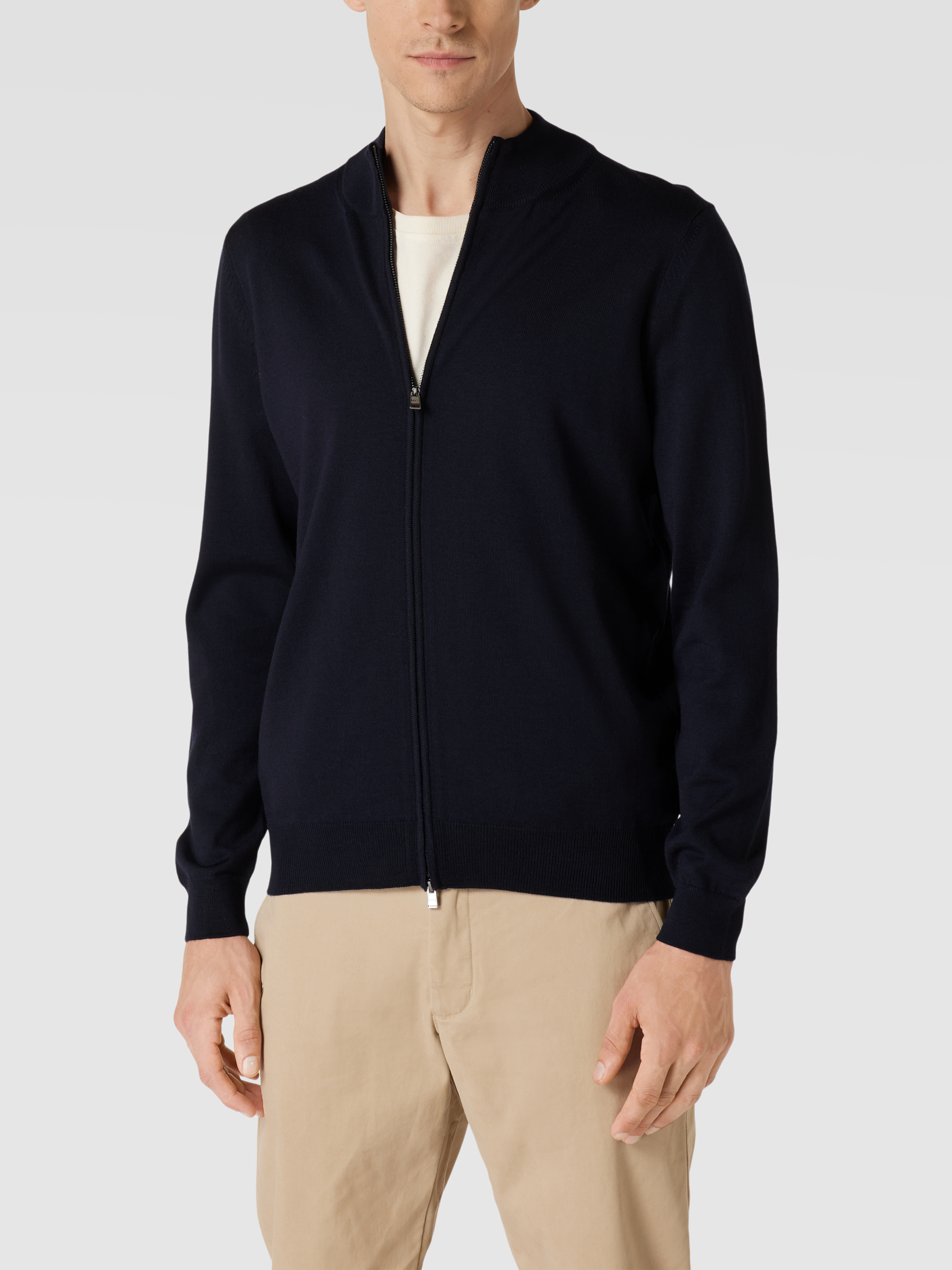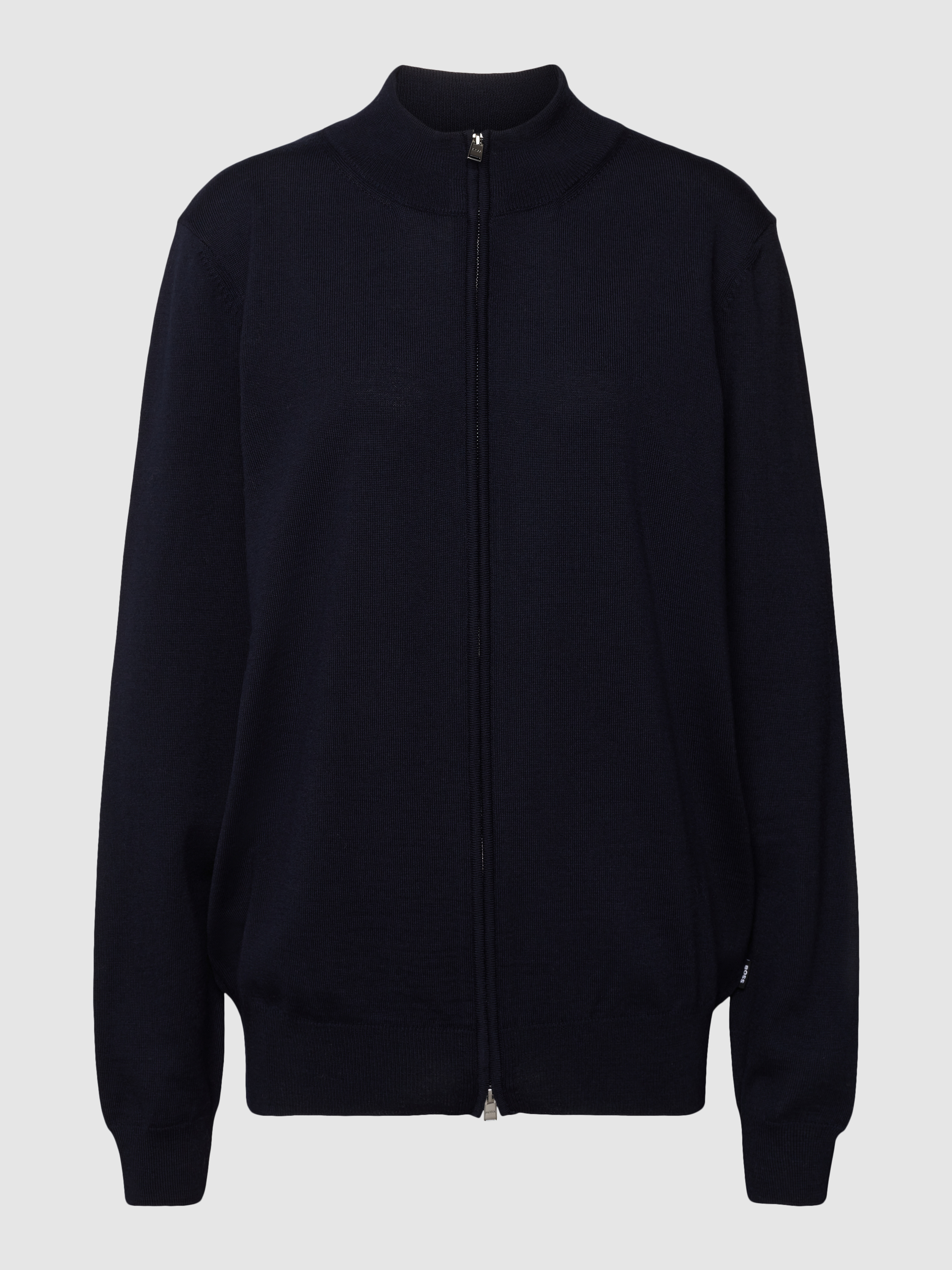 Der Cardigan von BOSS ist aus reiner Schurwolle gefertigt und gerade geschnitten. Er zeigt sich im unifarbenen Design mit Label-Detail und durchgehendem Reißverschluss.