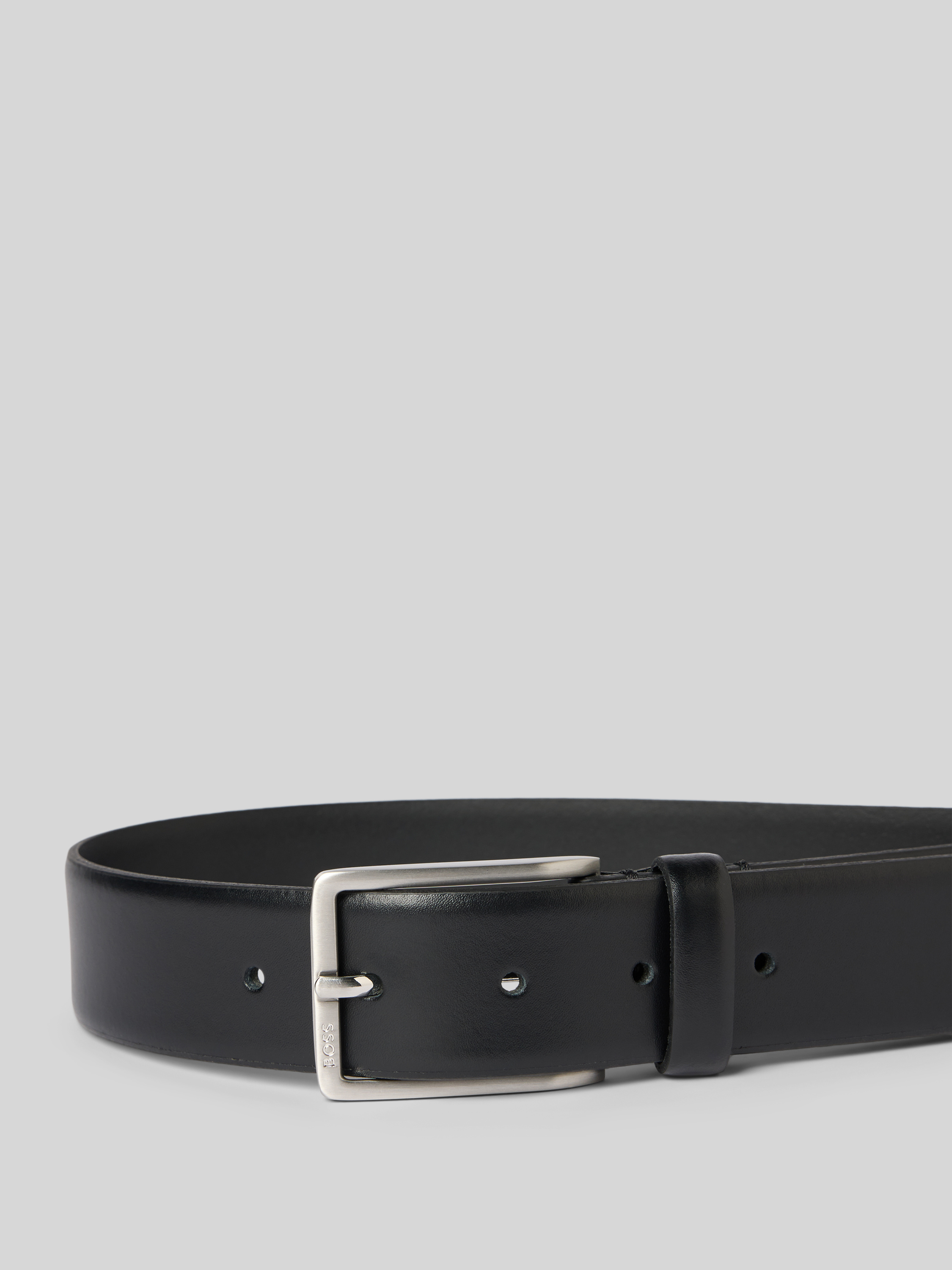 Der Herrengürtel von BOSS, Modell 'Erman', aus hochwertigem Leder präsentiert sich in unifarbener Optik und passt sich durch seine klassische Form vielseitig an. Glattleder sorgt für einen angenehmen Griff und hinterlässt einen gepflegten Eindruck. Eine dezente Label-Prägung rundet das Design zurückhaltend ab.