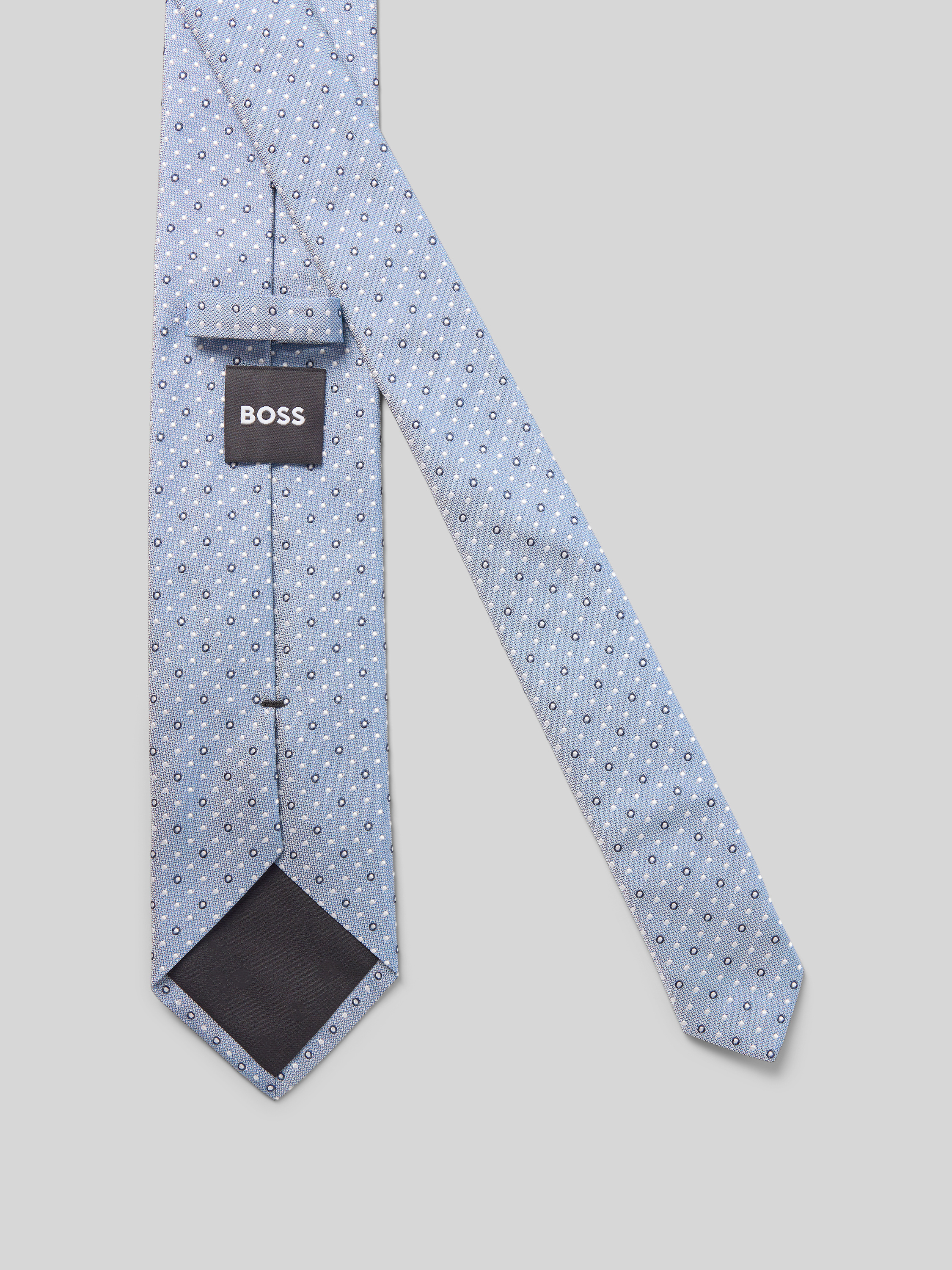 Die Herren Krawatte von BOSS kombiniert einen feinen Seiden-Mix mit einem dezenten Allover-Muster, das vielfältige Kombinationsmöglichkeiten eröffnet. Durch die glatte Oberfläche wirkt sie angenehm edel, während der klassische Schnitt den Hals angenehm umschließt. So ergänzt sie formelle Outfits um einen stilvollen Akzent.