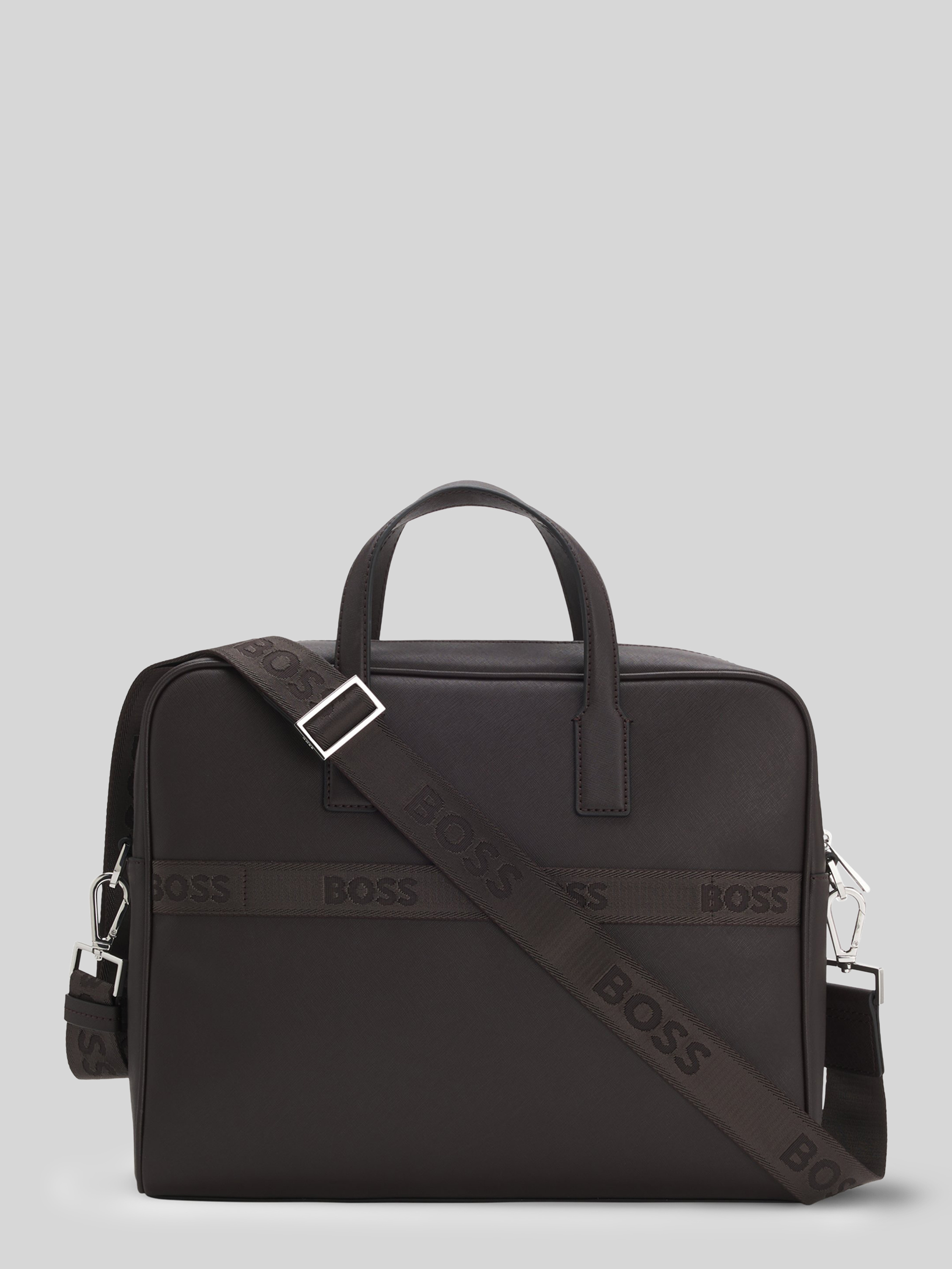Die Laptoptasche von BOSS, Modell Zair, präsentiert sich im klaren, unifarbenen Look und hält den Alltag durchdacht strukturiert. Mit ihrem festen Griff und dem abnehmbaren Schulterriemen lässt sich der Stil flexibel anpassen. Das funktionale Innenleben sorgt dafür, dass Unterlagen und Technik übersichtlich untergebracht sind.