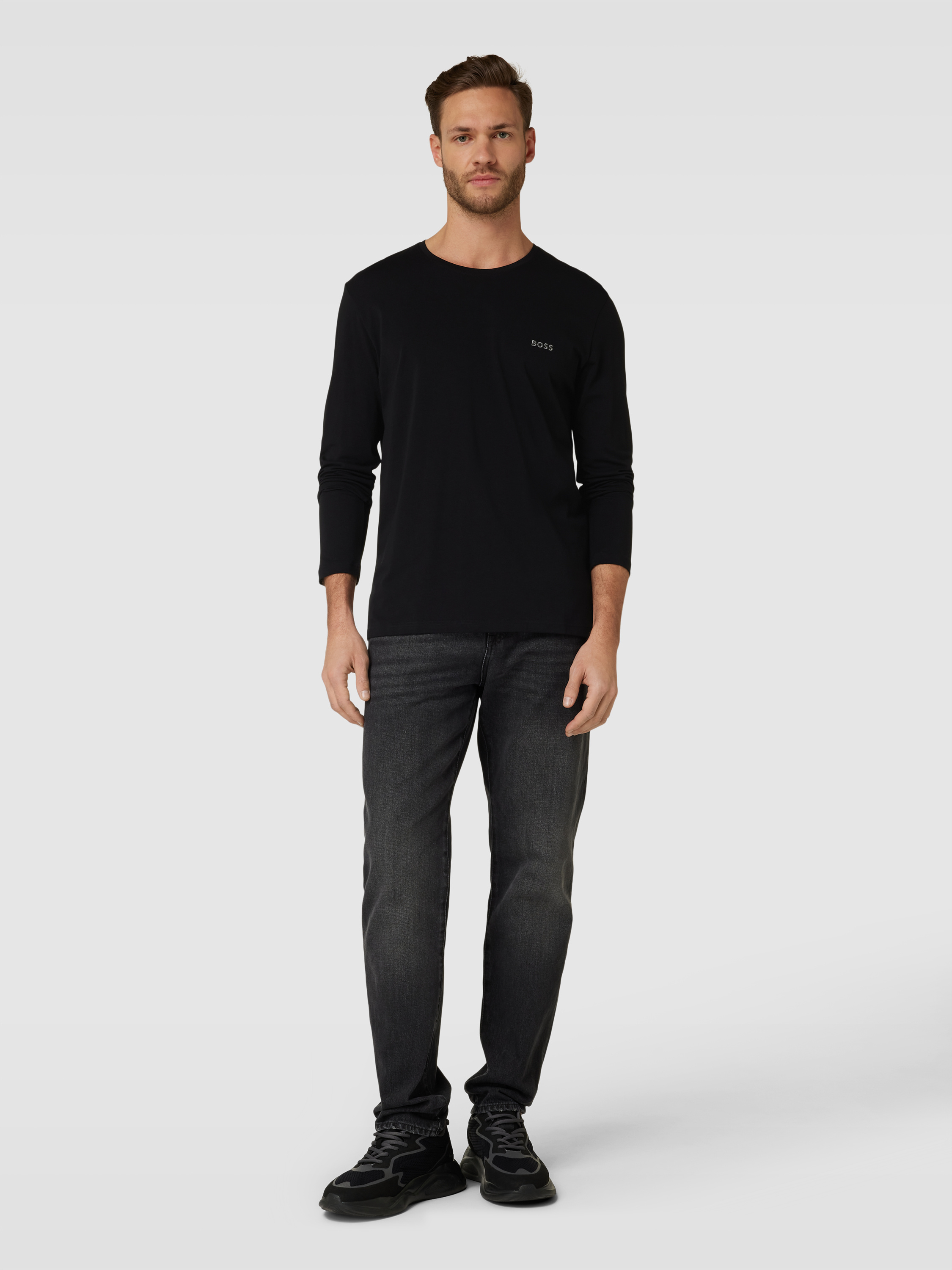 Das Herren Longsleeve von BOSS, Modell 'Mix&Match', kombiniert einen Baumwoll-Mix mit Stretch-Anteil und bietet so angenehmen Tragekomfort. Der gerade Schnitt und das unifarbene Design sorgen für vielseitige Einsatzmöglichkeiten. Ein dezentes Label-Stitching und der Rundhalsausschnitt runden das Erscheinungsbild ab.