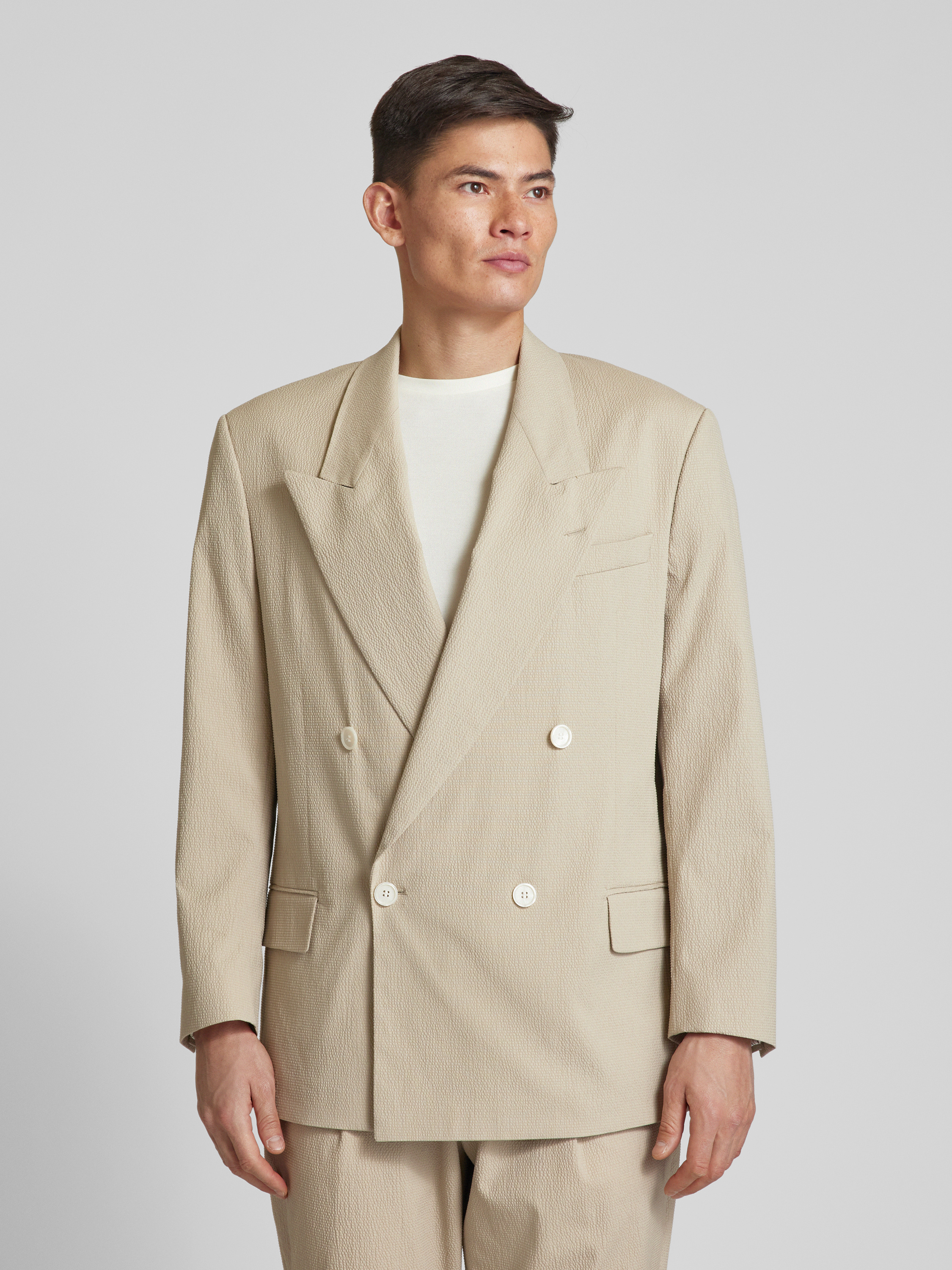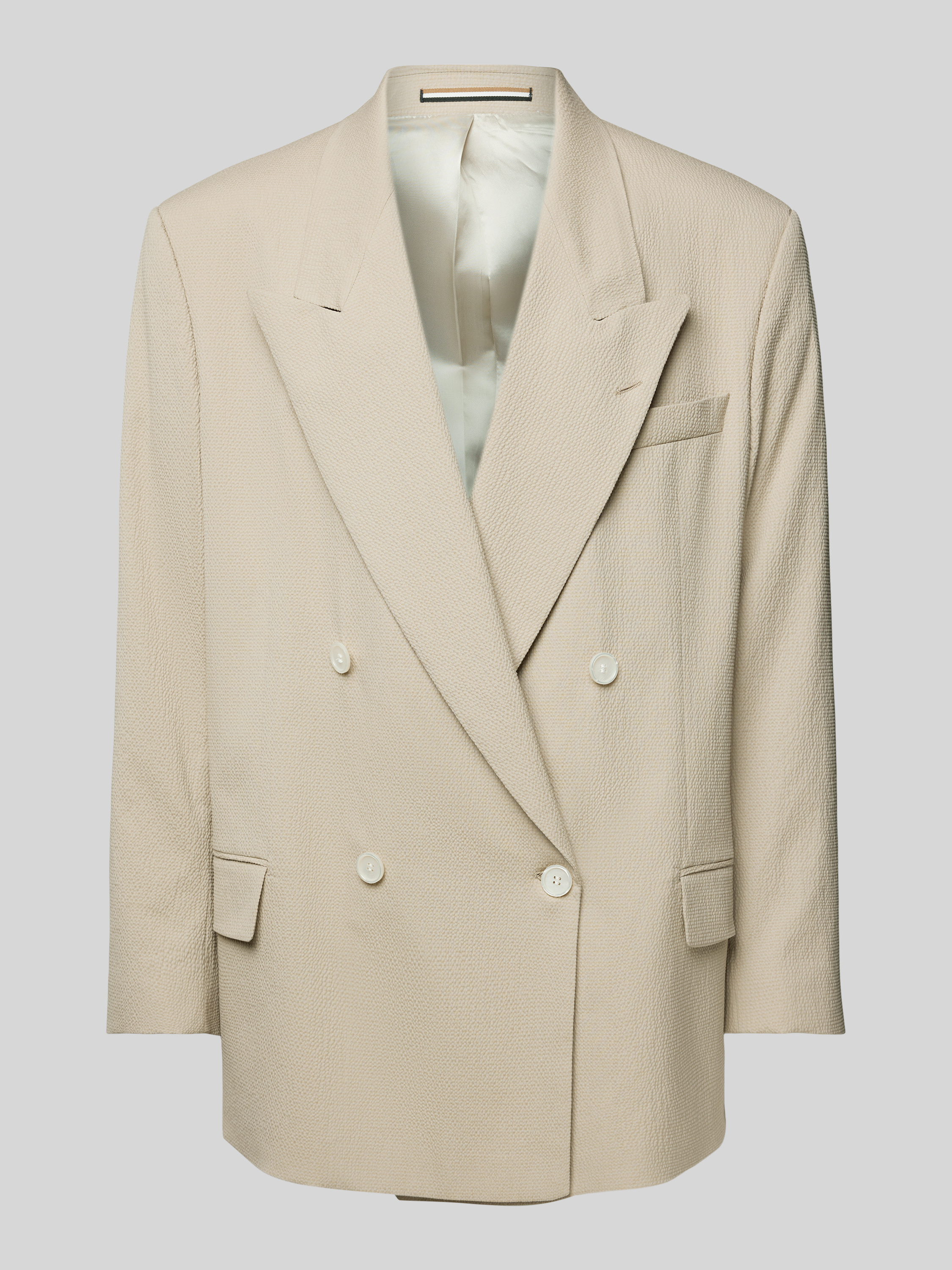 Das Oversized Sakko Modell 'Boss' von BOSS kombiniert eine entspannte Passform mit einem klassischen Reverskragen und doppelreihiger Knopfleiste. Gefertigt aus einem Baumwoll-Mix mit Stretch-Anteil, ermöglicht es Bewegungsfreiheit und Komfort. Pattentaschen und eine Brusttasche runden das Design funktional ab.