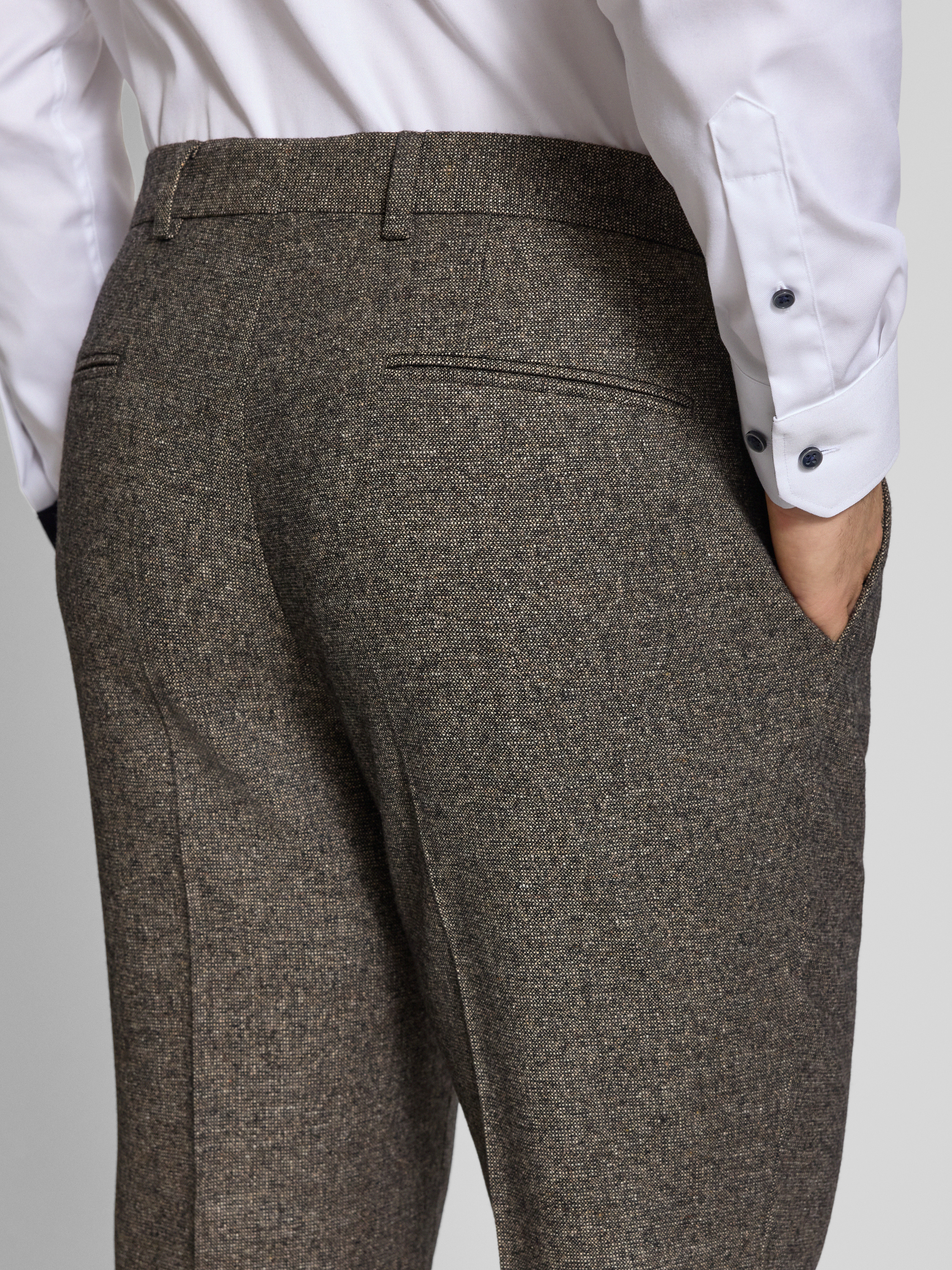 Die Herrenhose von BOSS, Modell Leon, verbindet einen regulären Schnitt mit der angenehmen Haptik eines Woll-Mix mit Seide. Durch die klassische Melange-Optik und markante Bügelfalten entsteht ein vielseitiger Stil, der sich flexibel für verschiedene Anlässe eignet. Praktische Taschen runden das Gesamtbild ab.