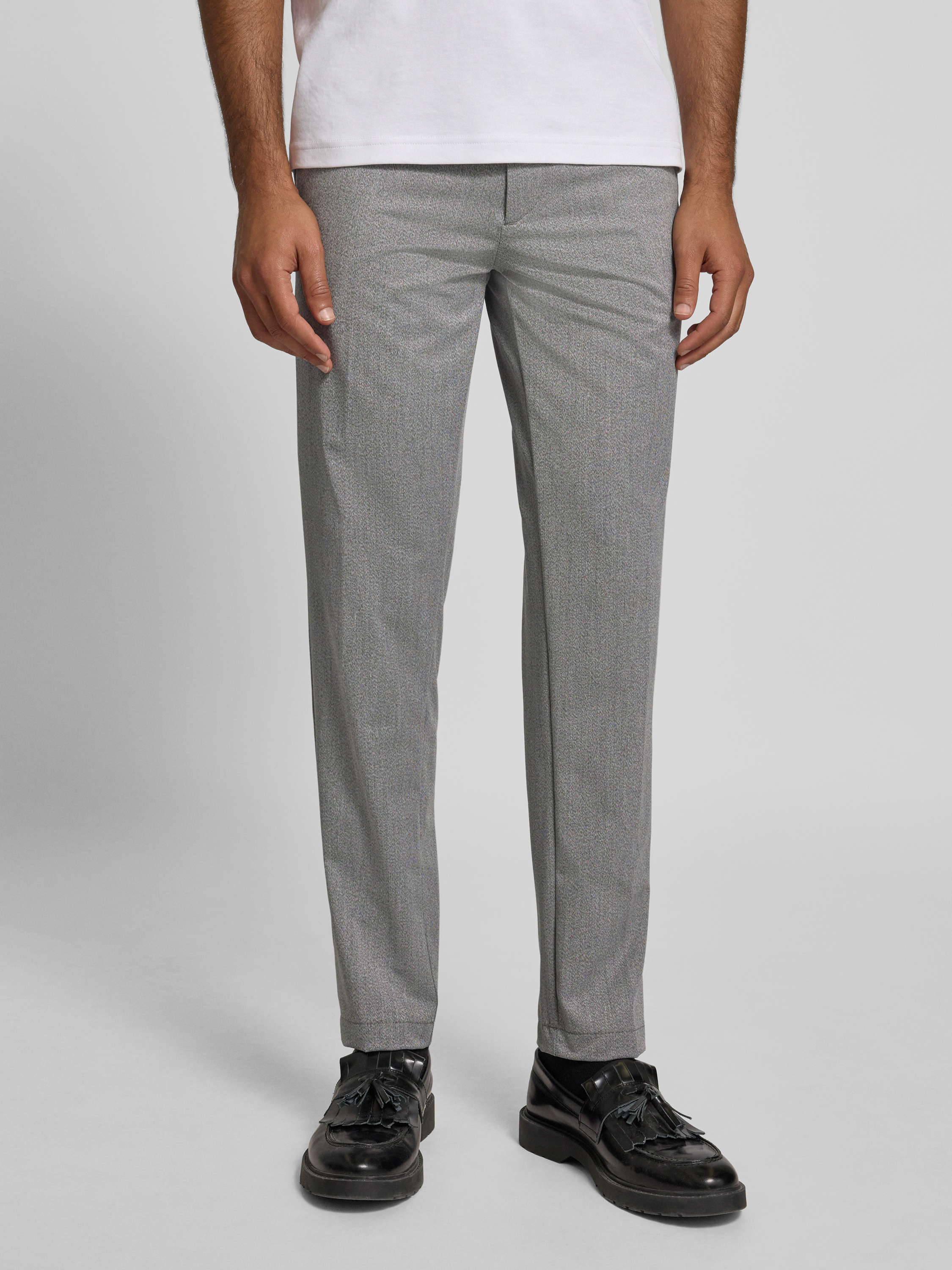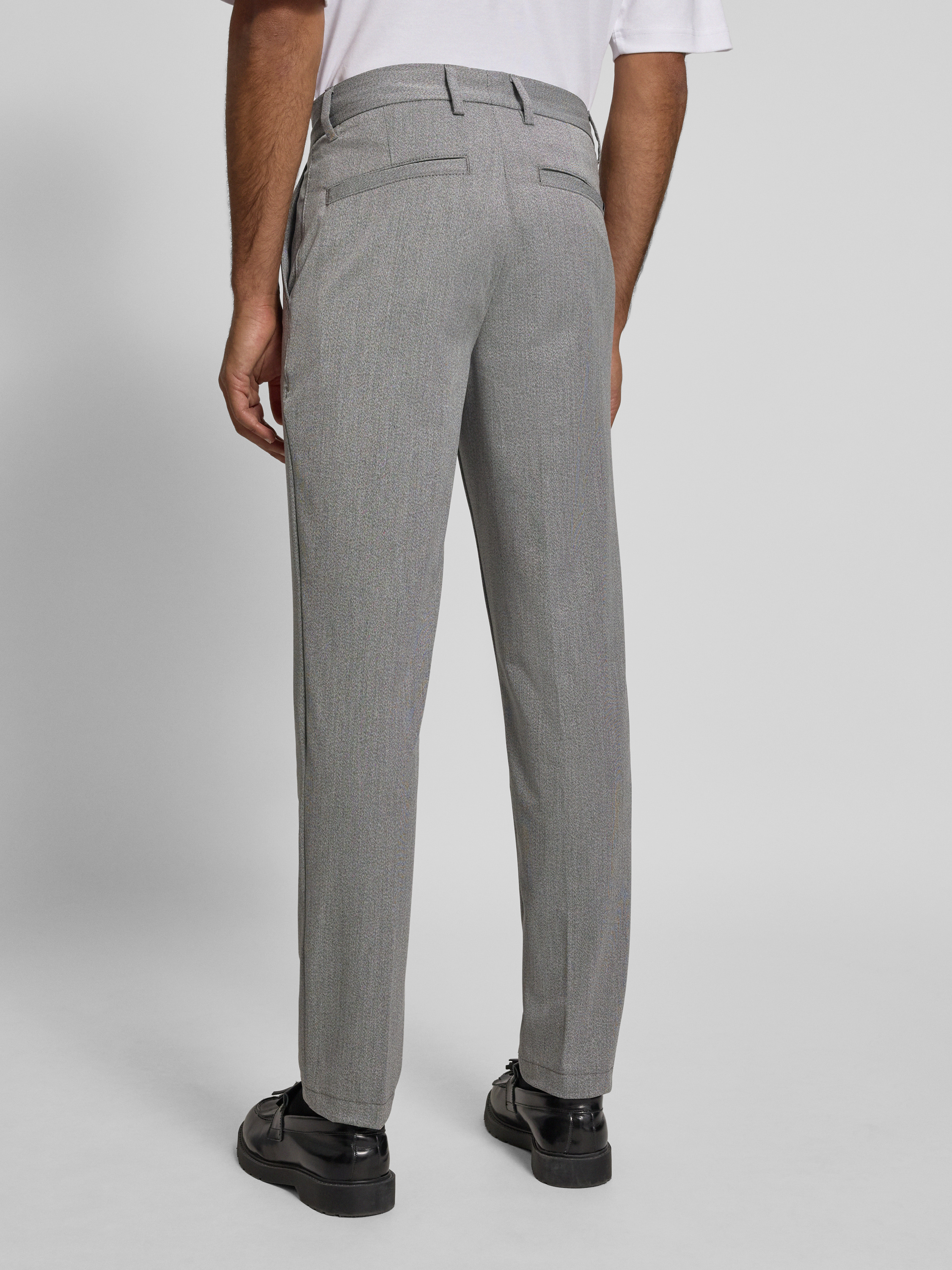 Die Regular Fit Chino von BOSS, Modell KANE, zeigt sich mit einer melierten Optik und einer Tapered-Silhouette, die Bewegungsfreiheit und Formbewusstsein miteinander verbindet. Dank mittelhohem Bund sitzt sie angenehm und unkompliziert. Dezente Gürtelschlaufen sowie praktische Taschen runden das Gesamtbild ab.