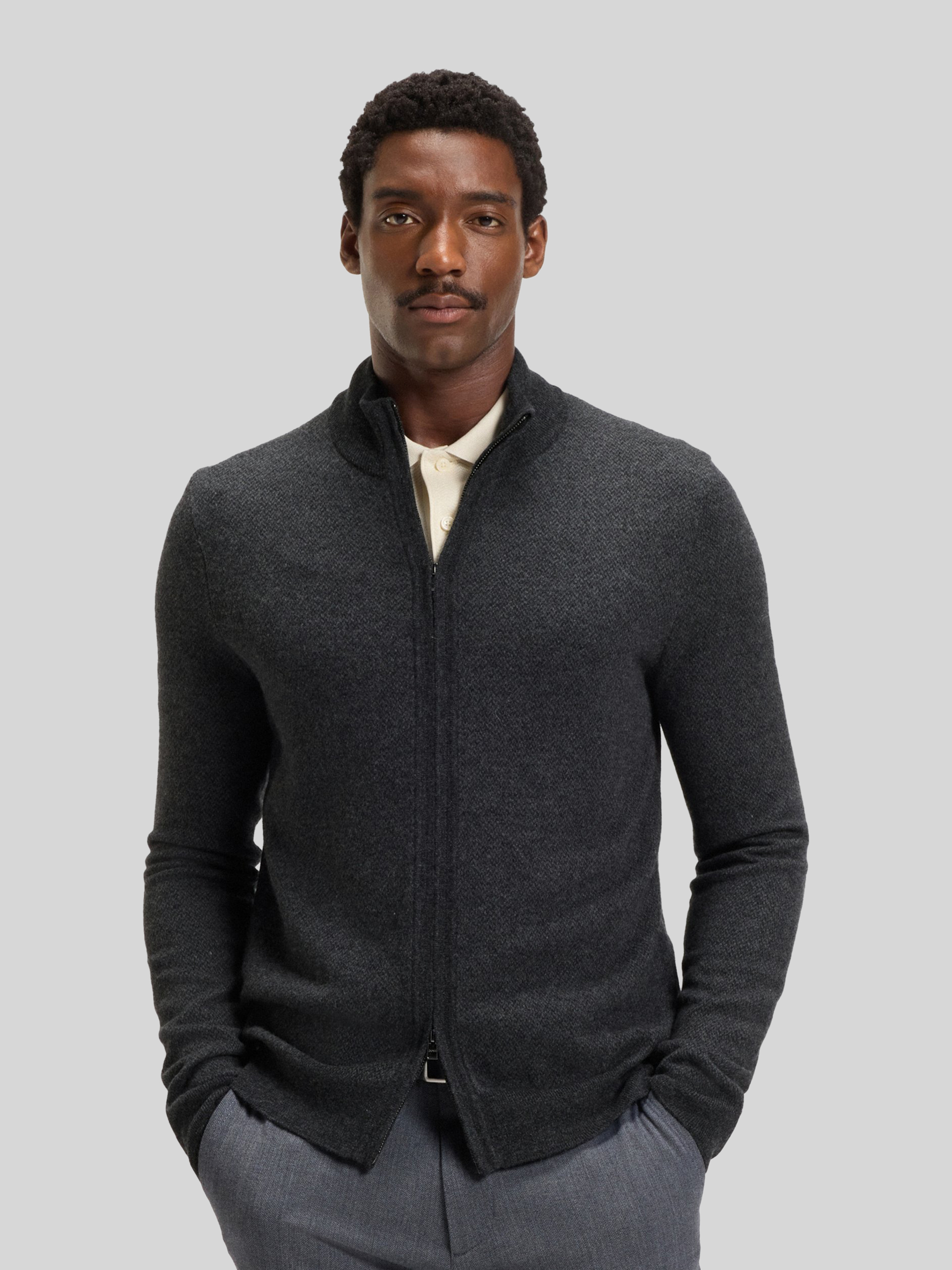 BOSSRegular Fit Strickjacke aus Woll-Mix Modell 'H-HETERNO' in black