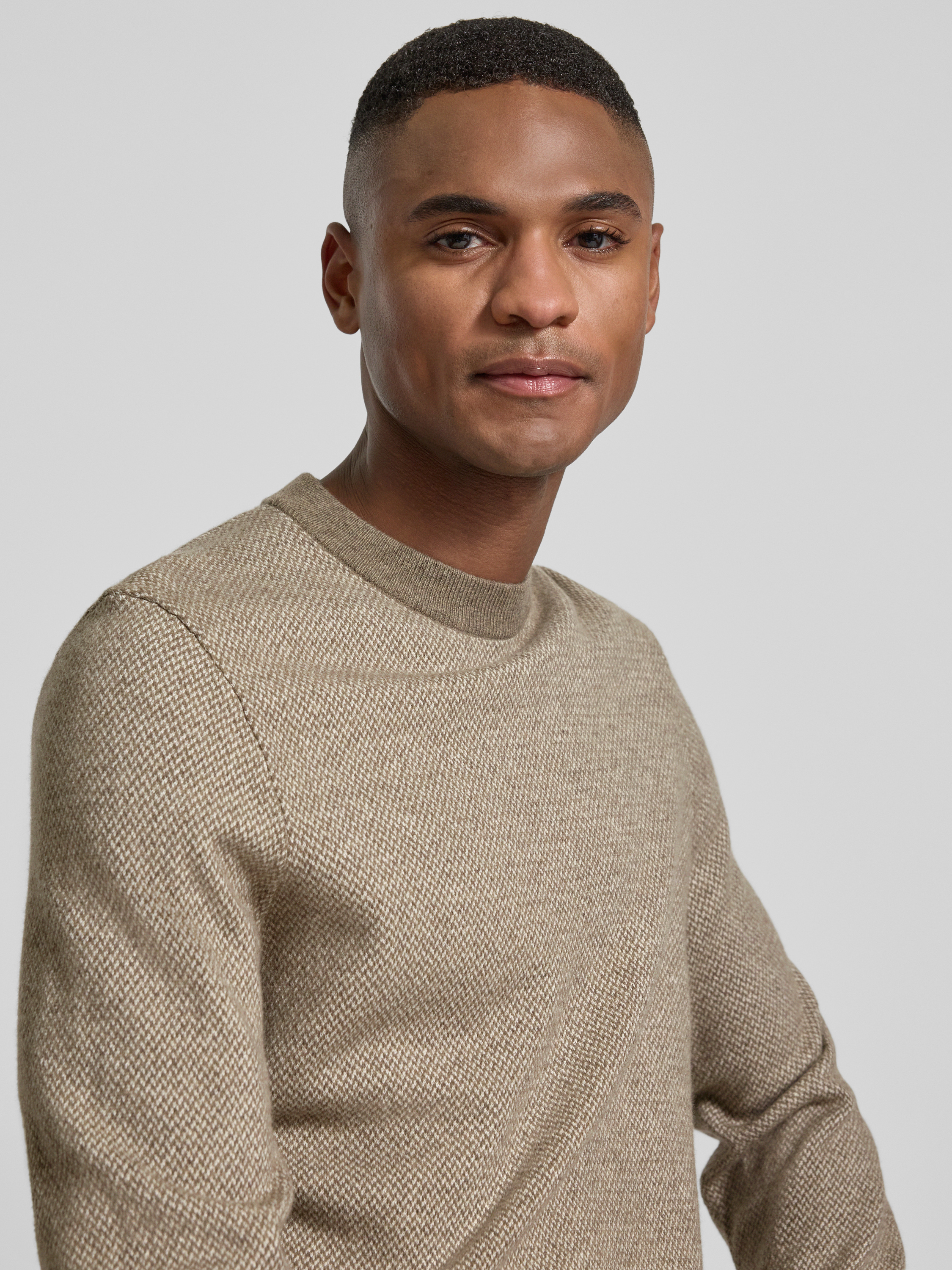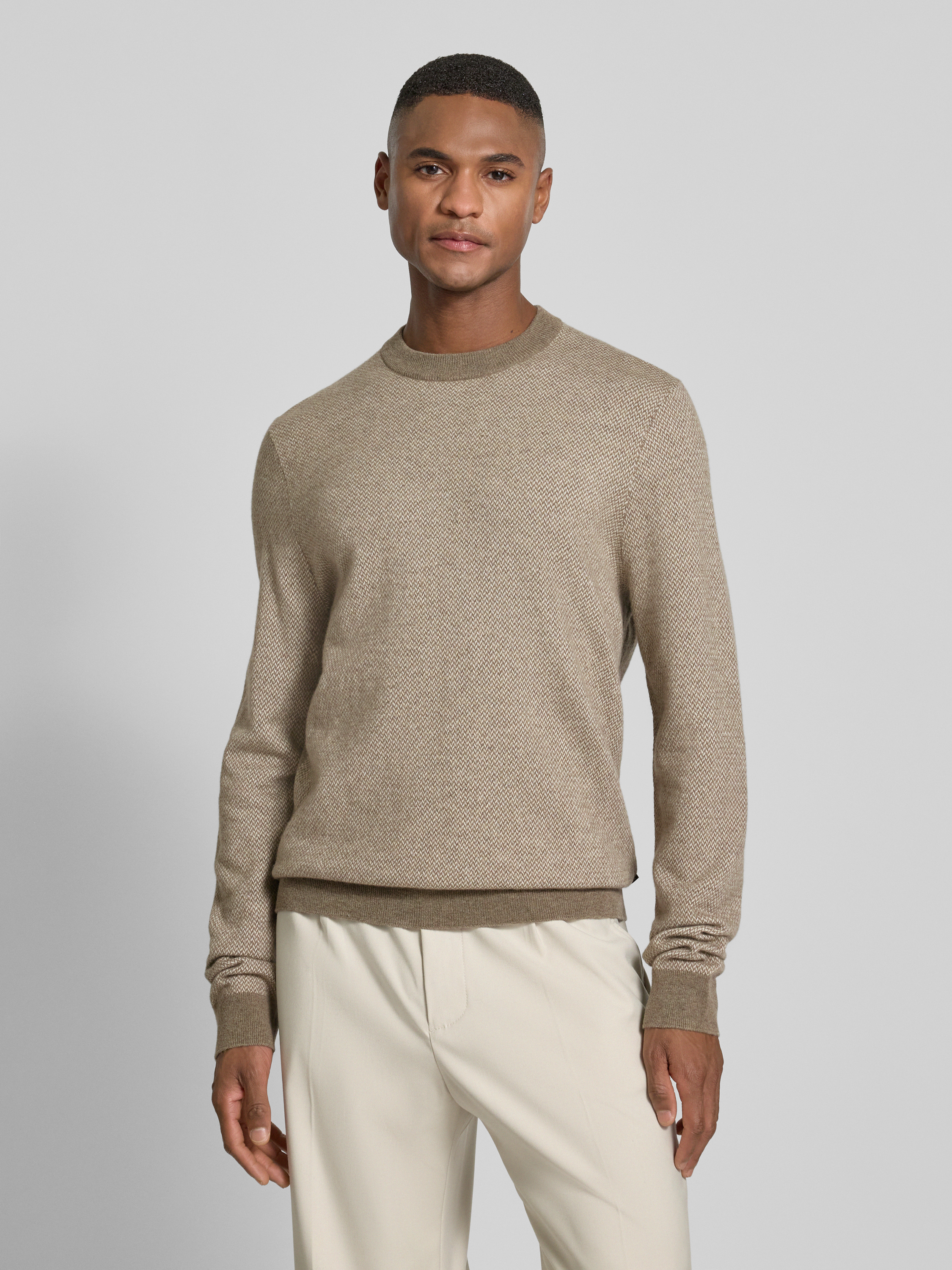 BOSSRegular Fit Strickpullover aus Baumwoll-Schurwoll-Mix Modell 'HESTRO' in schlamm