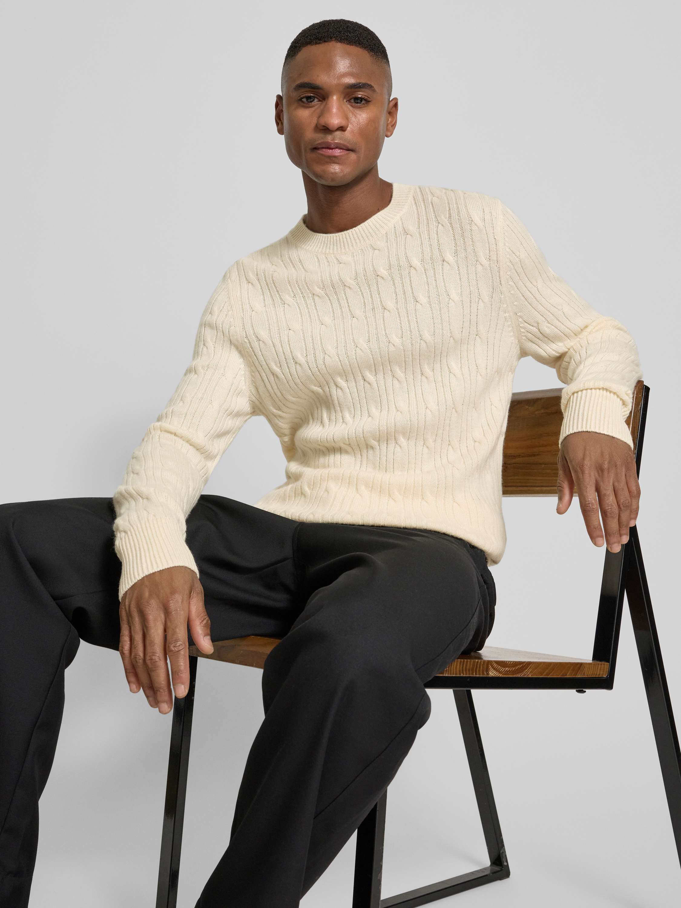 Der Herr Strickpullover von BOSS, Modell Hetico, kombiniert einen klassischen Regular Fit mit einem feinen Zopfmuster. Durch den Schurwoll-Kaschmir-Mix entsteht ein angenehmes Tragegefühl, das auch an kühleren Tagen wärmt. Die Crew Neck-Form ergänzt den zeitlosen Look, während die Verarbeitung für Formstabilität sorgt.