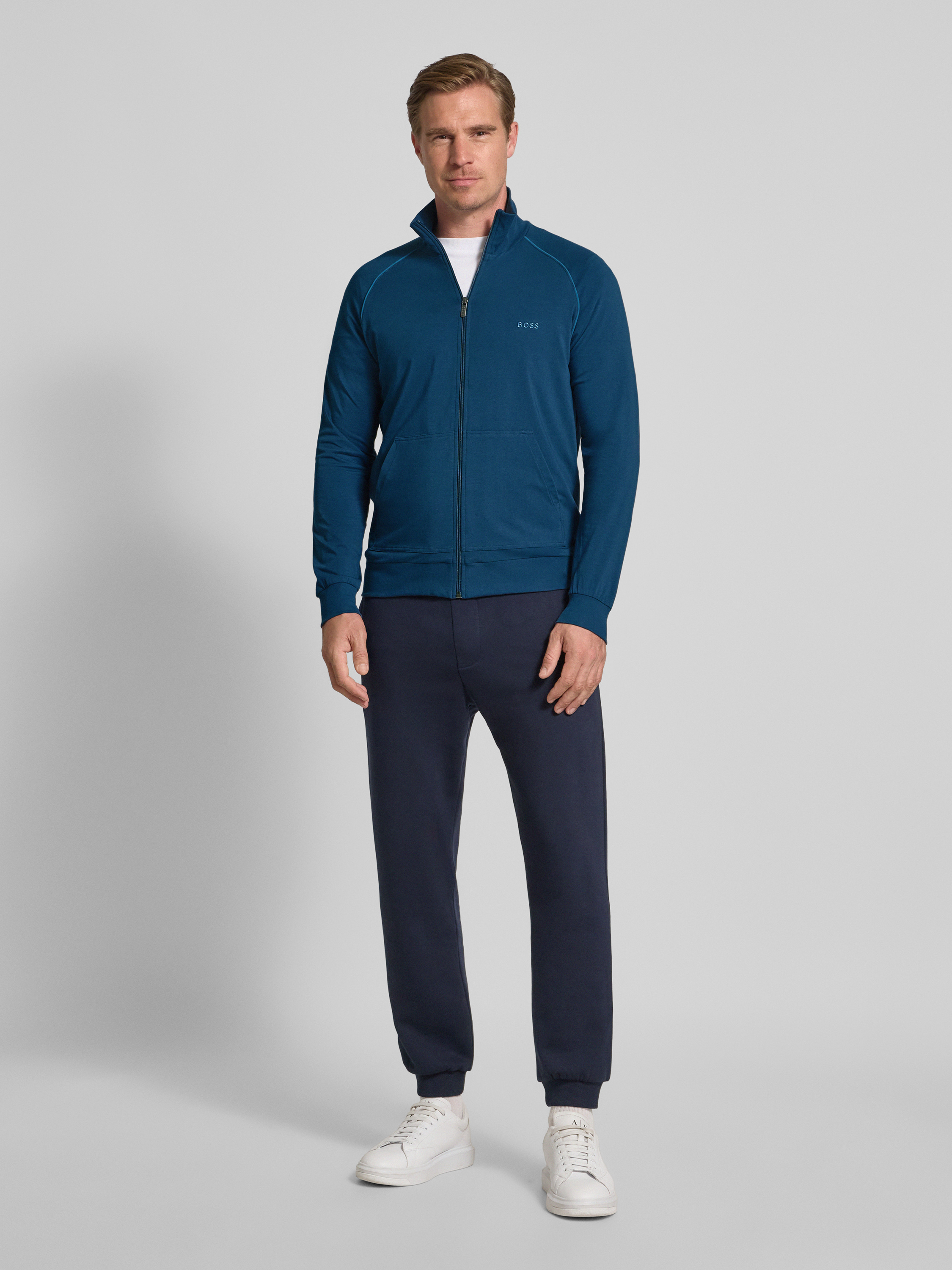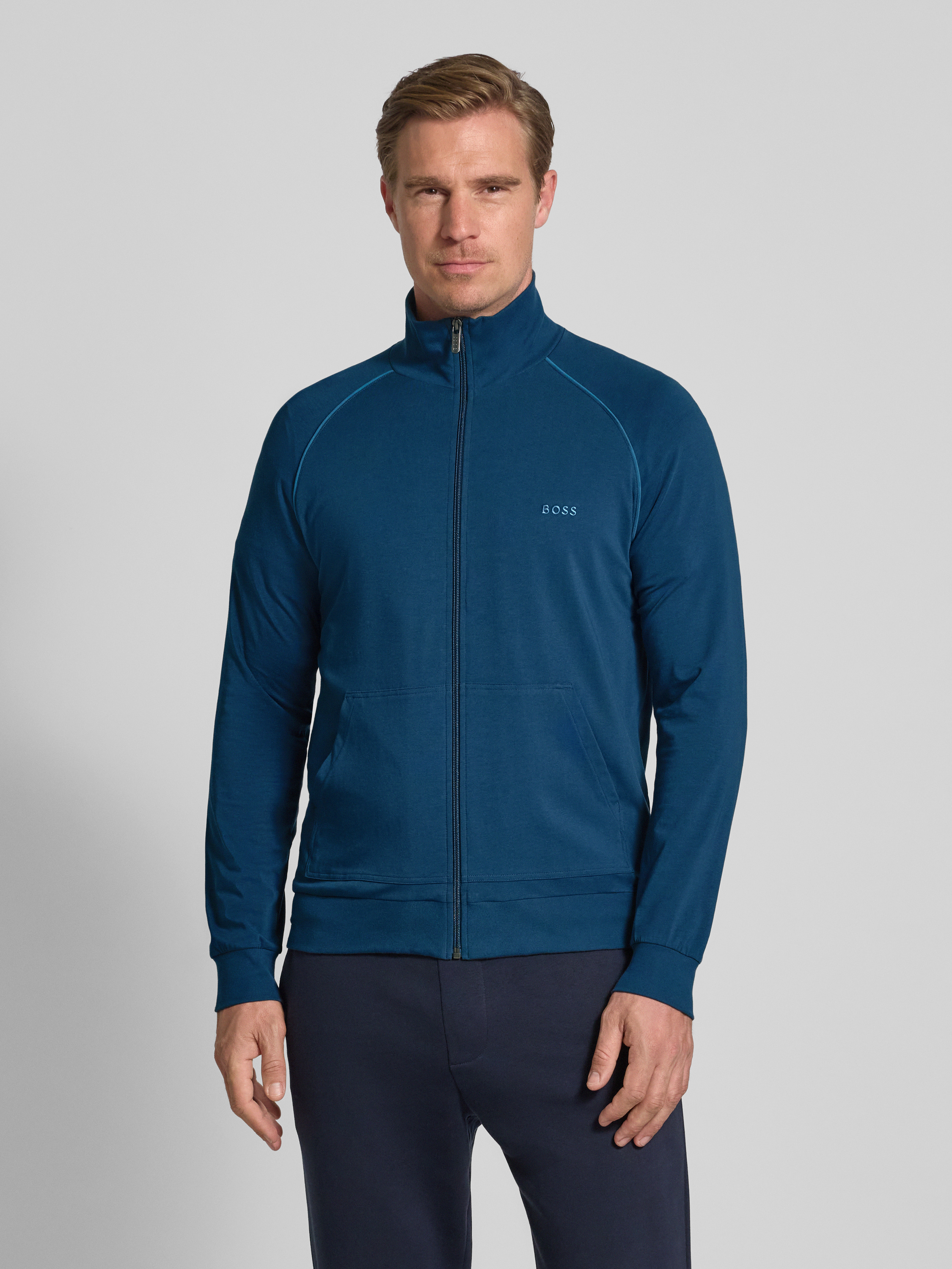 Die Herren Sweatjacke von BOSS im Regular Fit zeigt sich in klassisch unifarbener Optik und punktet mit Teilungsnähten sowie Raglanärmeln. Dank des Baumwoll-Mix-Materials fühlt sich das Modell angenehm weich an. Seitliche Eingrifftaschen und ein Stehkragen runden das Design funktional ab.