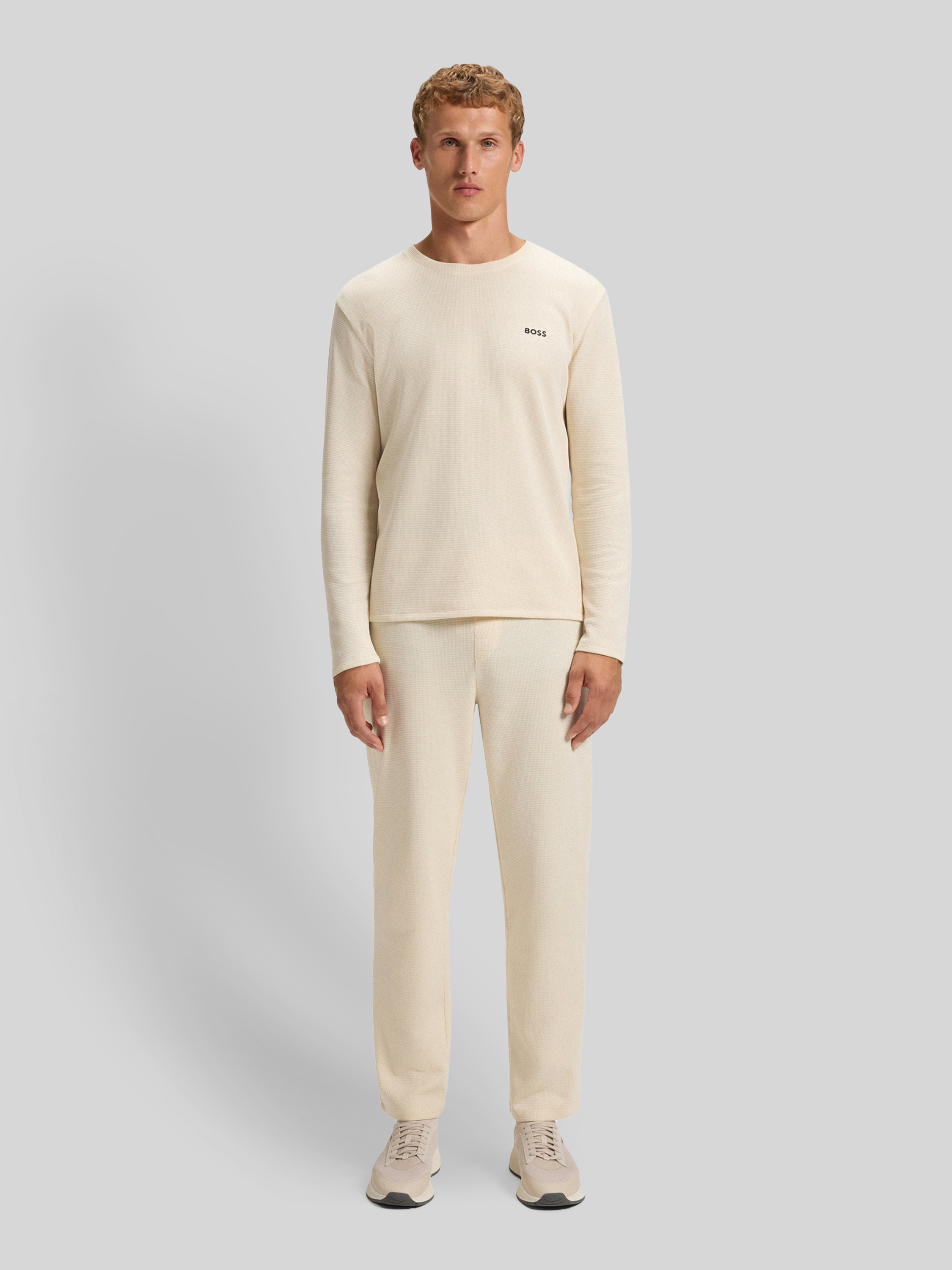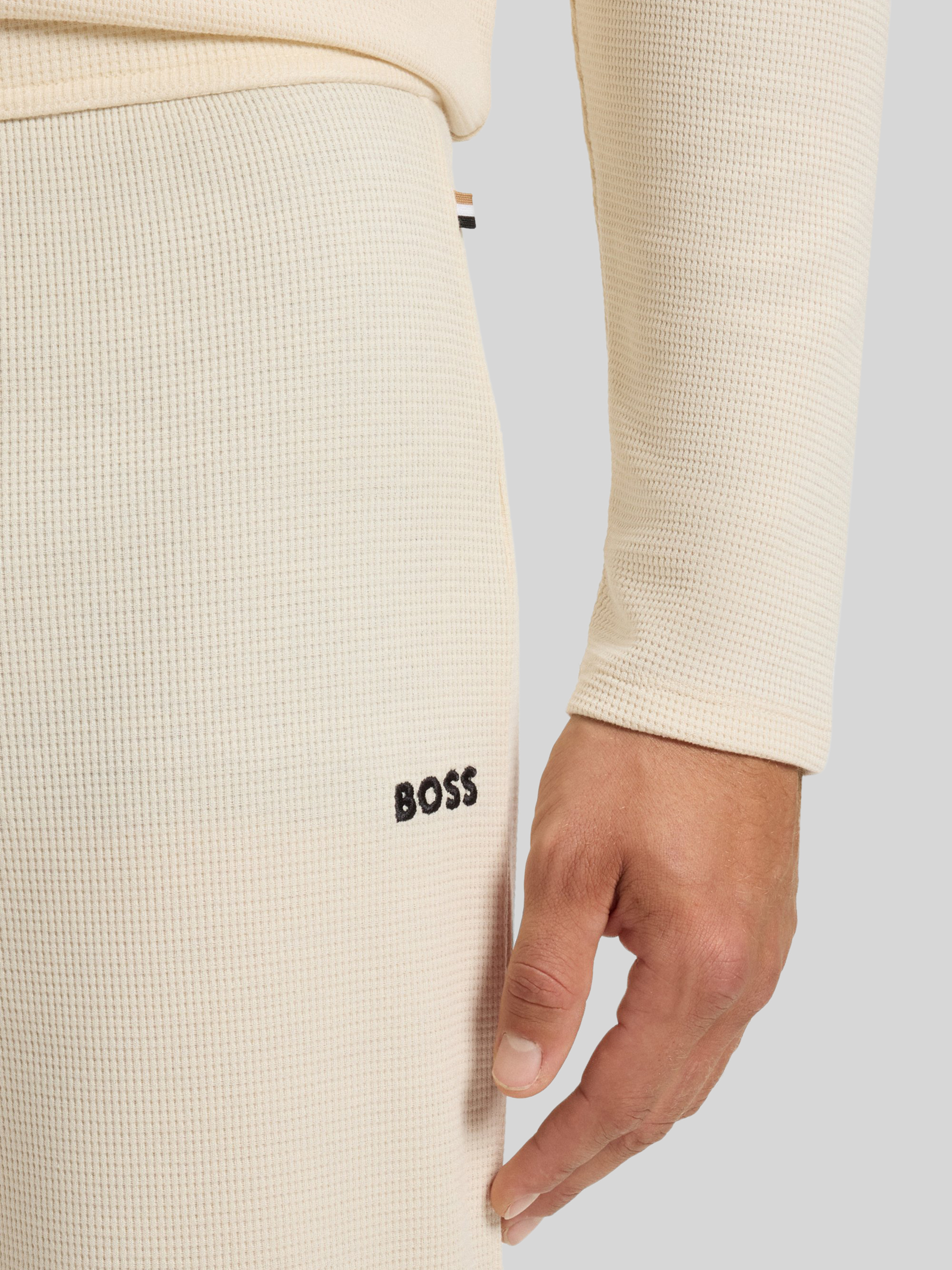 Die Regular Fit Sweatpants von BOSS aus einem angenehm weichen Baumwoll-Mix präsentieren sich in schlichter Optik mit feinem Webmuster und dezenter Label-Stickerei. Durch den bequemen Schnitt trägt sich die Hose entspannt im Alltag. Ein elastischer Bund passt sich flexibel verschiedenen Bewegungen an.