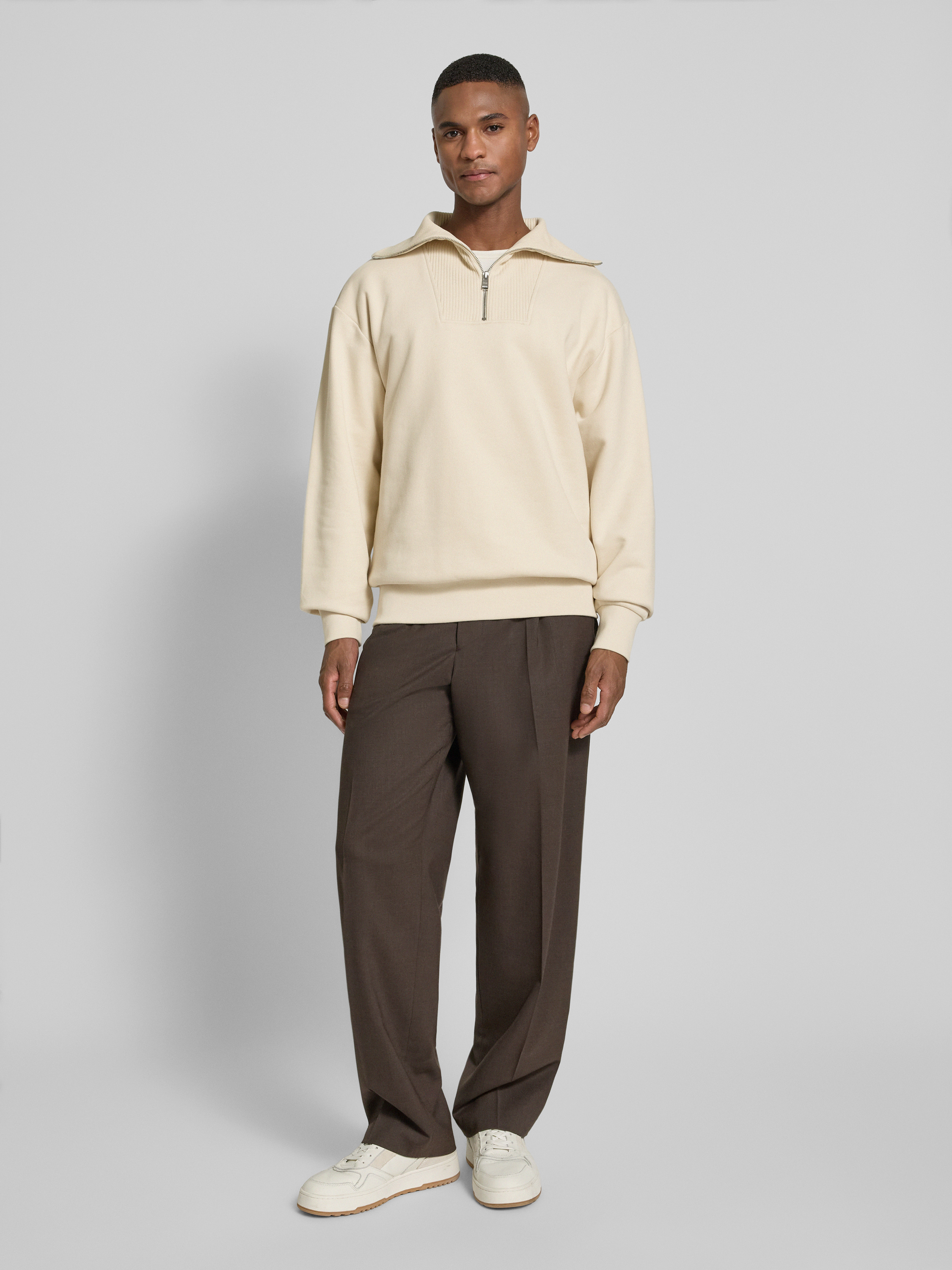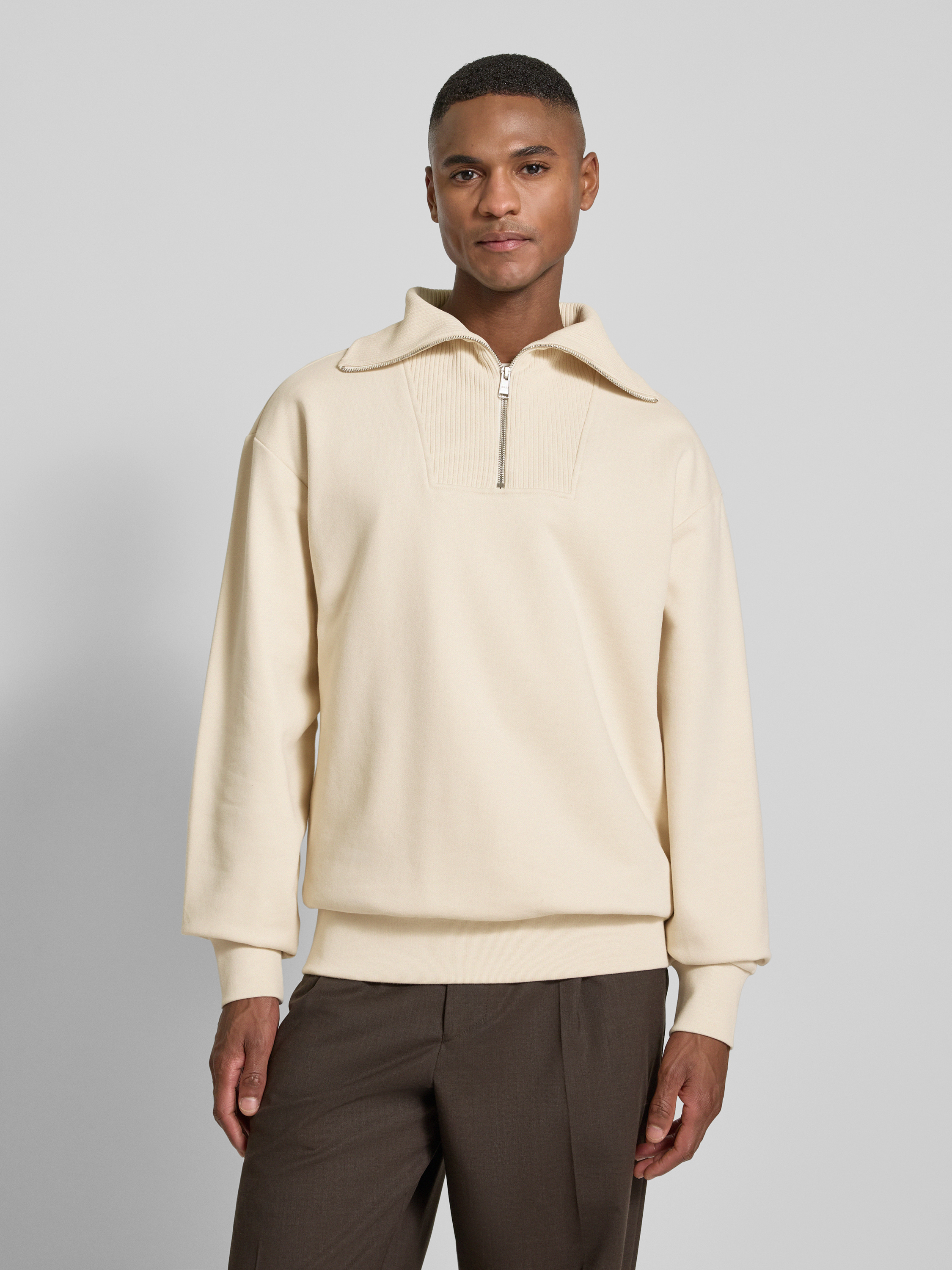 Der Herren Troyer von BOSS, Modell Sidney, zeigt sich in klarer, unifarbener Optik und sitzt angenehm dank Regular Fit. Durch die Verarbeitung aus reiner Baumwolle fühlt sich das Material angenehm weich auf der Haut an. Der charakteristische Troyerkragen sorgt dabei für einen zeitlosen, unkomplizierten Look.