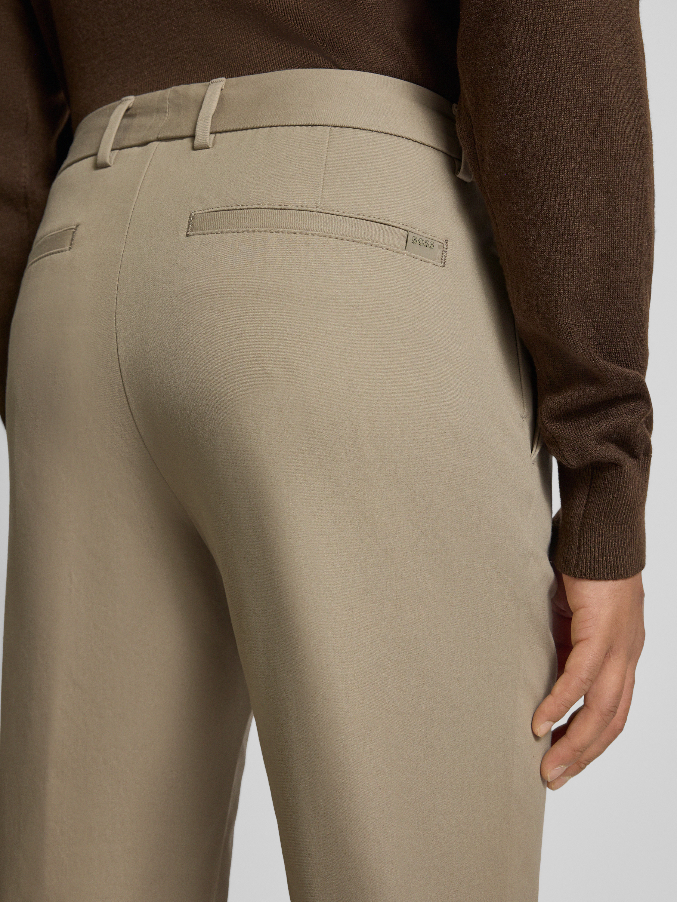 Die Slim Fit Anzughose von BOSS Modell 'Kaiton' sitzt körpernah und sorgt mit ihrer klaren Linienführung für einen modernen Look. Der Baumwoll-Mix fühlt sich angenehm an und hält auch längeren Tagen stand. Praktische Taschen und Gürtelschlaufen erleichtern das Kombinieren im Alltag.