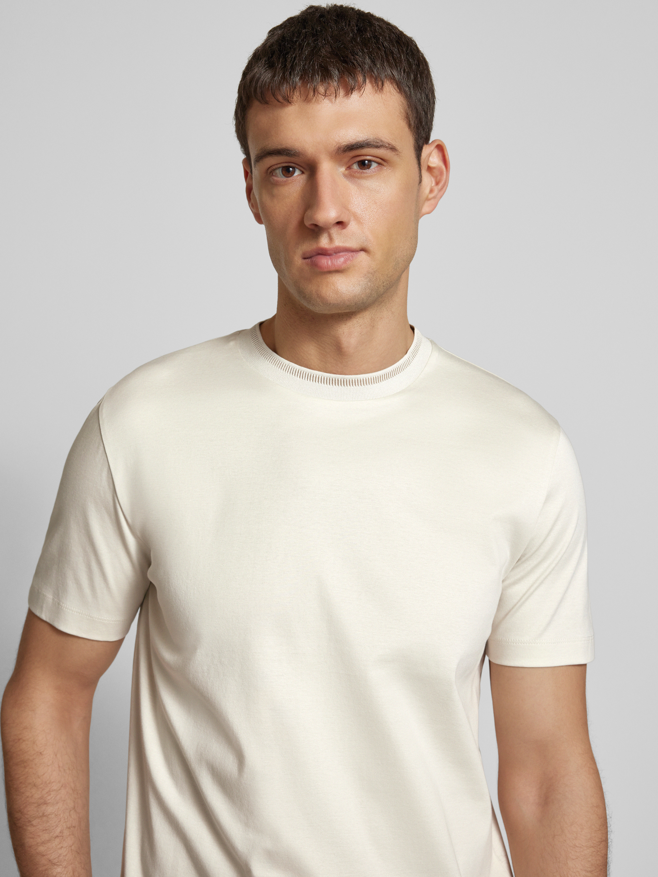 Das Slim Fit T-Shirt Modell 'Tessler' von BOSS aus reiner Baumwolle bietet eine angenehme Passform, die sich ideal für unterschiedliche Anlässe eignet. Der Rundhalsausschnitt und die kurzen Ärmel verleihen ihm einen zeitlosen Look. Man schätzt die hochwertige Verarbeitung, die Komfort und Stil vereint.